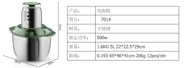 Estándar americano 110V estándar europeo transfronterizo doméstico comercial molinillo de carne eléctrica de gran capacidad molinillo de ajo molinillo de carne 5L