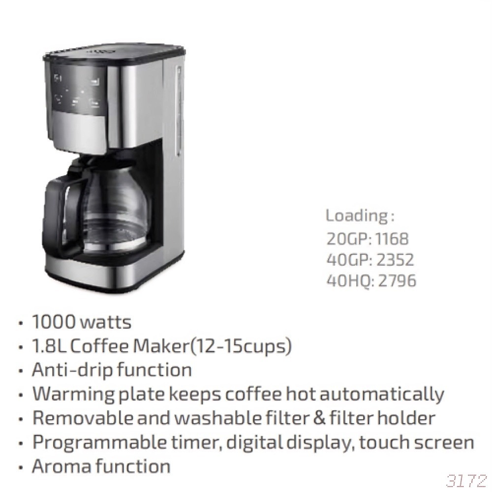 Máquina de café americana doméstica 1.8L pequeña transfronteriza estándar europeo y americano en stock cafetera de goteo cafetera cafetera