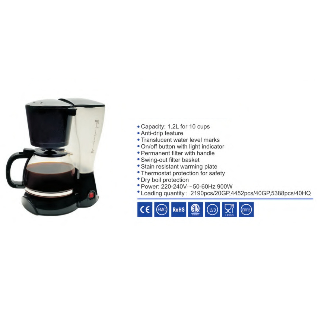 1.2L cafetera doméstica transfronteriza de comercio exterior, olla de vidrio pequeña de goteo estándar estadounidense, cafetera de goteo eléctrica