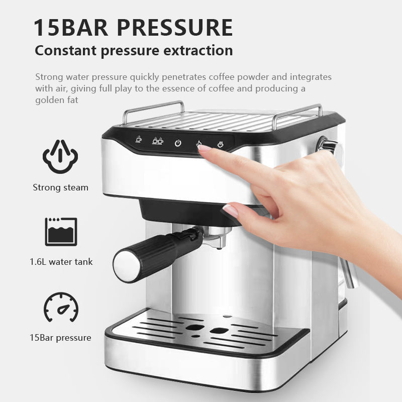 Transfronteriza comercial 15bar semiautomática máquina de café italiana botón de presión de burbuja de leche máquina de café visual