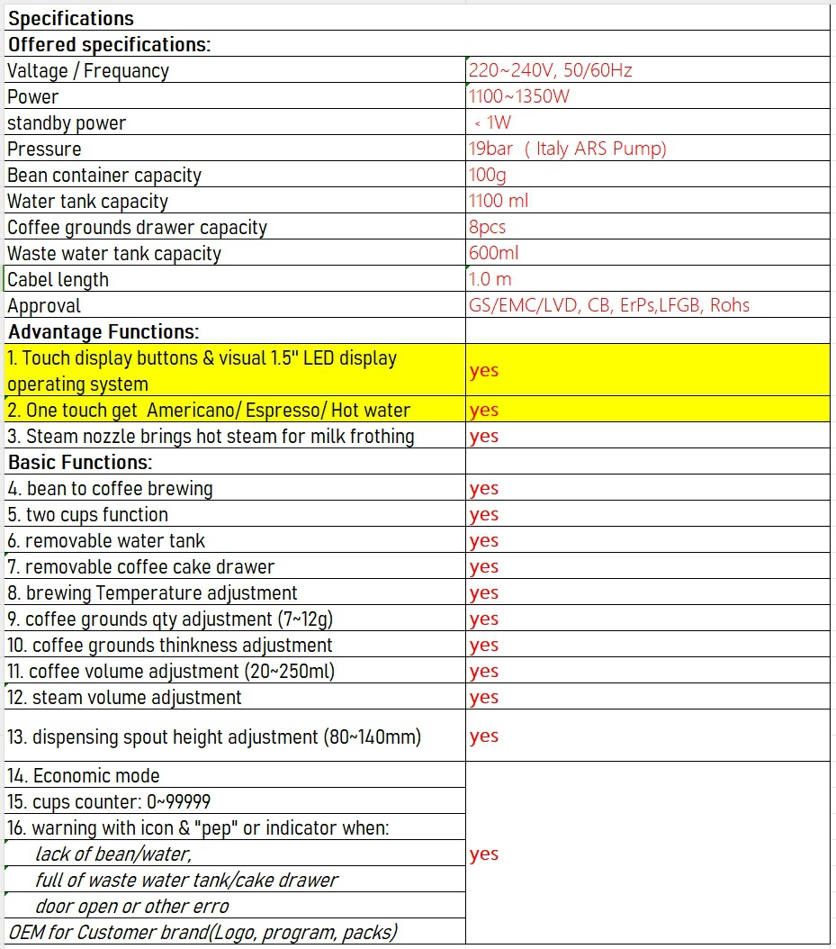 Máquina de café espresso automática con pantalla táctil con un botón, máquina de café latte americana molida, cappuccino