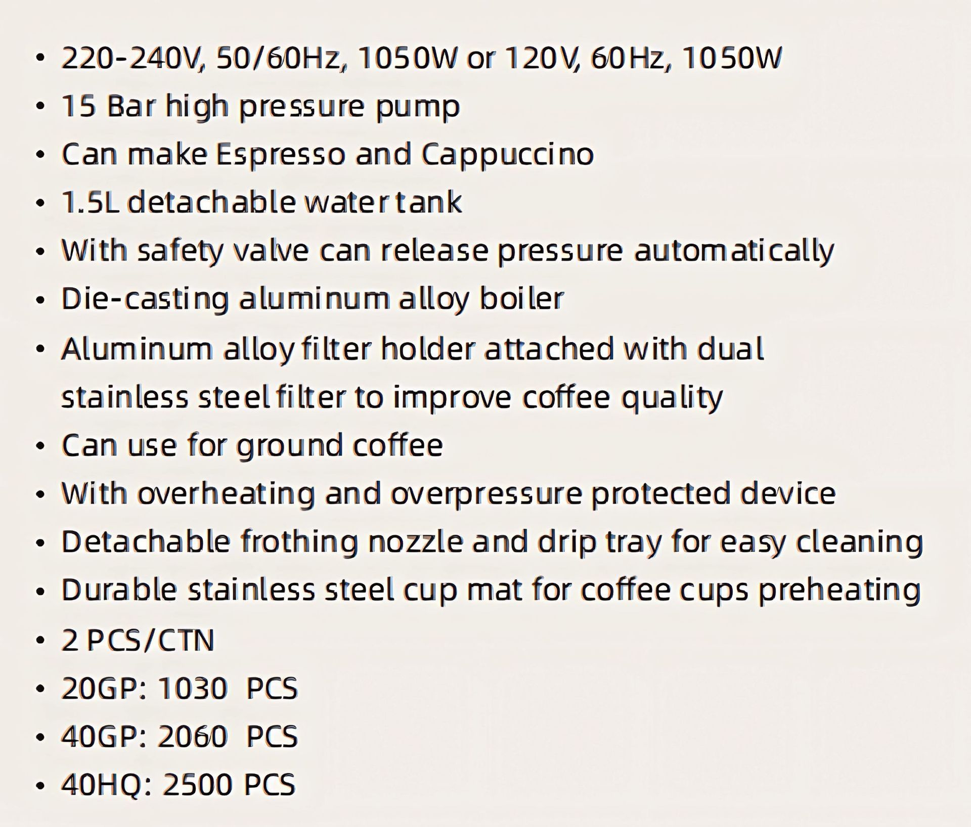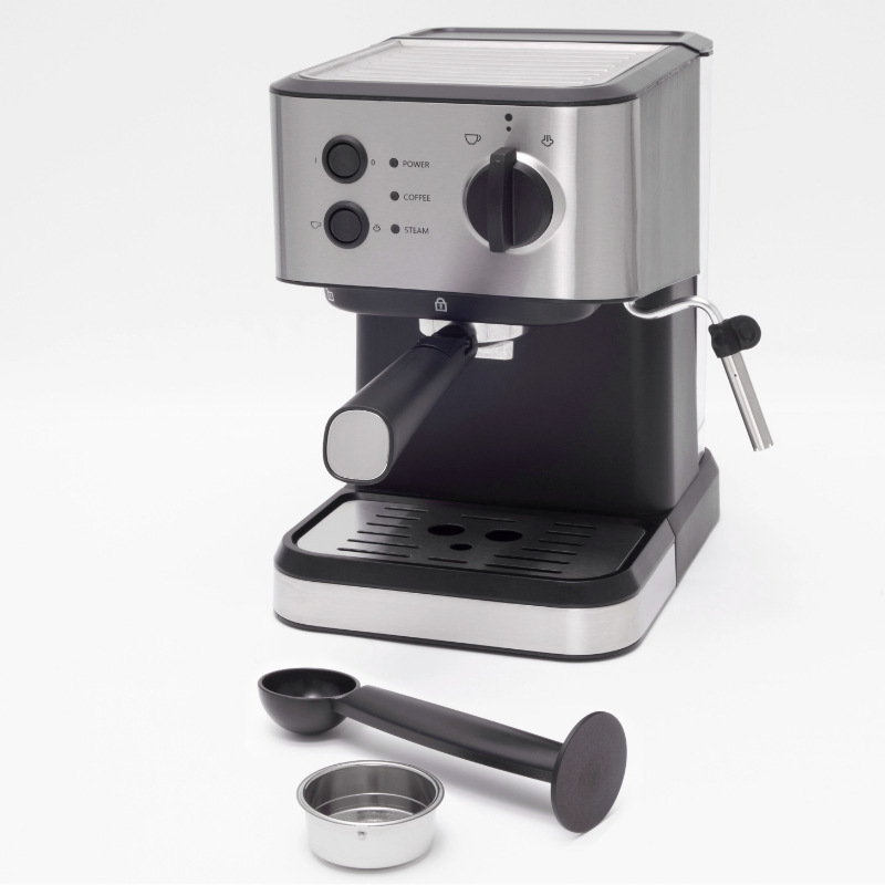 Cafetera de 1050W para uso doméstico, suministro transfronterizo para comercio exterior, pequeña, semiautomática, tipo vapor de alta presión para espumar leche, estilo retro.
