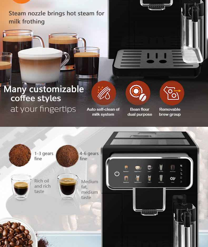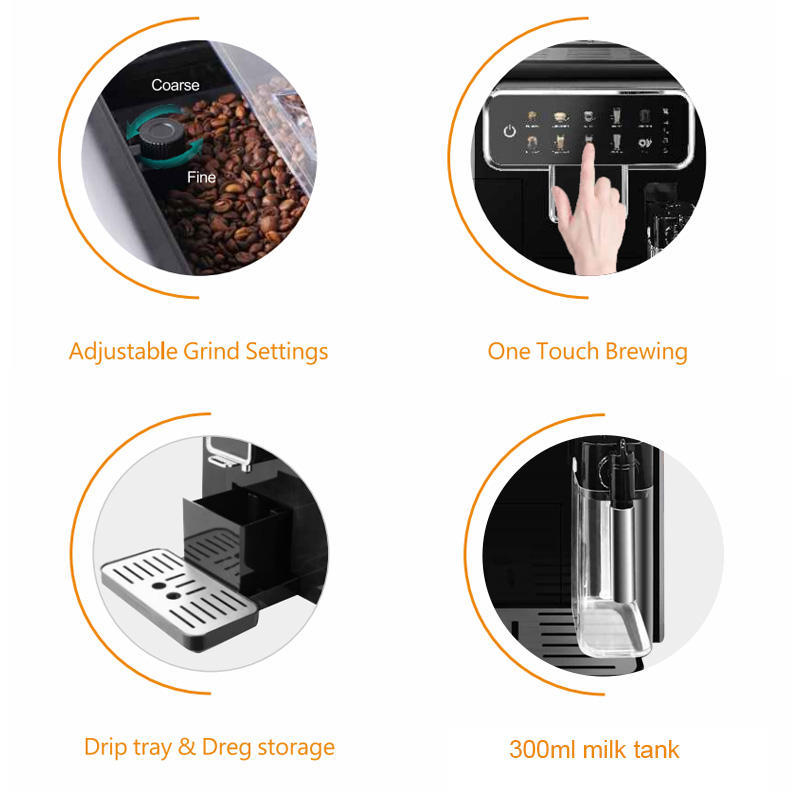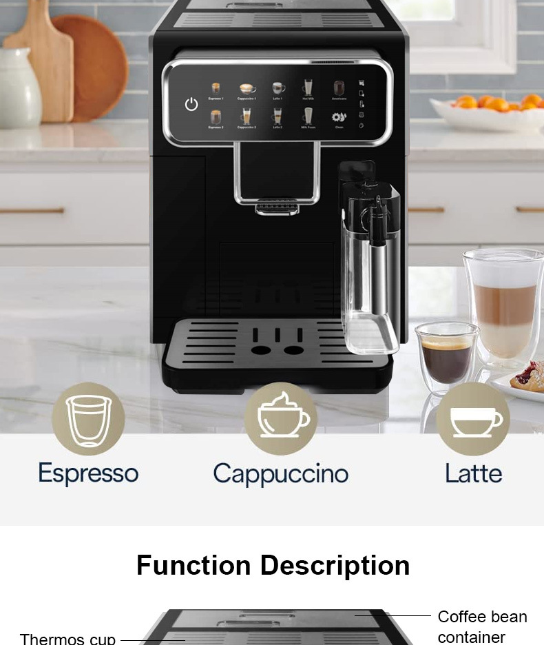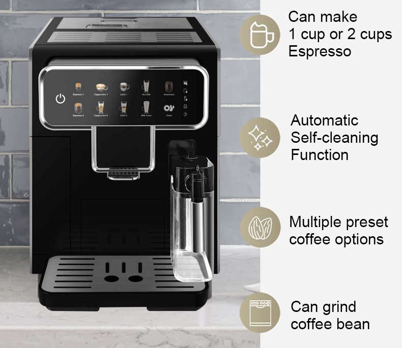 Cafetera Tres en Uno Totalmente Automática con Molinillo de Granos y Espumador de Leche, Cafetera Espresso de Grano a Taza
