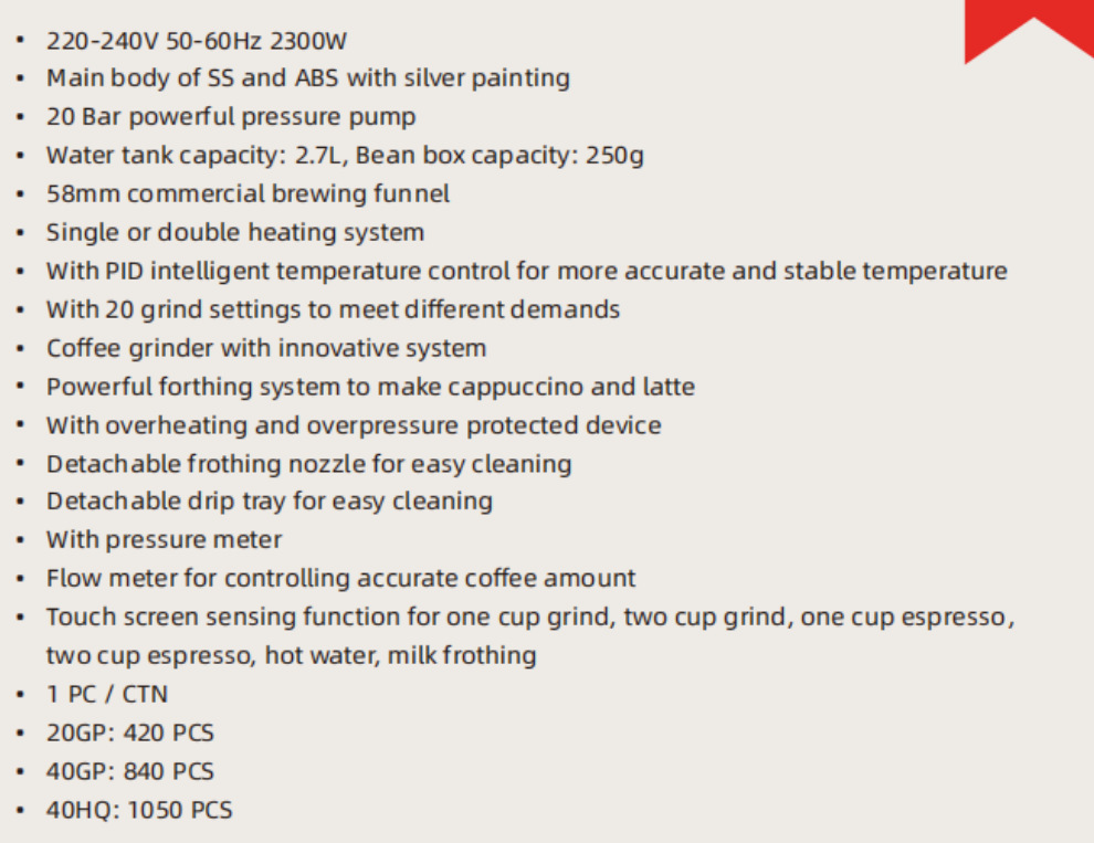 Máquina de espuma de leche de vapor para el hogar comercial con función de molienda transfronteriza máquina de café de extracción de alta presión integrada de molienda italiana