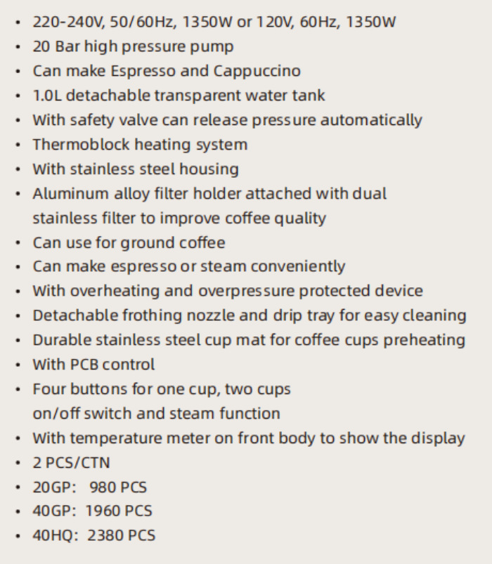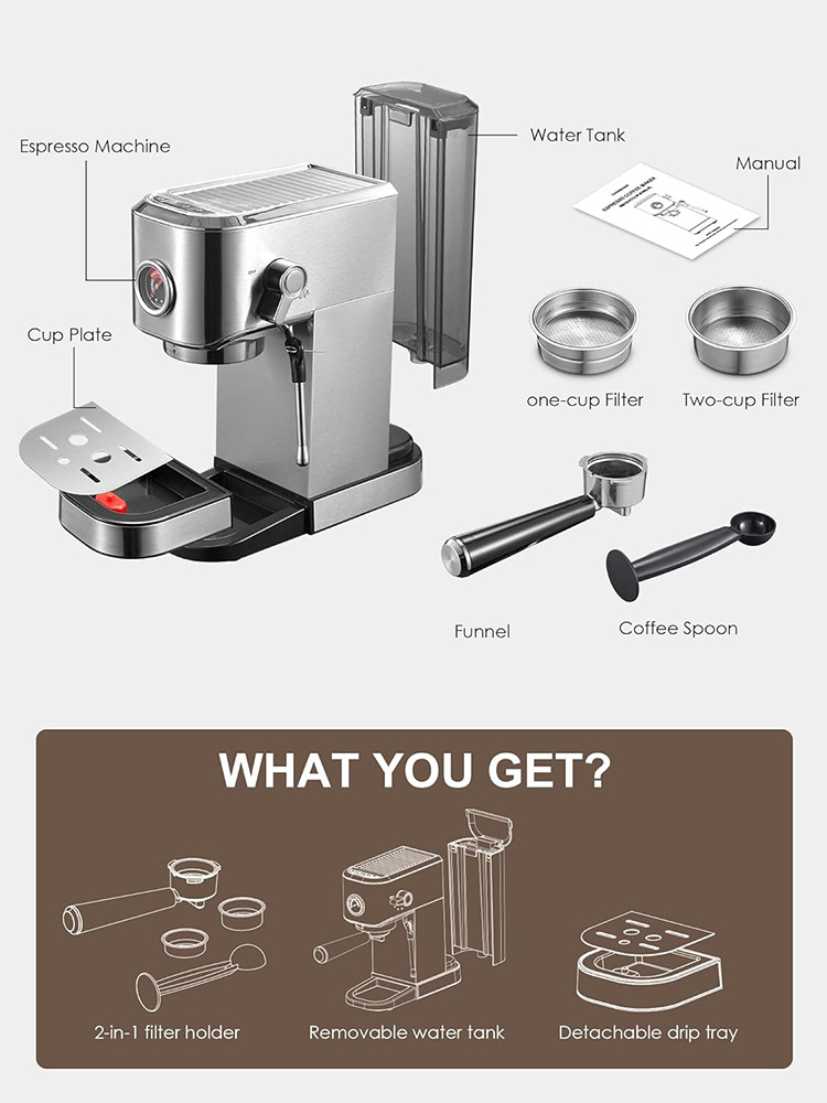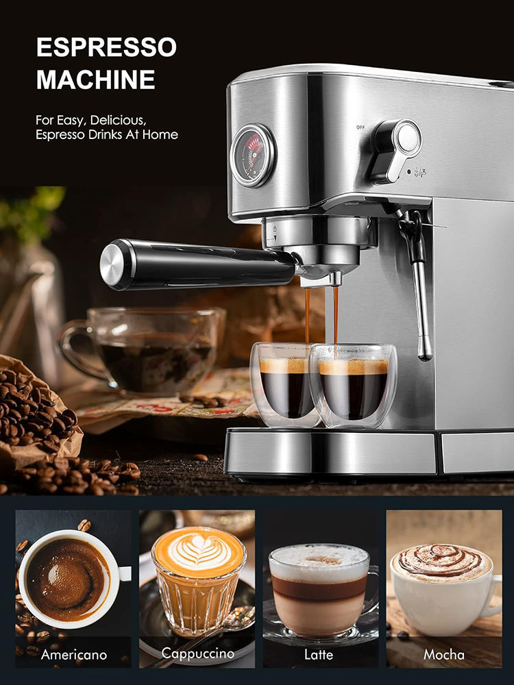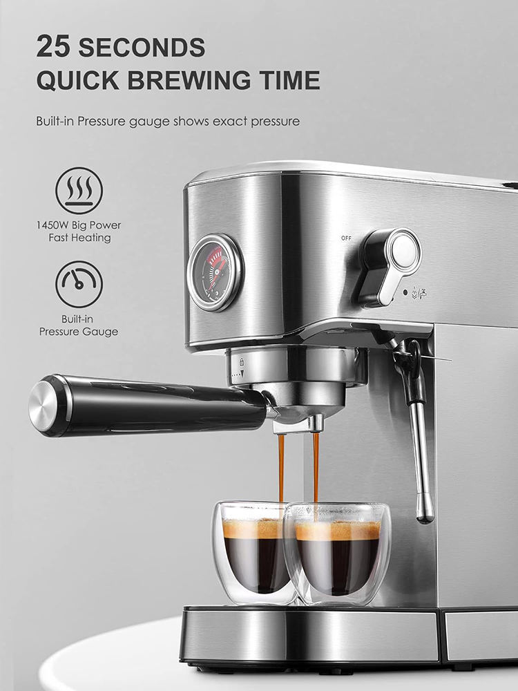 Máquina de café espresso semiautomática de estilo italiano, con espumador de leche a vapor de extracción a presión estándar europeo, para uso doméstico, venta al por mayor.