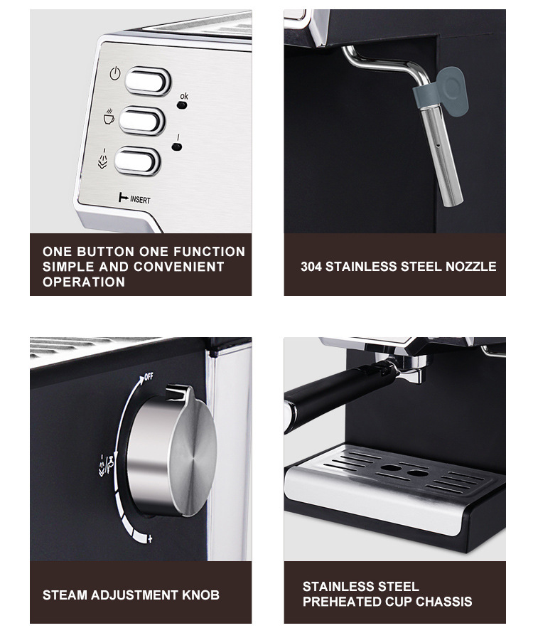 Cafetera Eléctrica Semiautomática Italiana de Extracción de Alta Presión Tipo Vapor, Estándar Estadounidense de 110 V