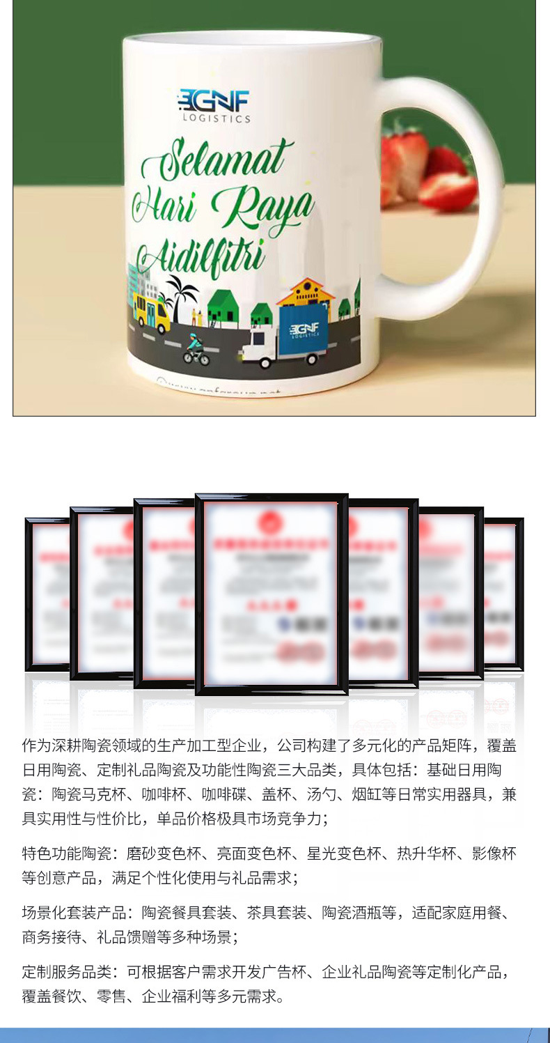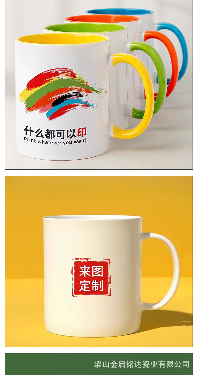Fabricante directo de tazas de agua de cerámica impresión de transferencia de calor capa creativa logotipo taza de regalo taza de café esmaltado color menú