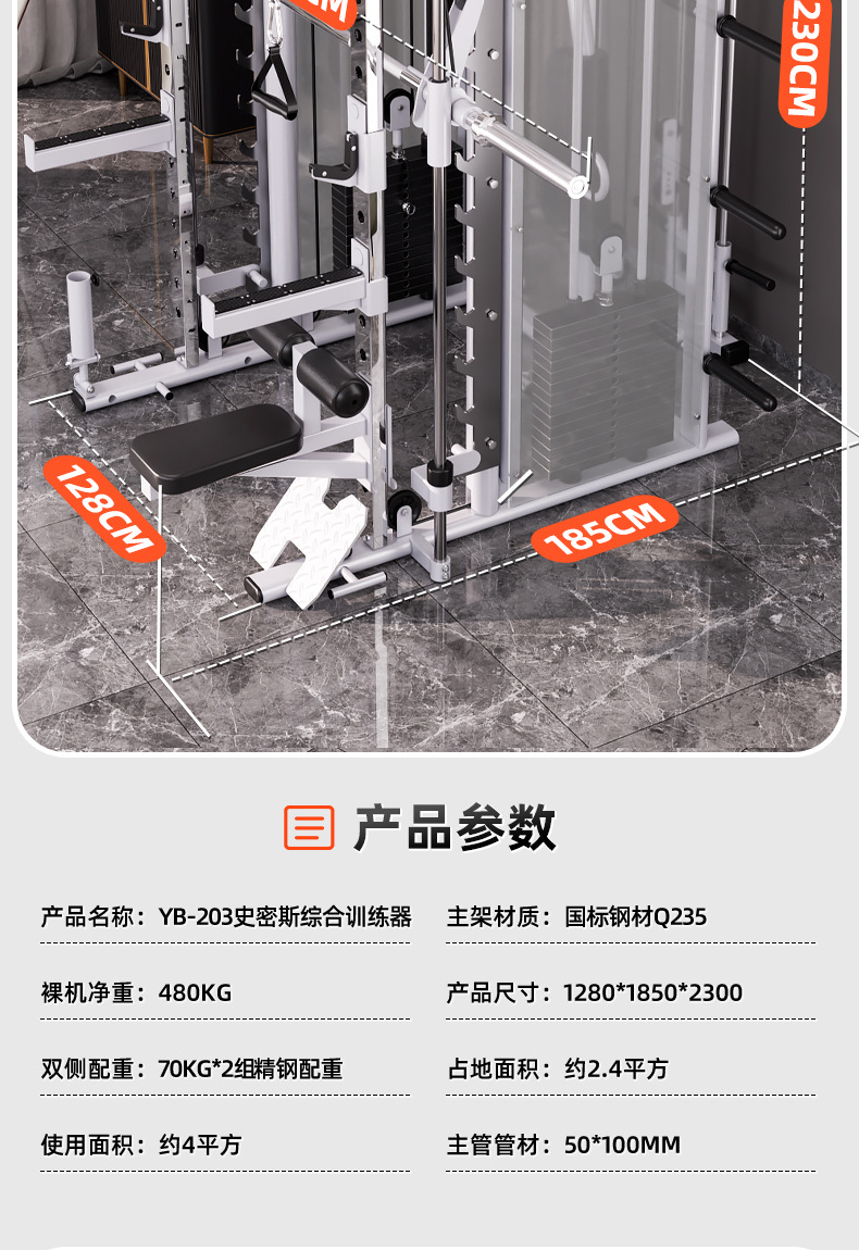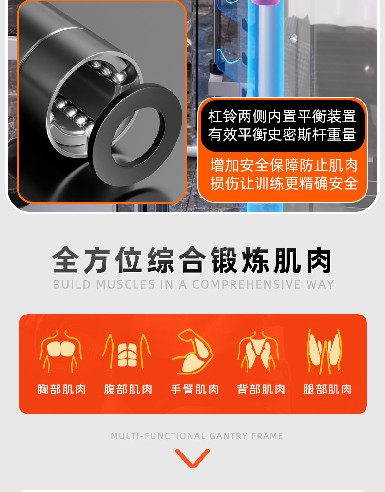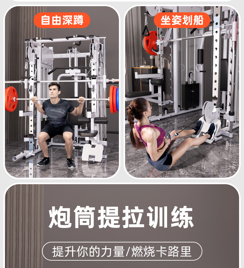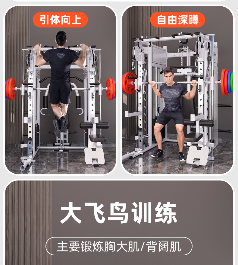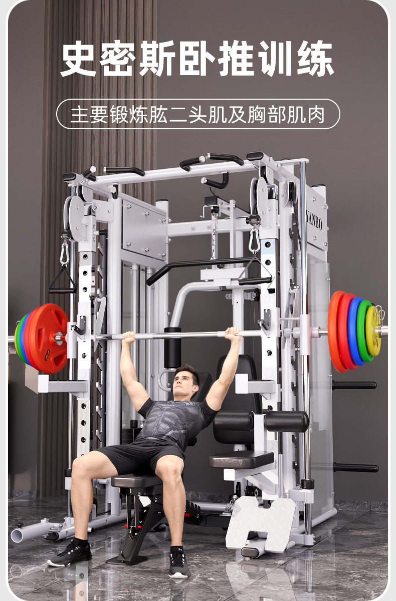 Entrenador integral multifuncional pórtico equipo de ejercicios a gran escala todo en uno ave Smith marco de empuje horizontal marco de cuclillas