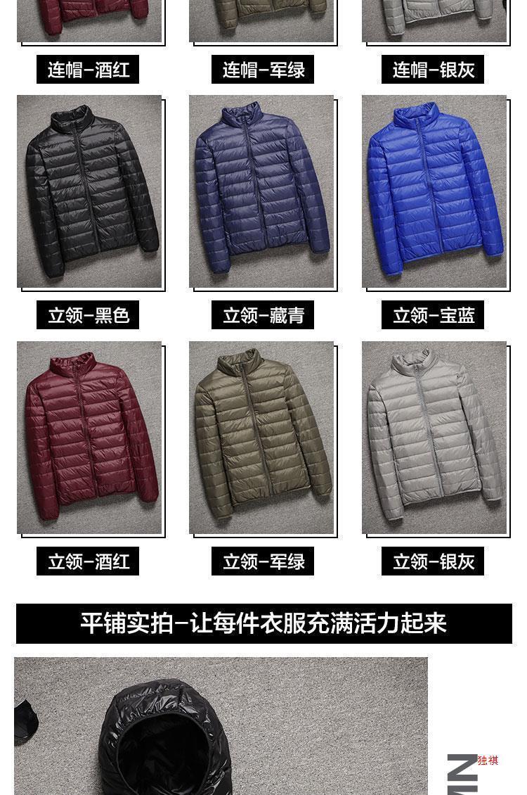 Anti-temporada clara ropa de algodón ligera plumón hombre tamaño ultra delgada ropa de algodón ligera abrigo corto a prueba de frío