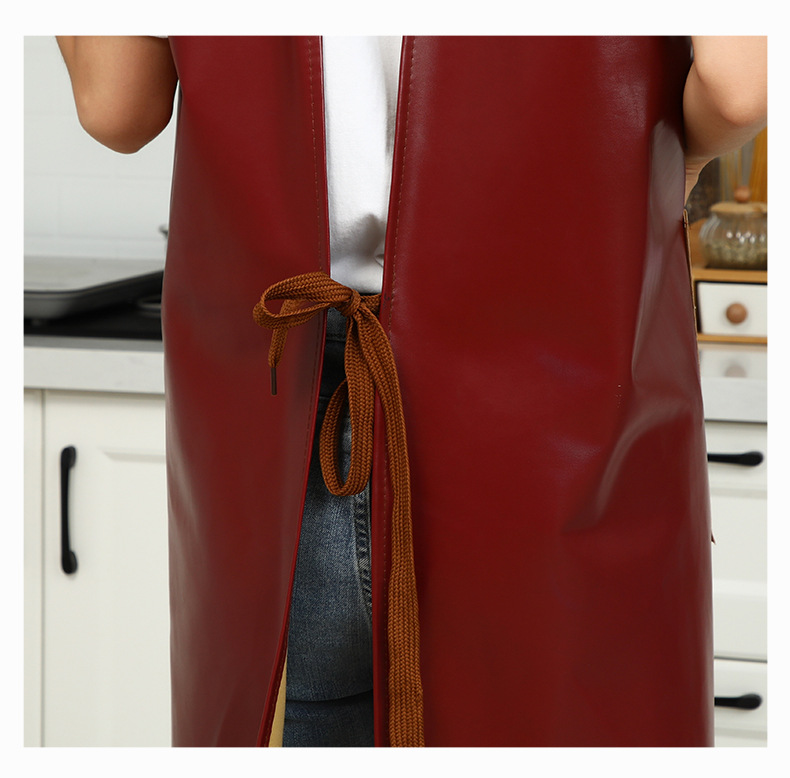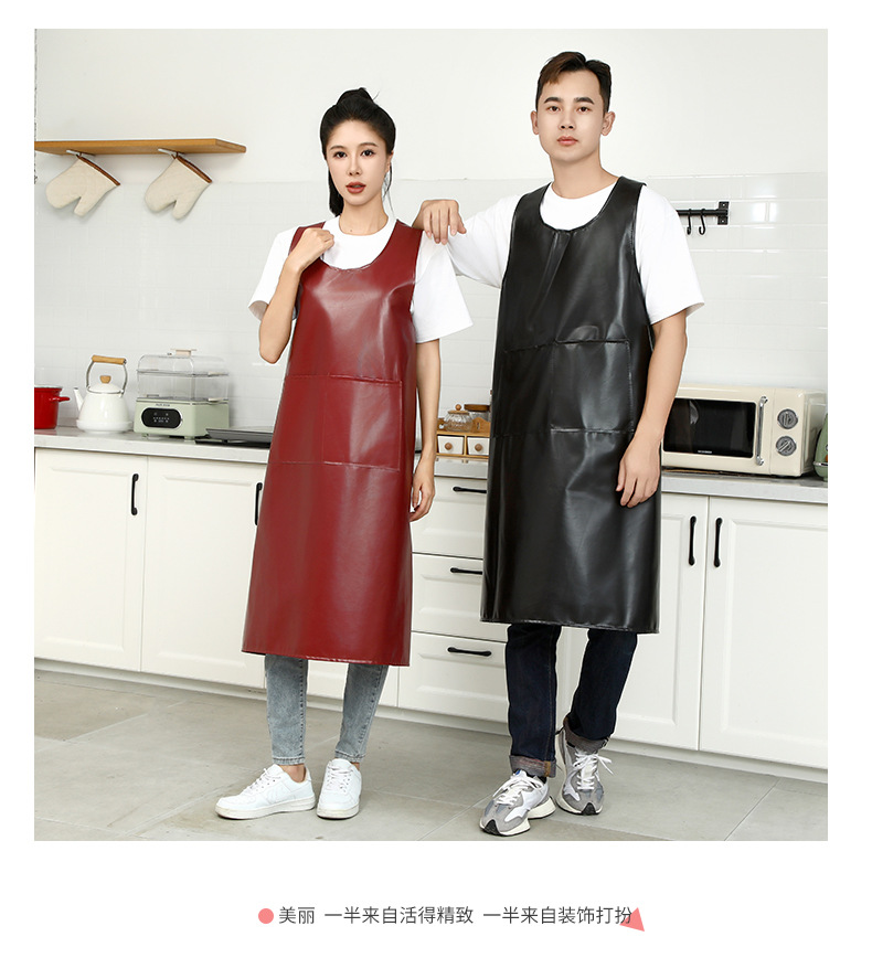 Duende de cuero PU chaleco personalizado delante de cuero chaleco hombre y mujer impermeable a prueba de aceite cocina gruesa de la suciedad