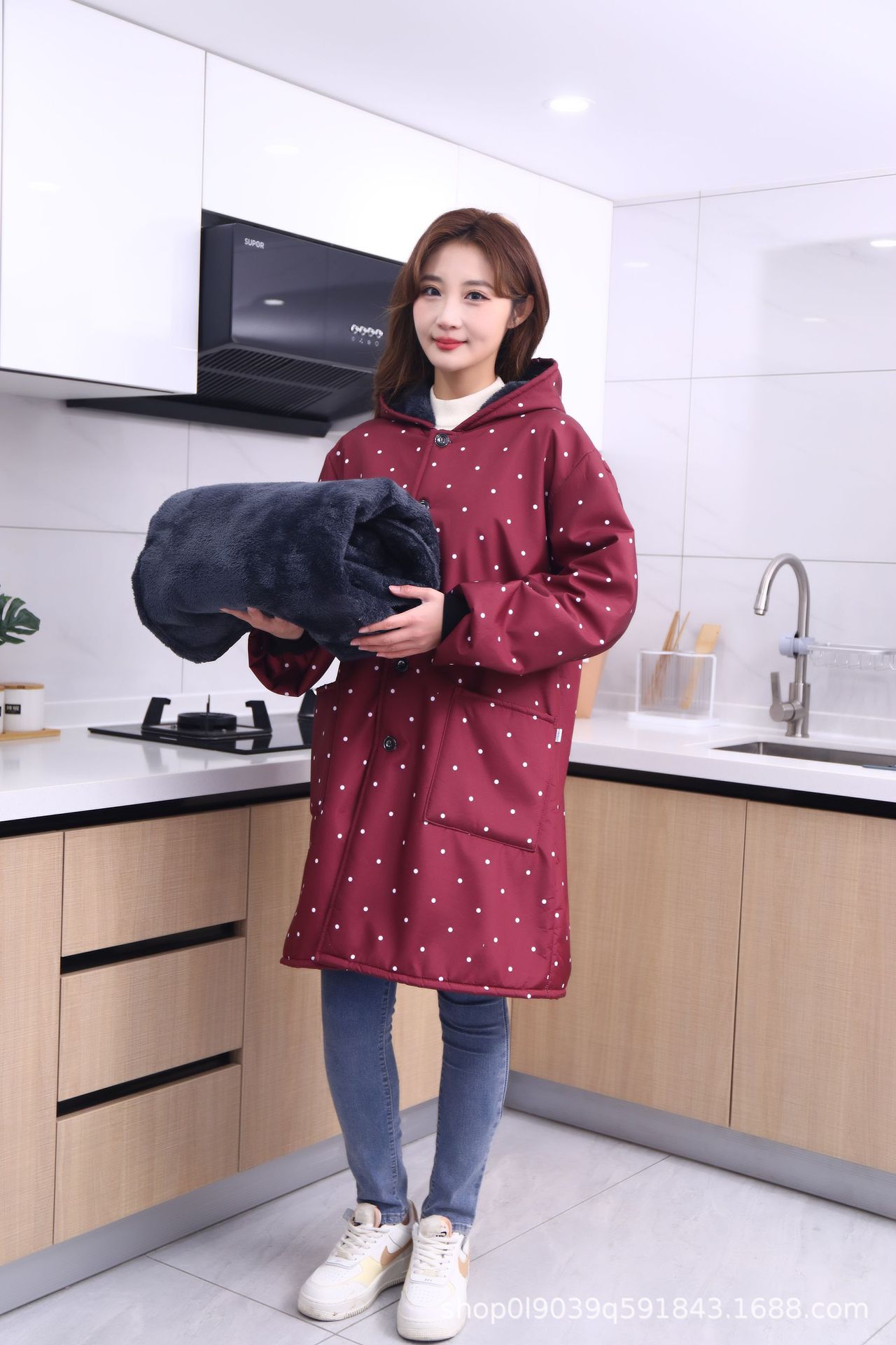 Nuevo tipo de abrigo a prueba de agua, a prueba de aceite, abrigo de lana gruesa, abrigo de invierno, abrigo de invierno a prueba de viento, abrigo largo para el hogar