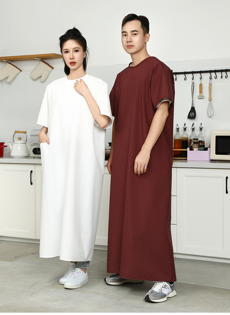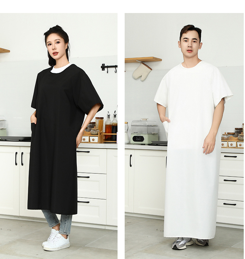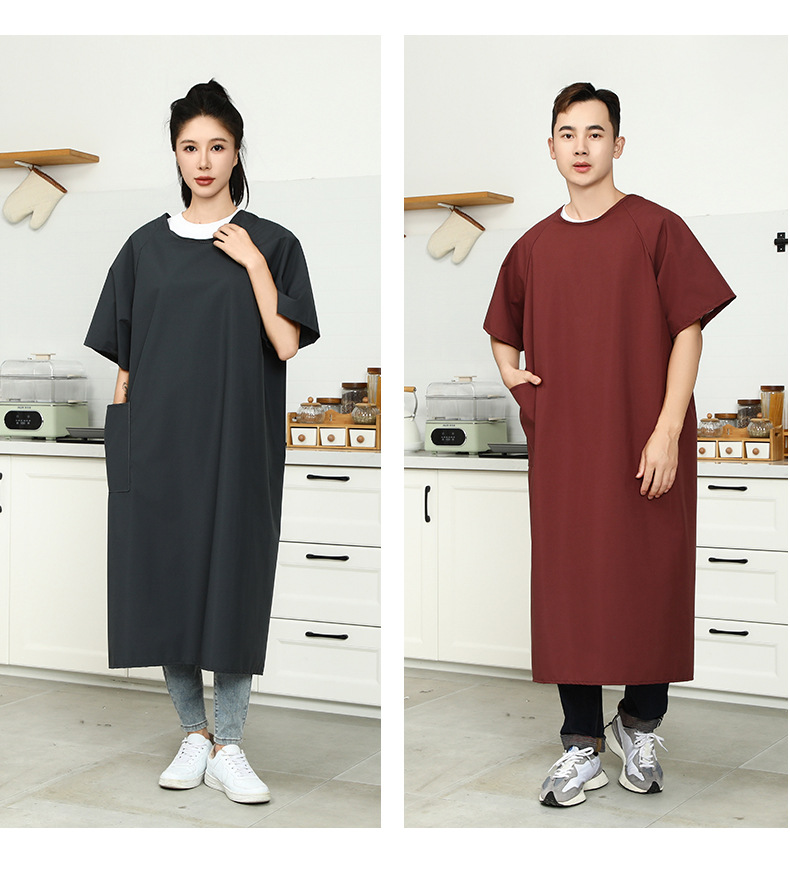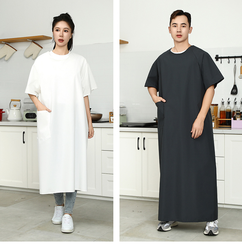 Delantal de cocina para el hogar micro impermeable de estilo fino de verano para adultos manga corta manga inversa ropa de trabajo para hombres y mujeres