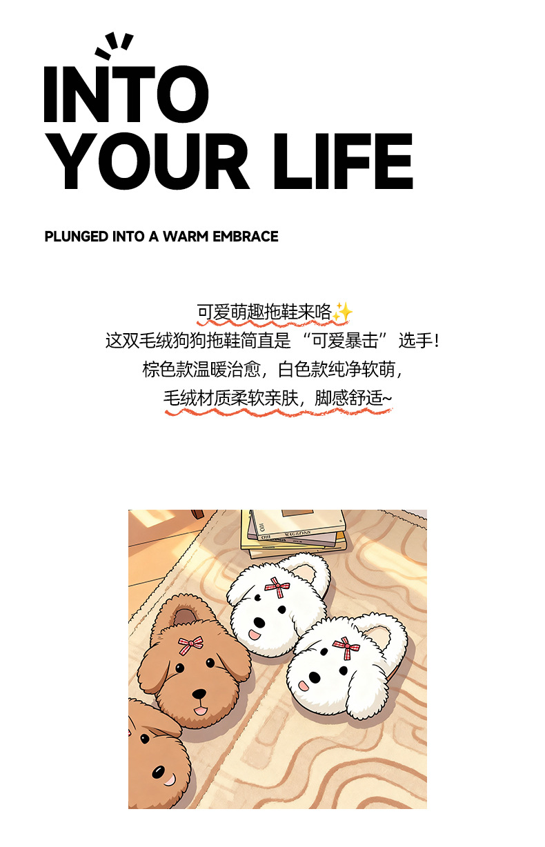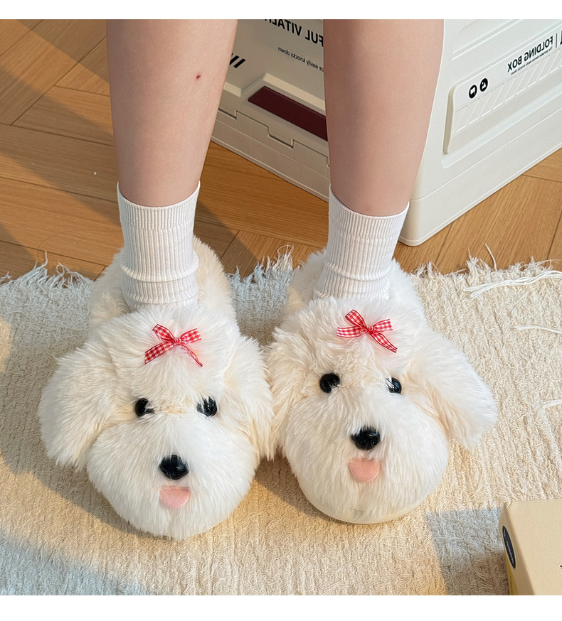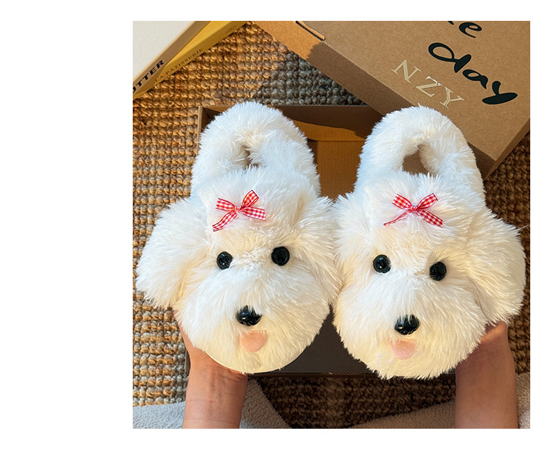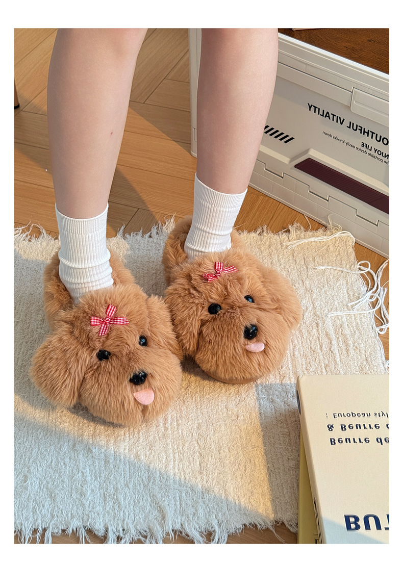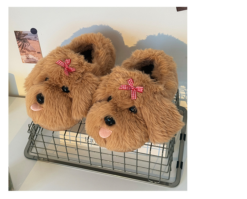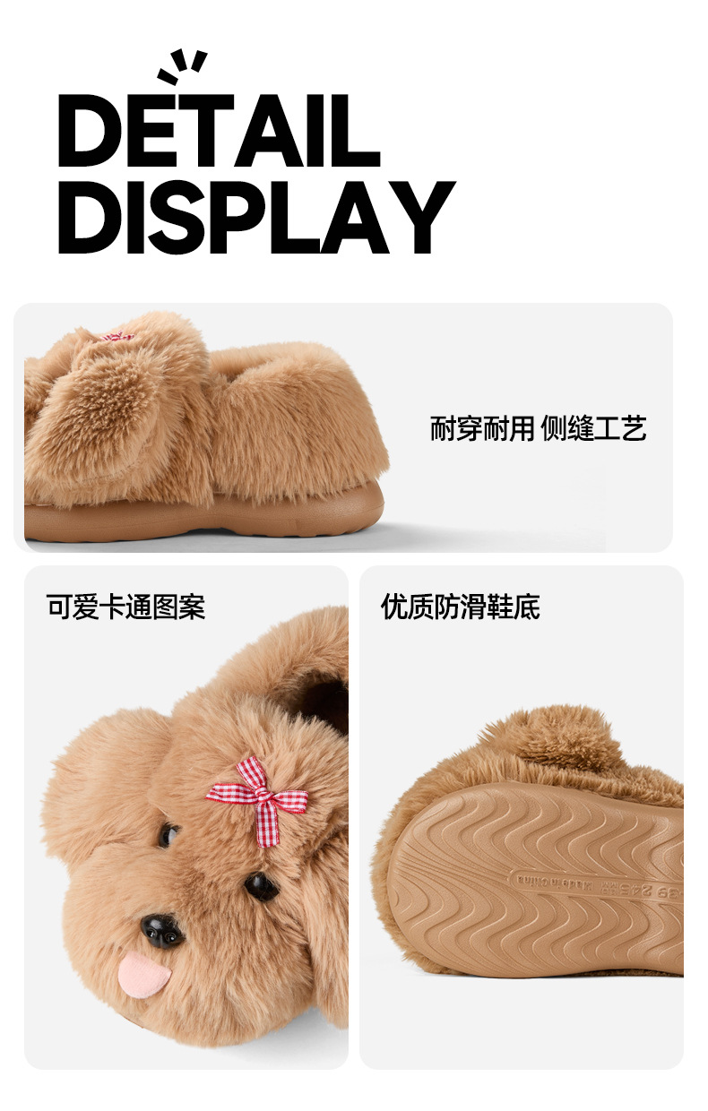 Fábrica de zapatos Qidan zapatillas de algodón de cachorro de dibujos animados para mujeres otoño y invierno en el hogar lindo calentamiento bolsa antideslizante tacones zapatos de algodón para mujeres