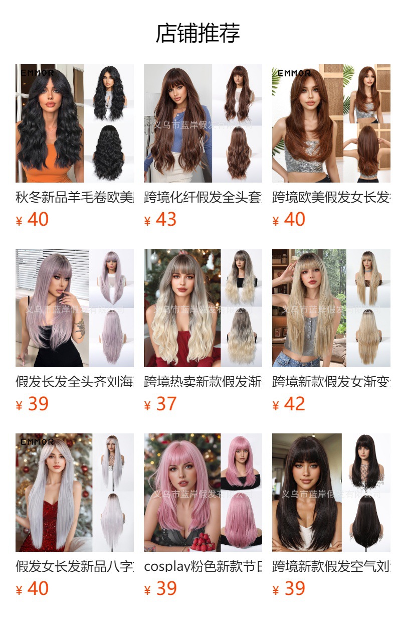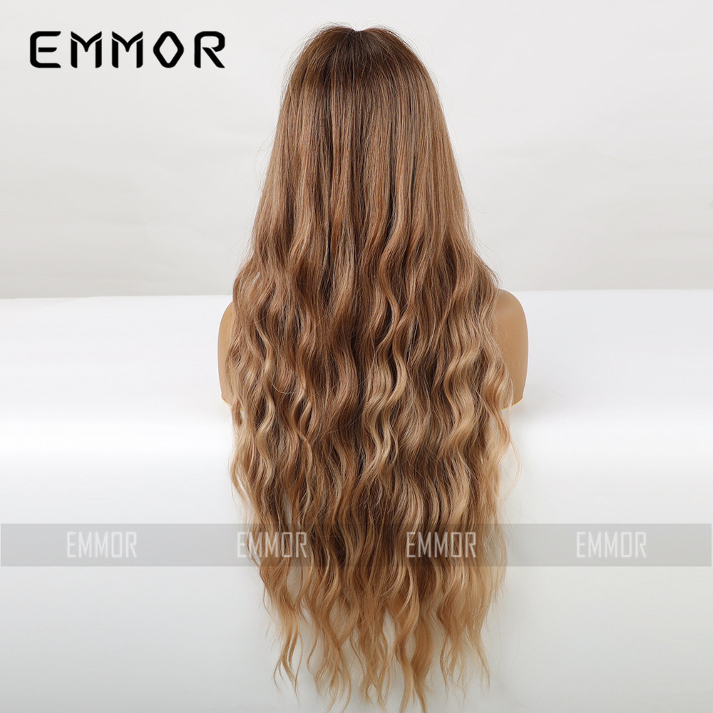 Peluca de las mujeres europeas y americanas al por mayor de la fábrica elegante flequillo de ocho caracteres Marrón largo y rizado pelo de alta temperatura de seda fibra química tocado pelucas