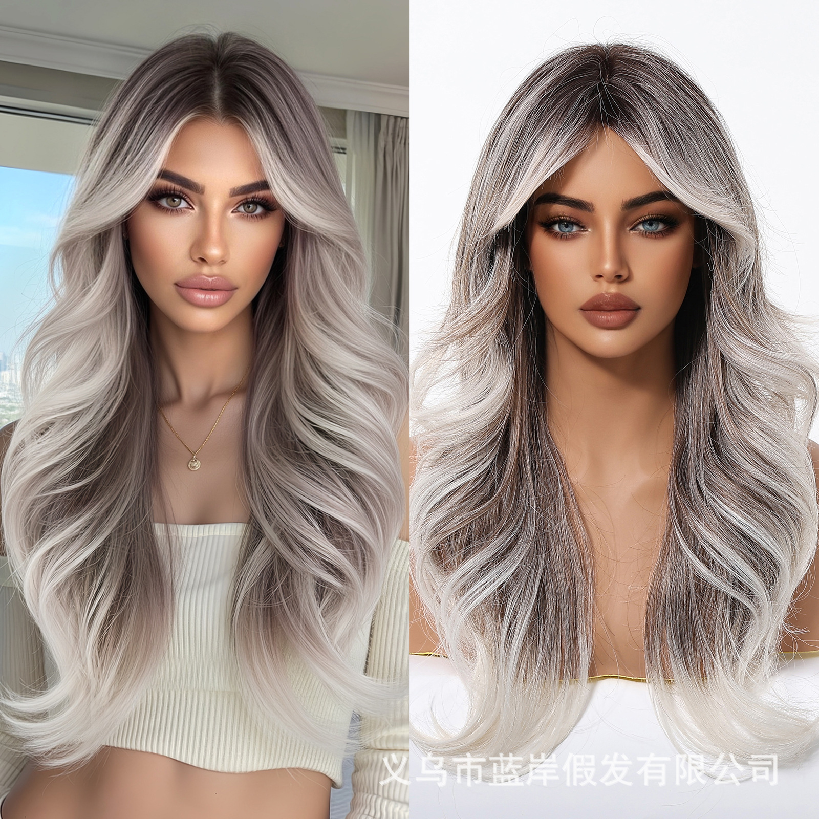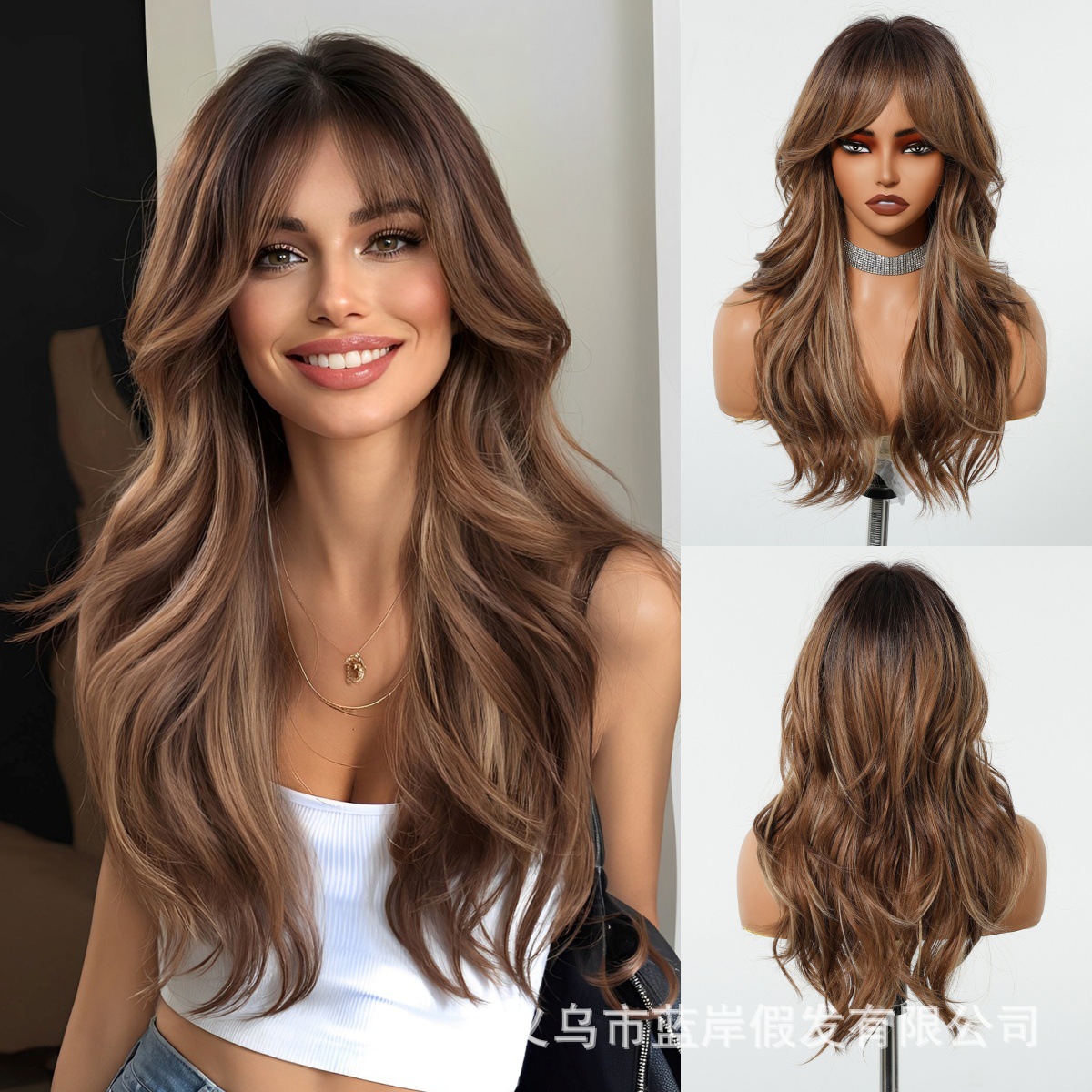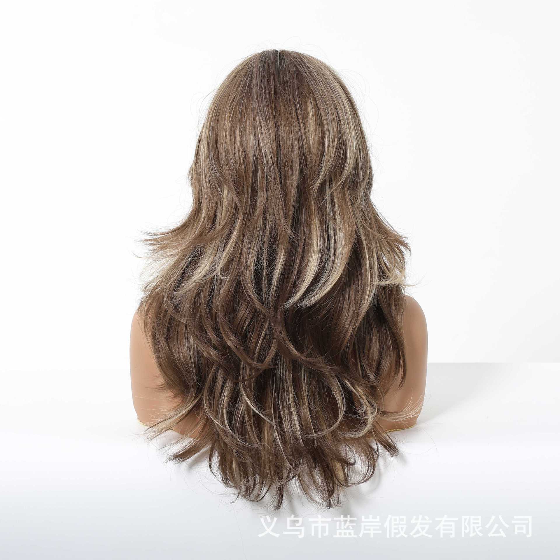 Peruca europea y americana para mujeres simulación natural de ocho caracteres rizos de cabello largo sensación de atmósfera perezosa toda la cubierta de pelo
