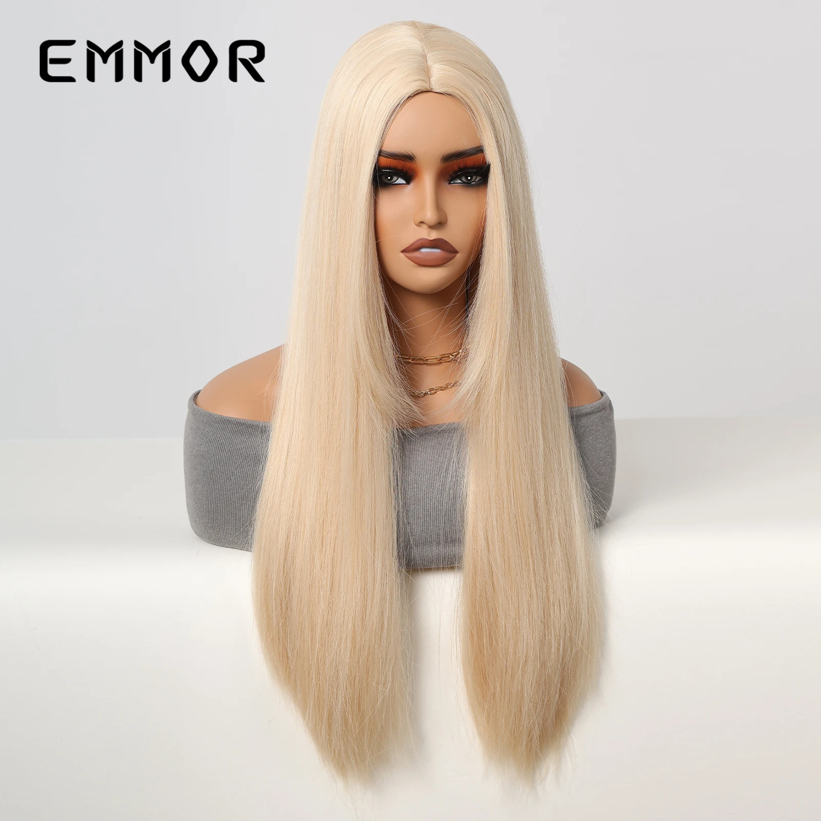 Cabello largo y liso, sin flequillo, marrón dorado, moda natural, venta caliente transfronteriza, pelucas europeas y americanas, cabello completo