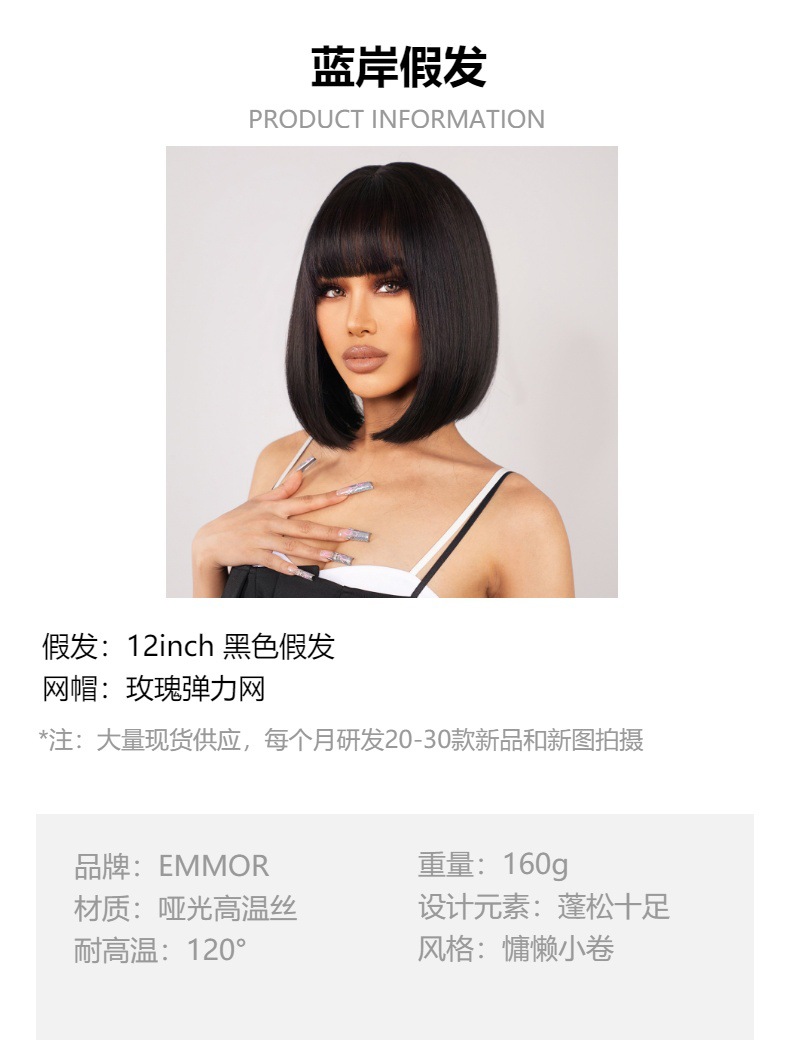 Nueva peluca europea y americana de las mujeres natural Negro Diario salir puede usar dentro hebilla cola recta Bangs Pelo Corto Bobo cabeza