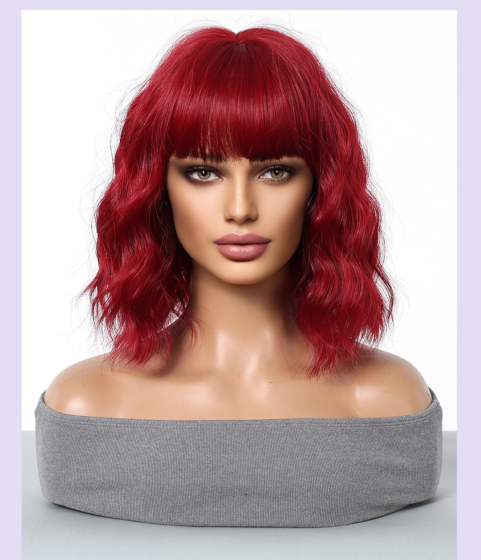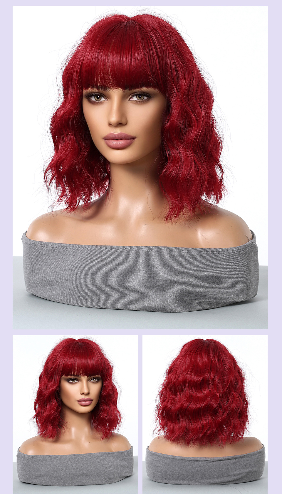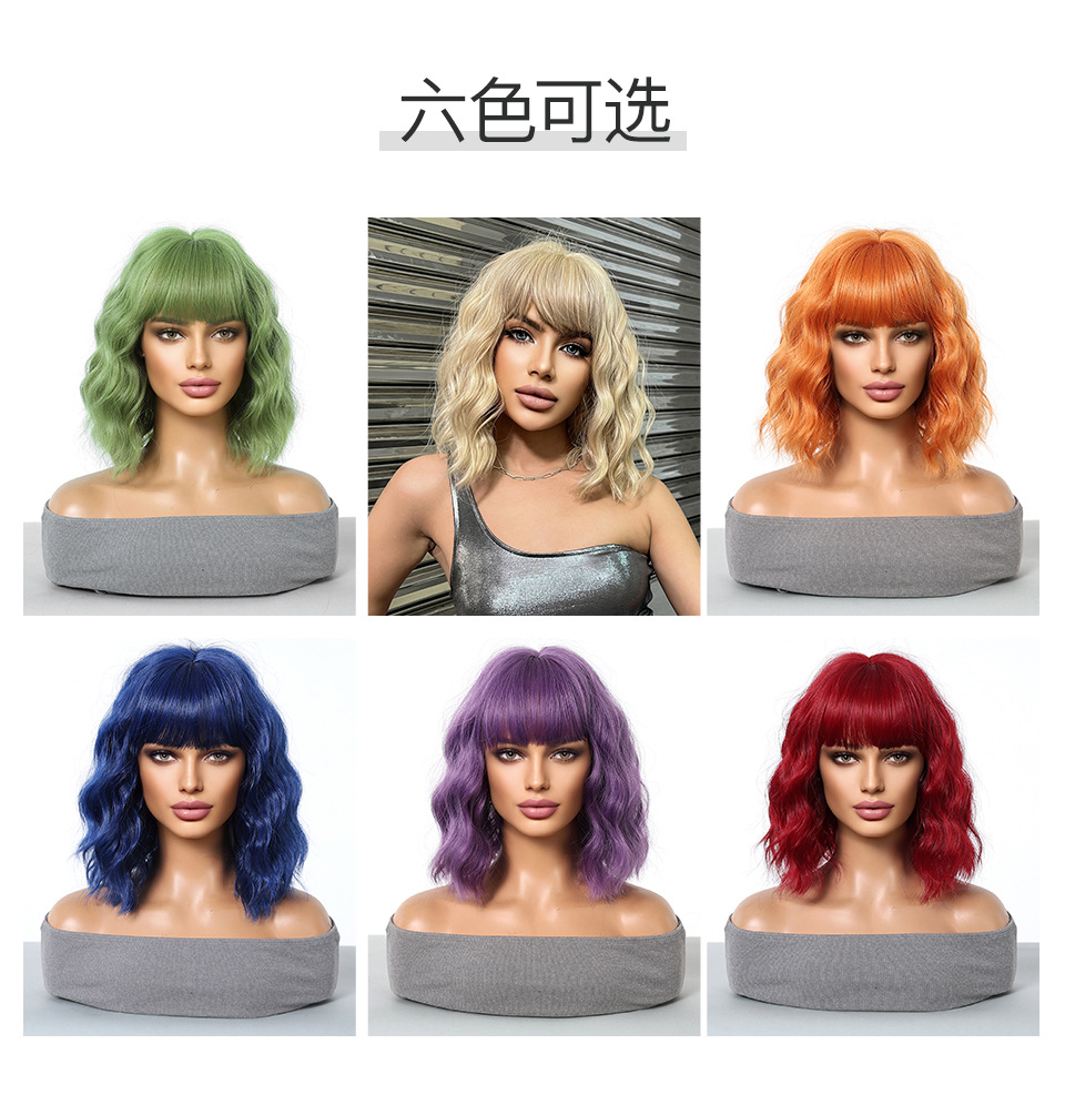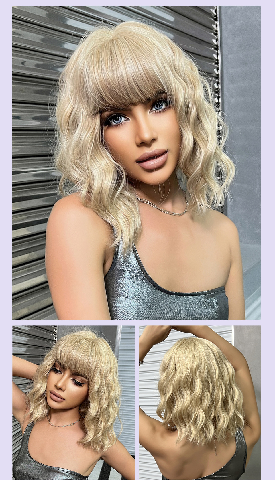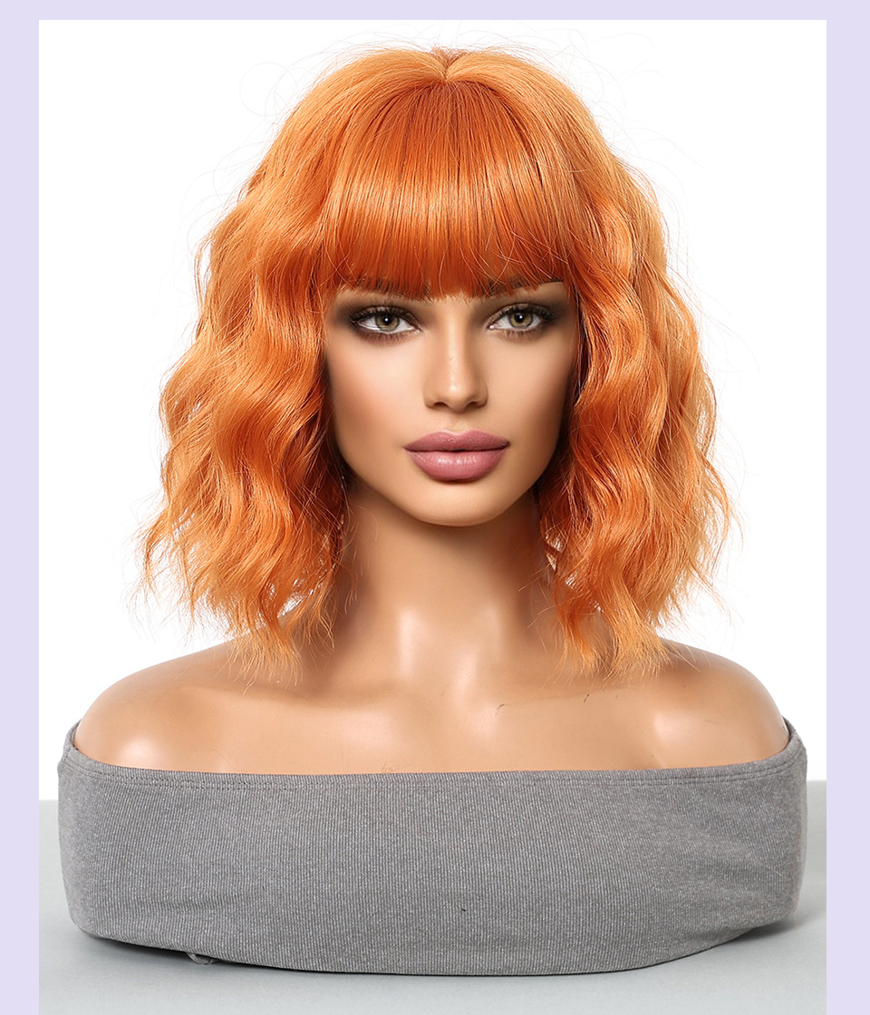 Peluca femenina pelo corto y rizado neto neto natural Qi flequillo realista Bobo cabeza dorada cubierta completa wigs spot