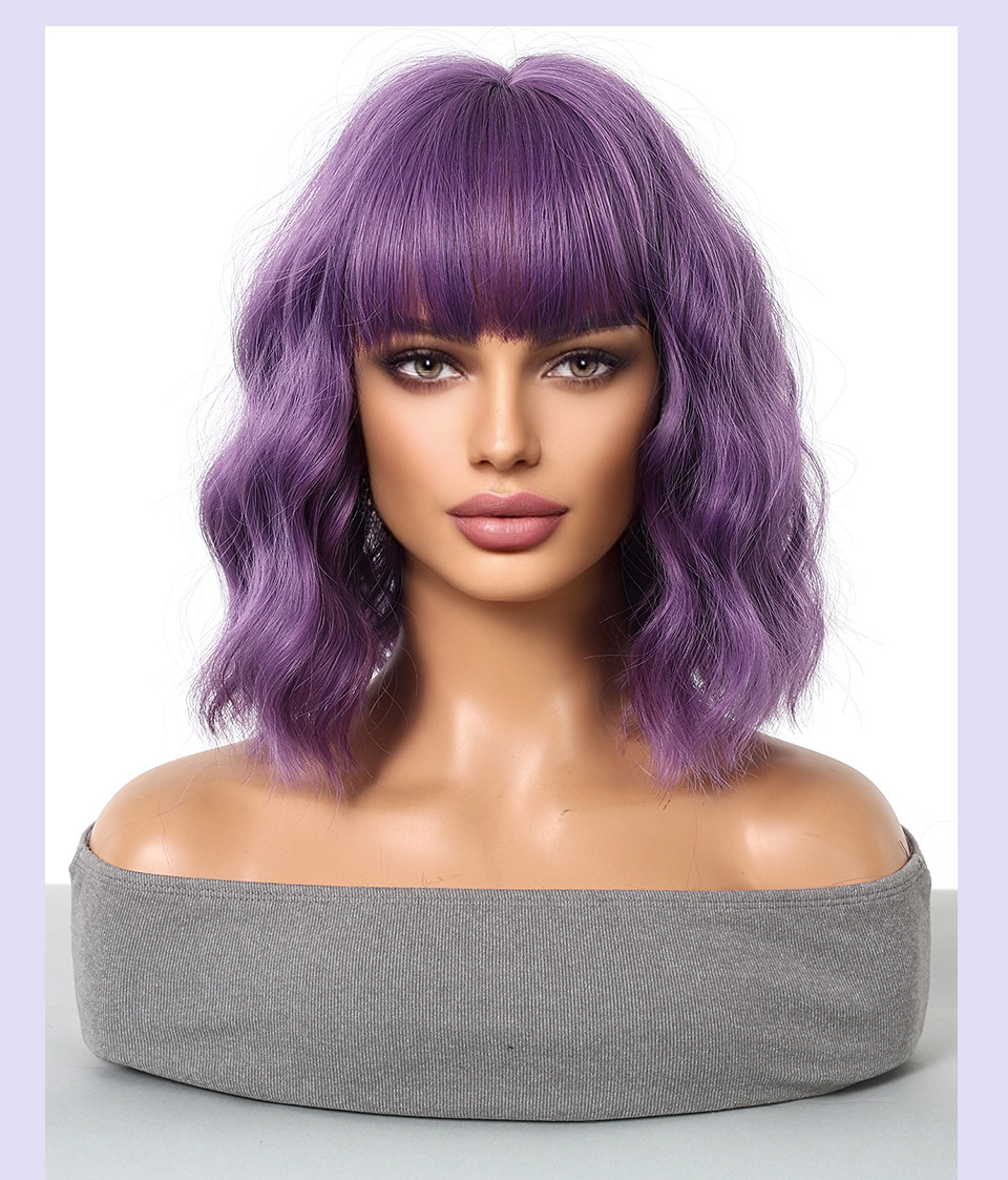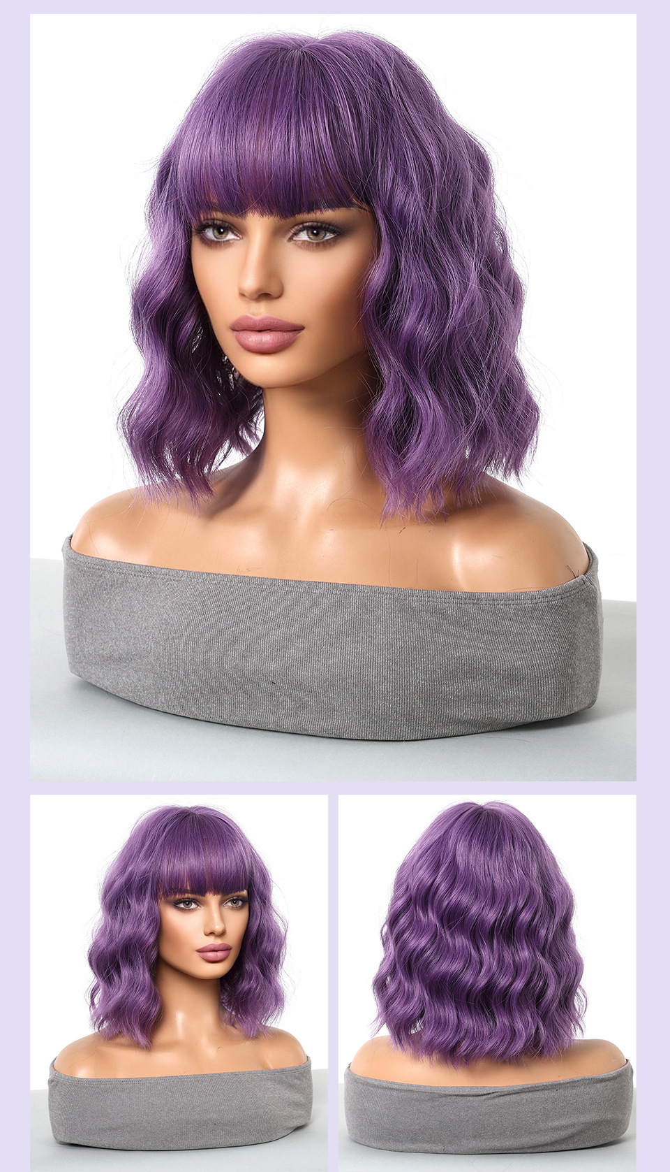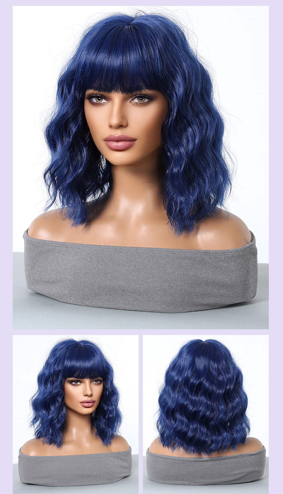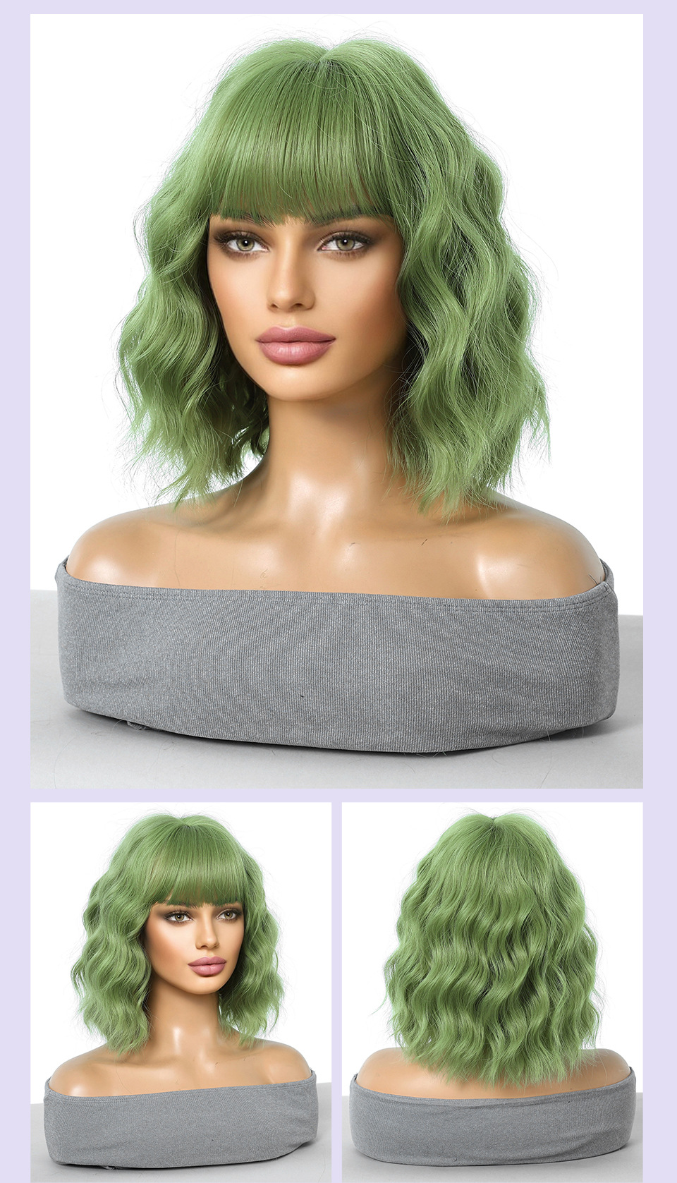 Peluca femenina pelo corto y rizado neto neto natural Qi flequillo realista Bobo cabeza dorada cubierta completa wigs spot