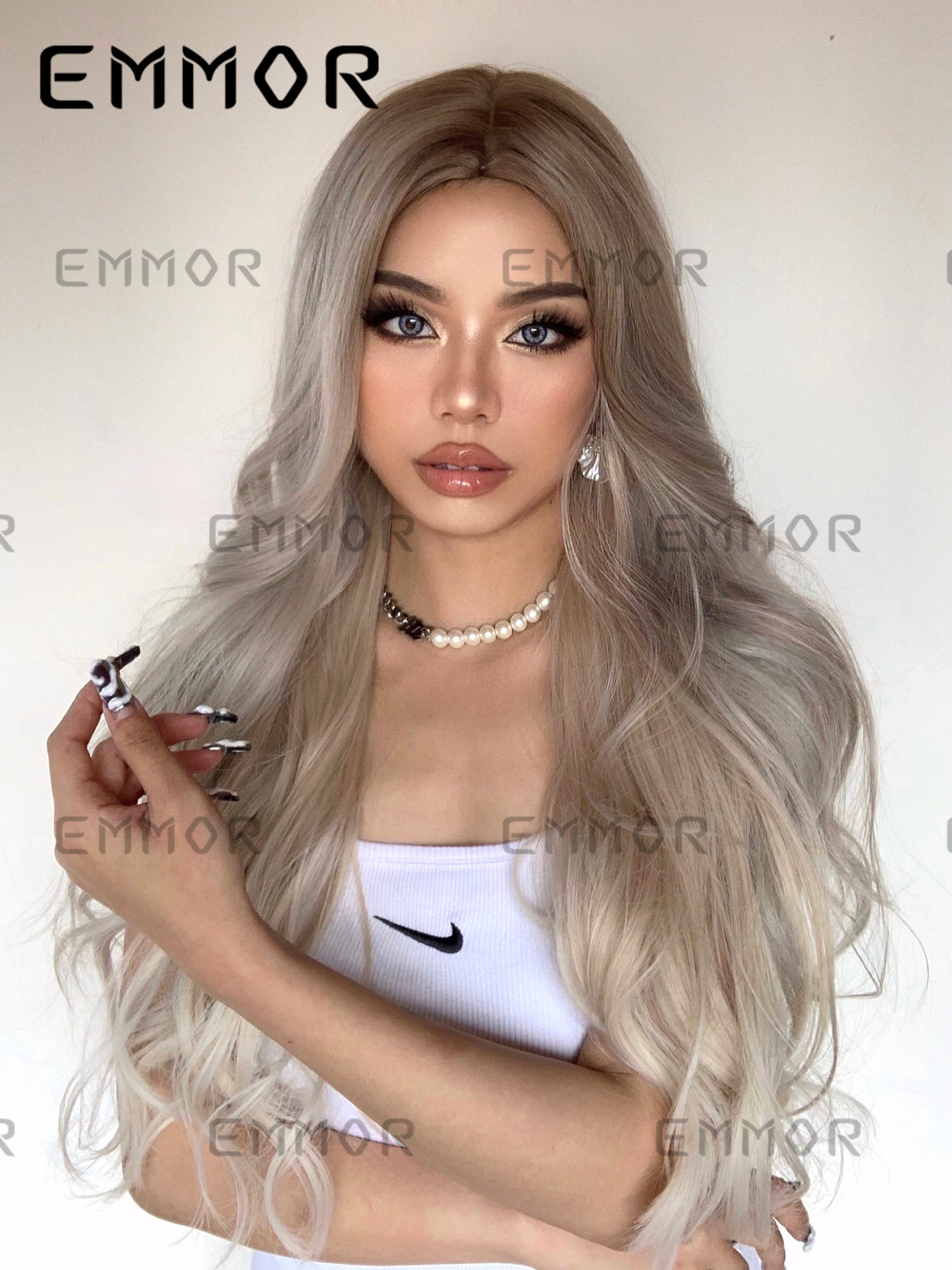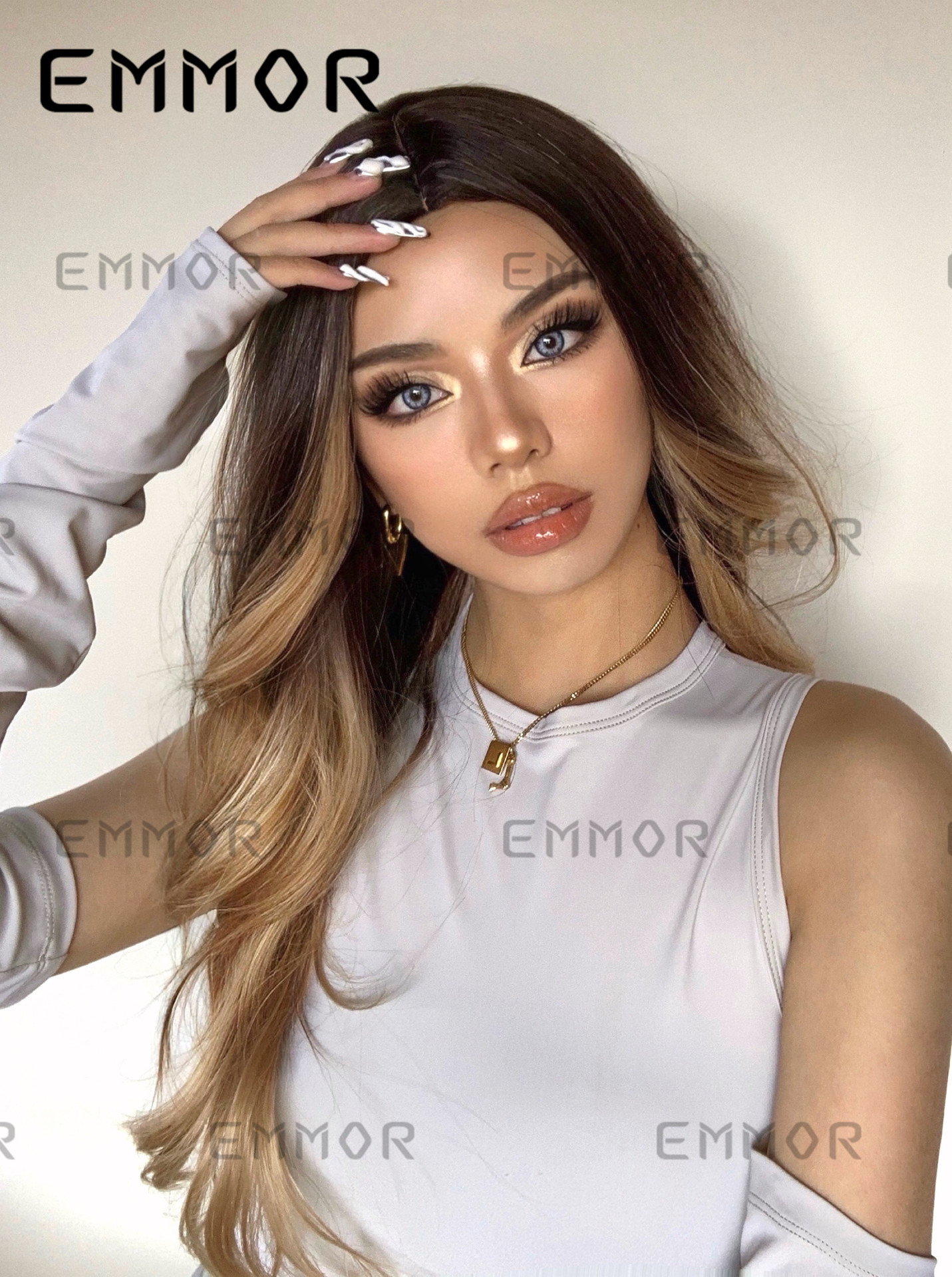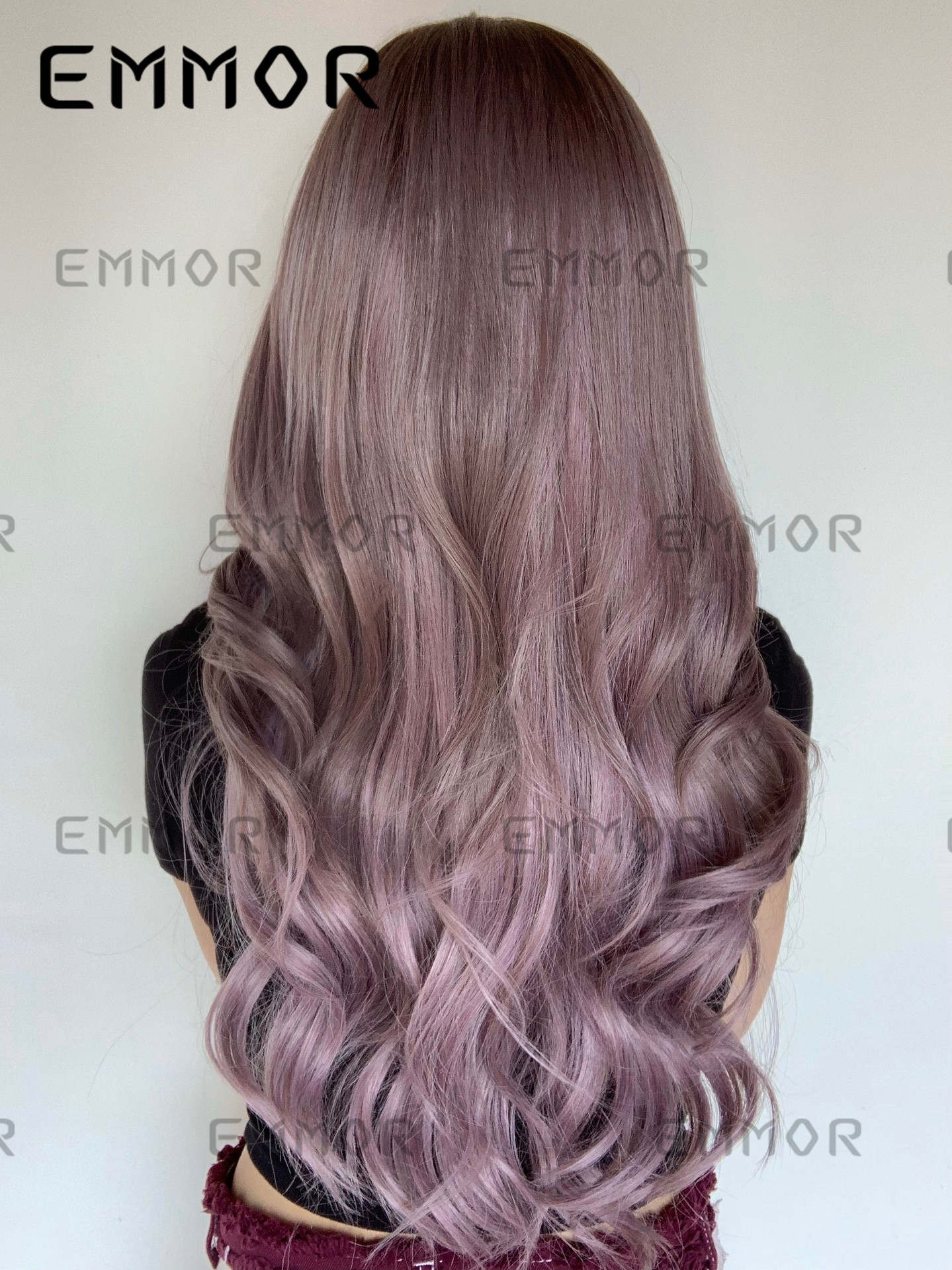 Nuevo elegante medio grande onda largo pelo rizado gradiente dorado púrpura marrón multicolor opcional europeo y americano peluca para mujeres