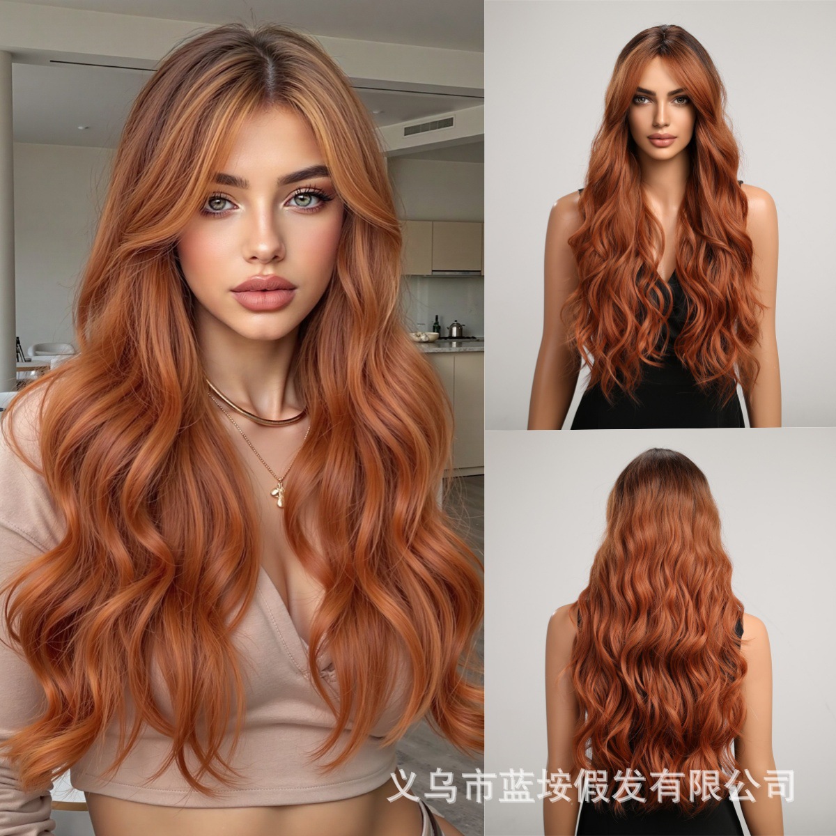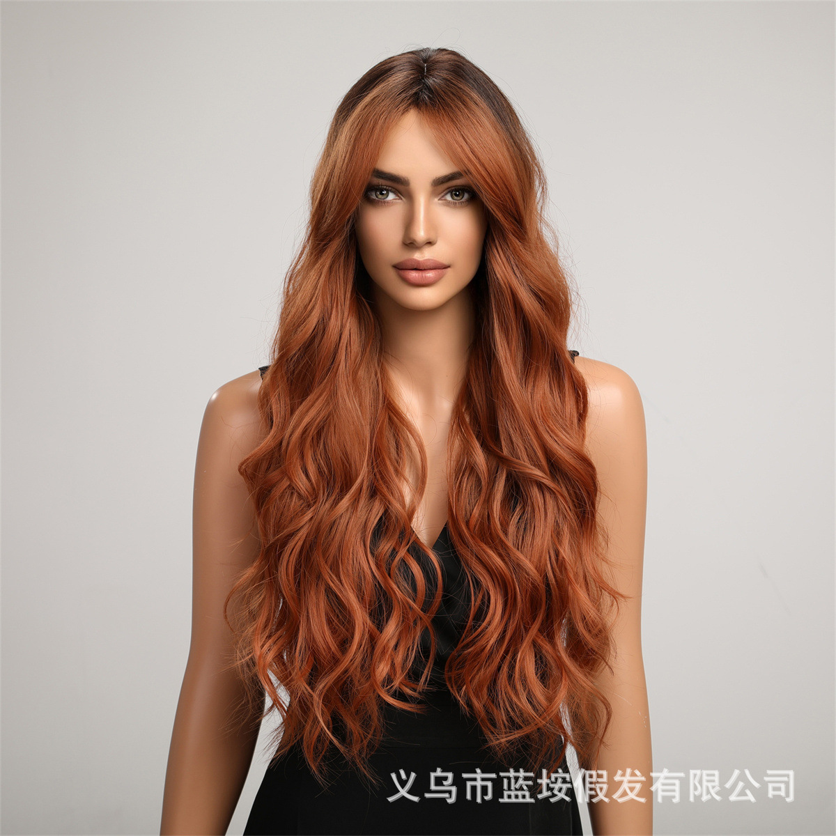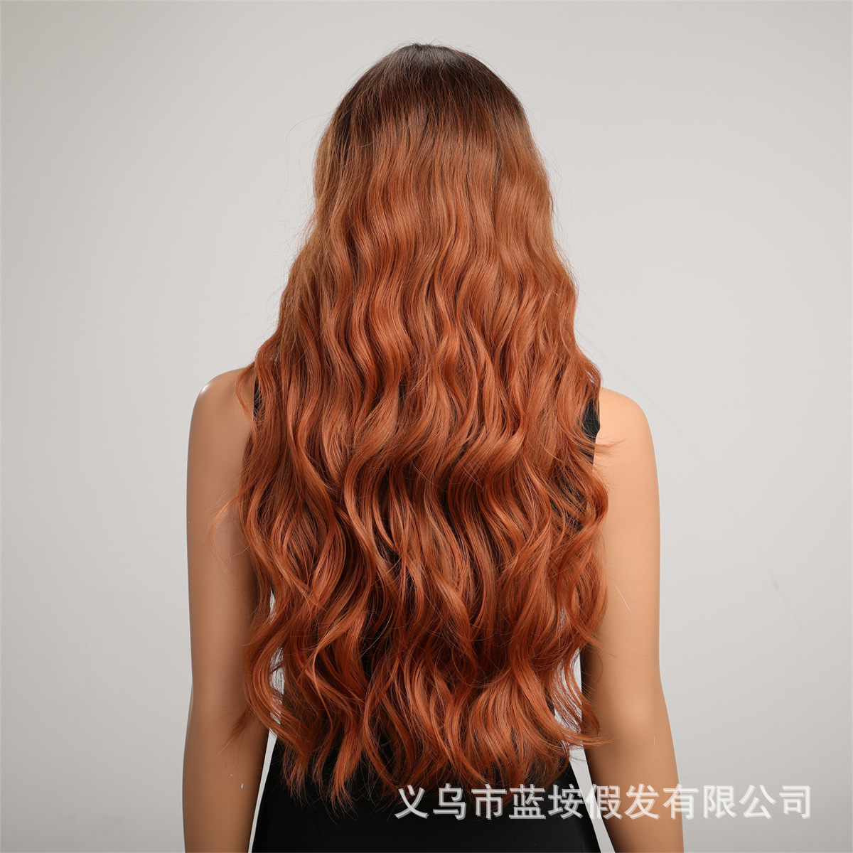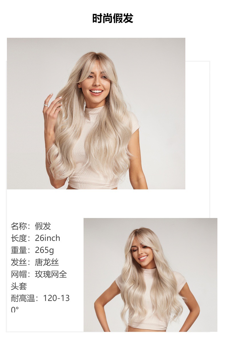 Peluca de Cabello Largo y Rizado con Degradado Blanco Dorado, Estilo Europeo y Americano, Natural y Moderna, con Ondas Grandes, para Mujer