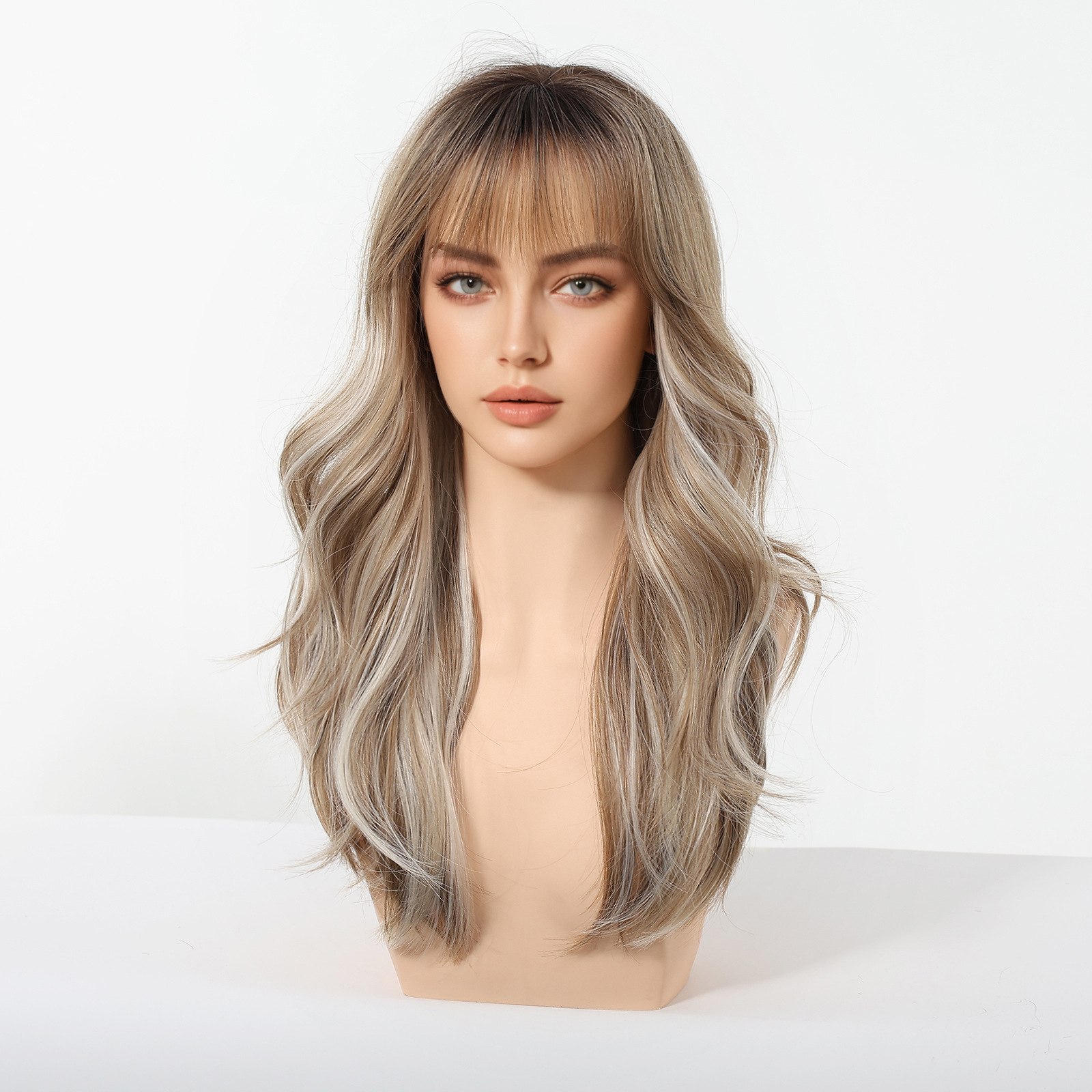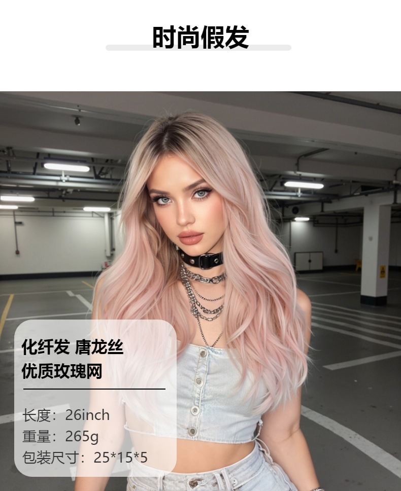 Europa y los Estados Unidos gradiente rosa pelucca de la mujer ondas de moda natural de Halloween en línea viento nuevo rizado largo cubierta de cabeza completa