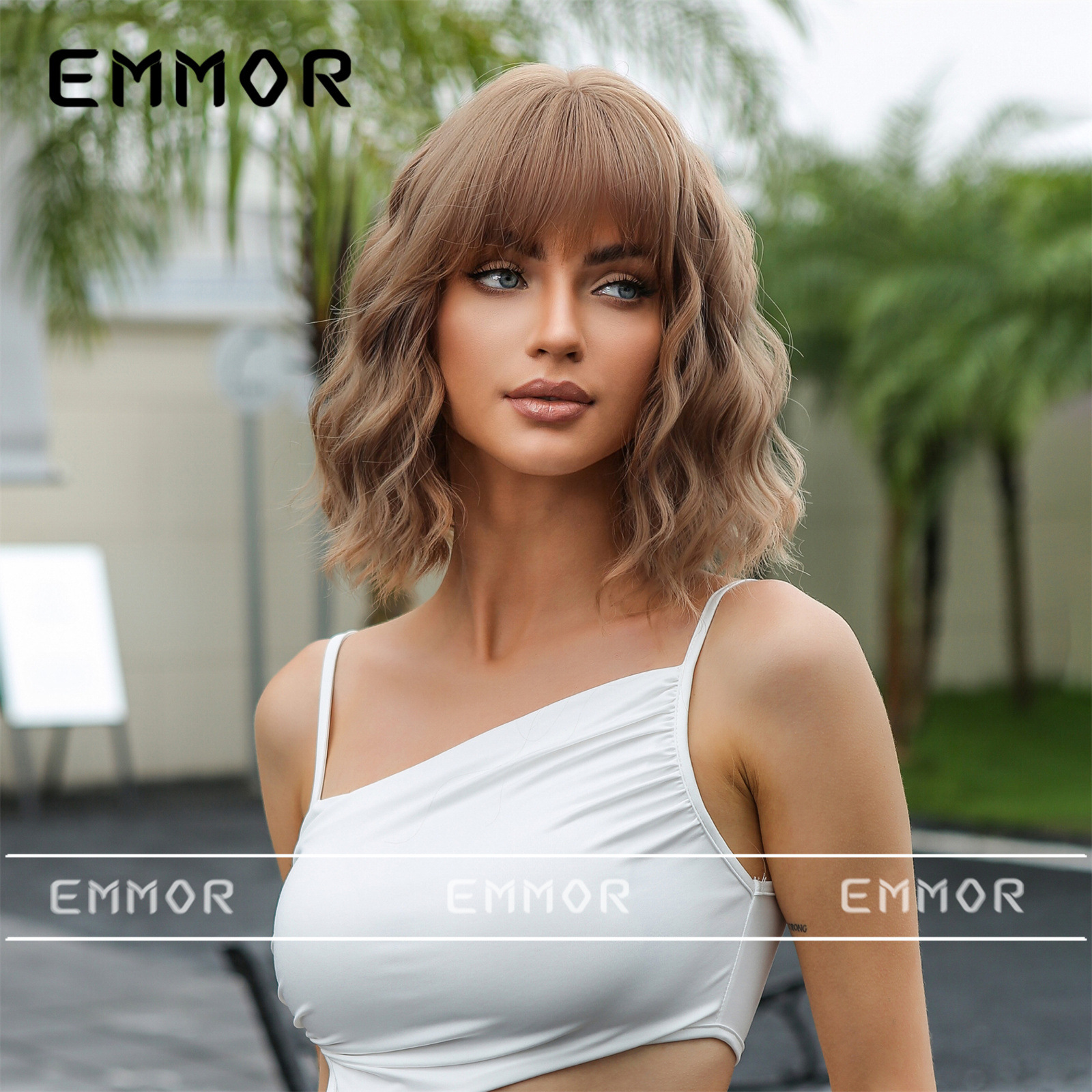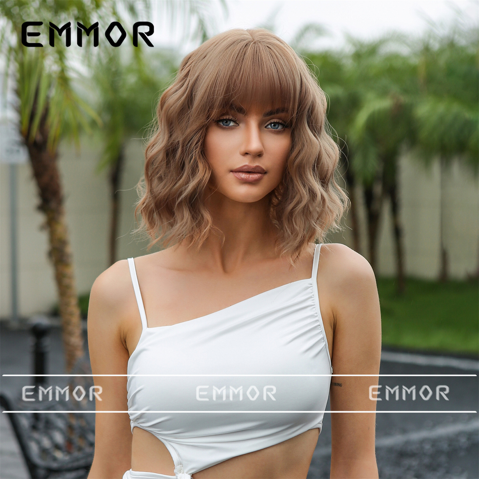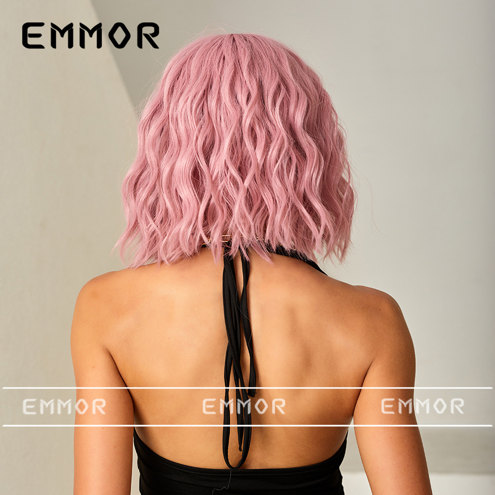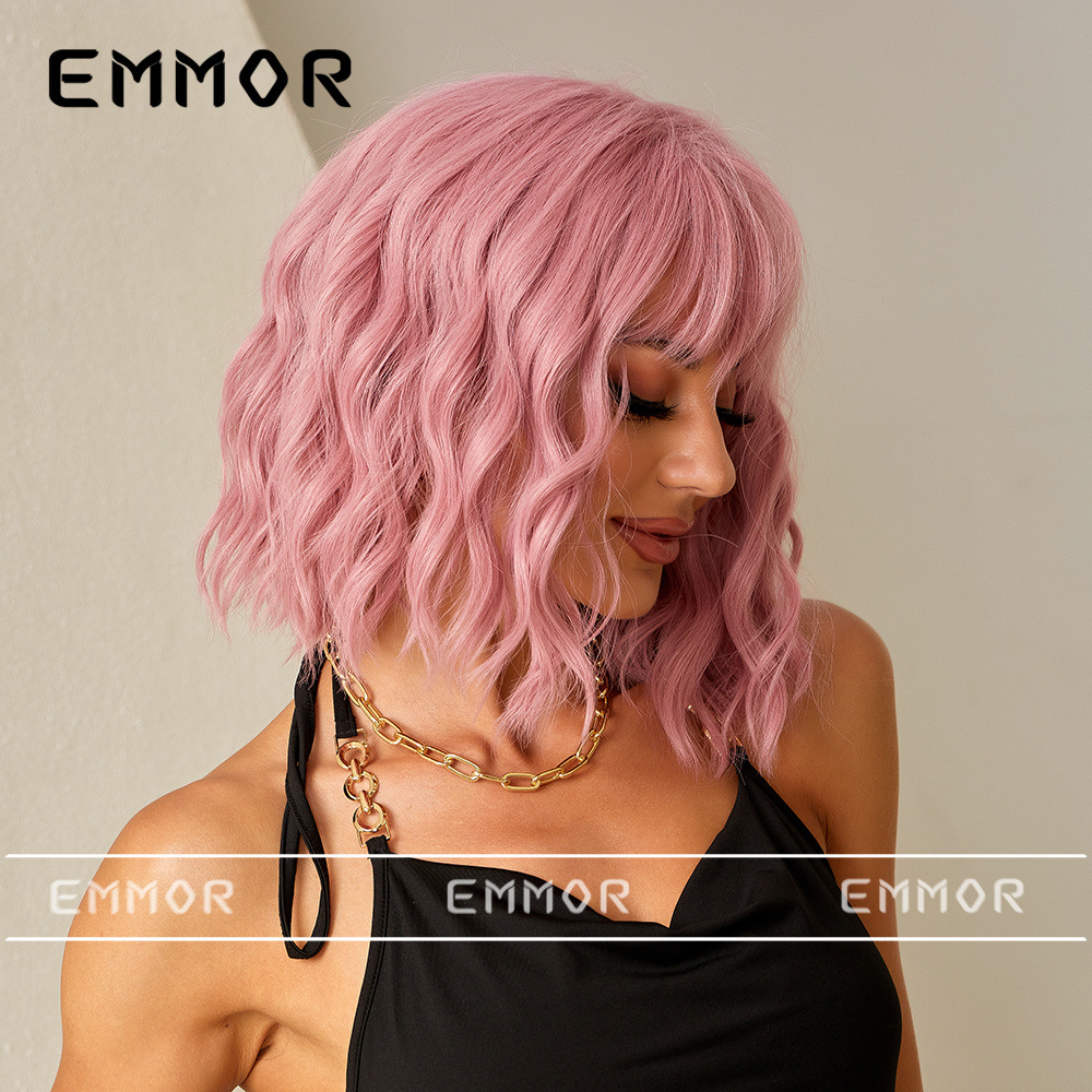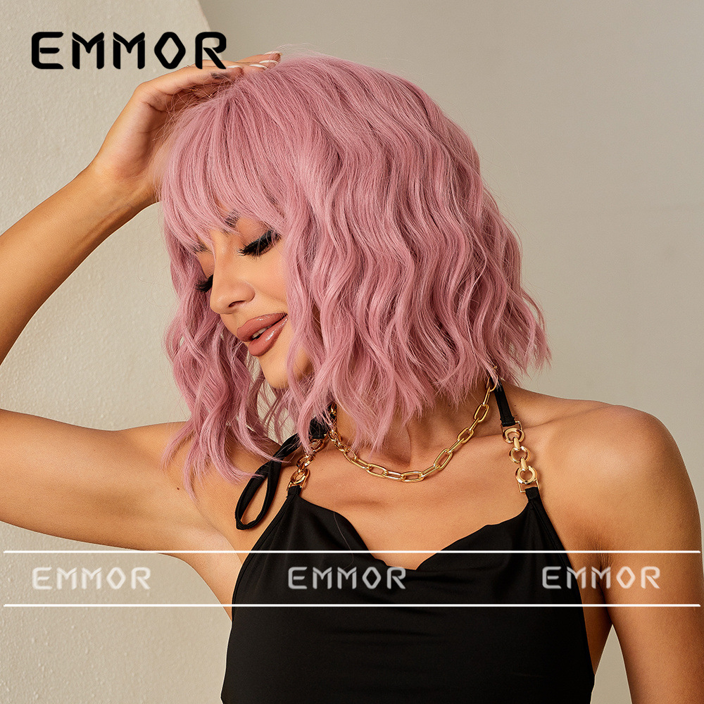 Estilo europeo y americano Bangs corto rizado pelo onda cabeza verano luz transpirable luz marrón claro natural fibra química peluca pelo cubierta pelo