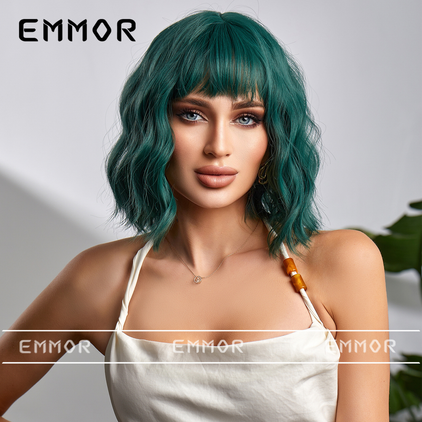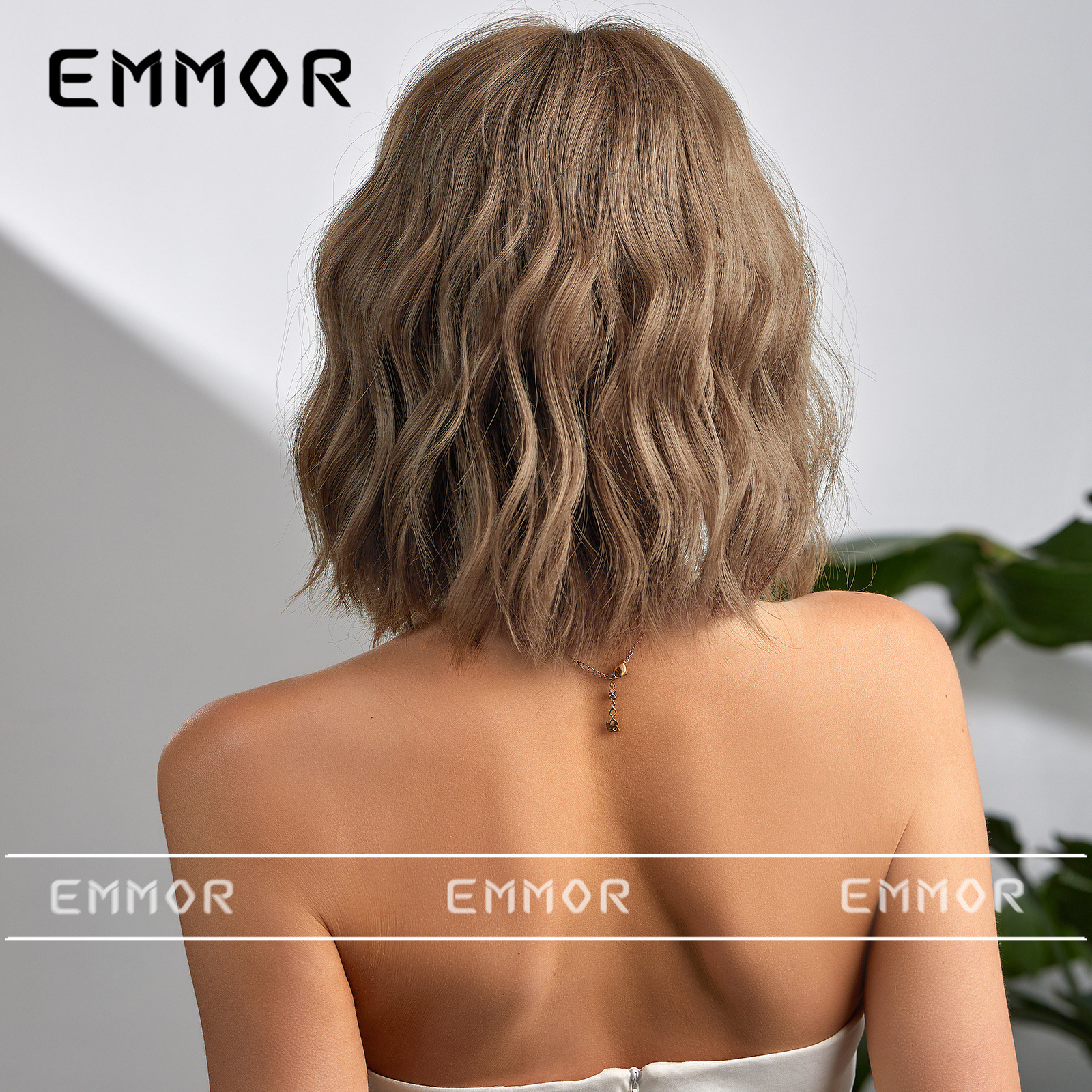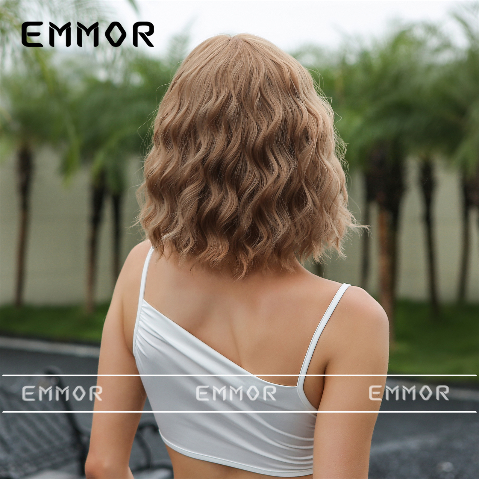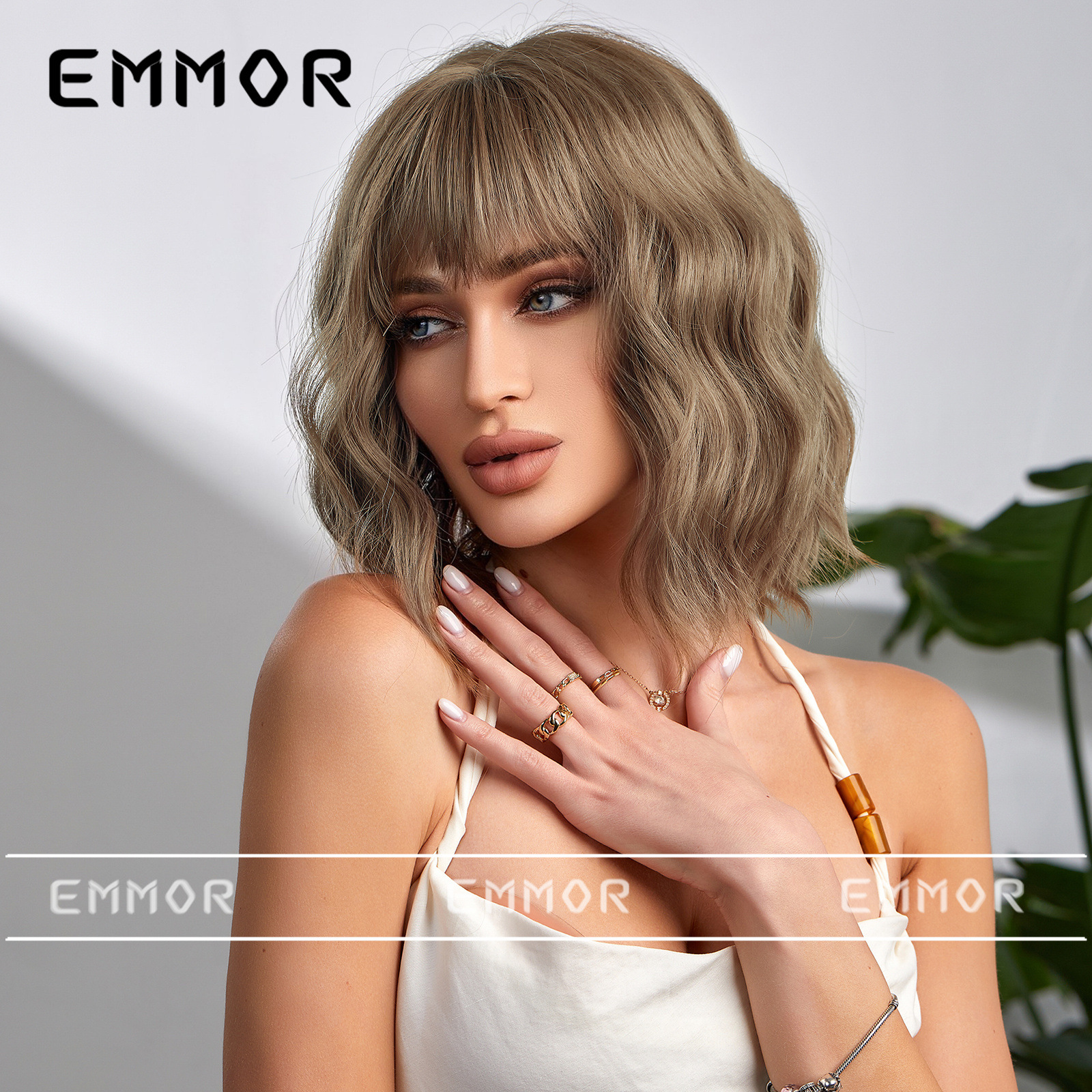 Estilo europeo y americano Bangs corto rizado pelo onda cabeza verano luz transpirable luz marrón claro natural fibra química peluca pelo cubierta pelo