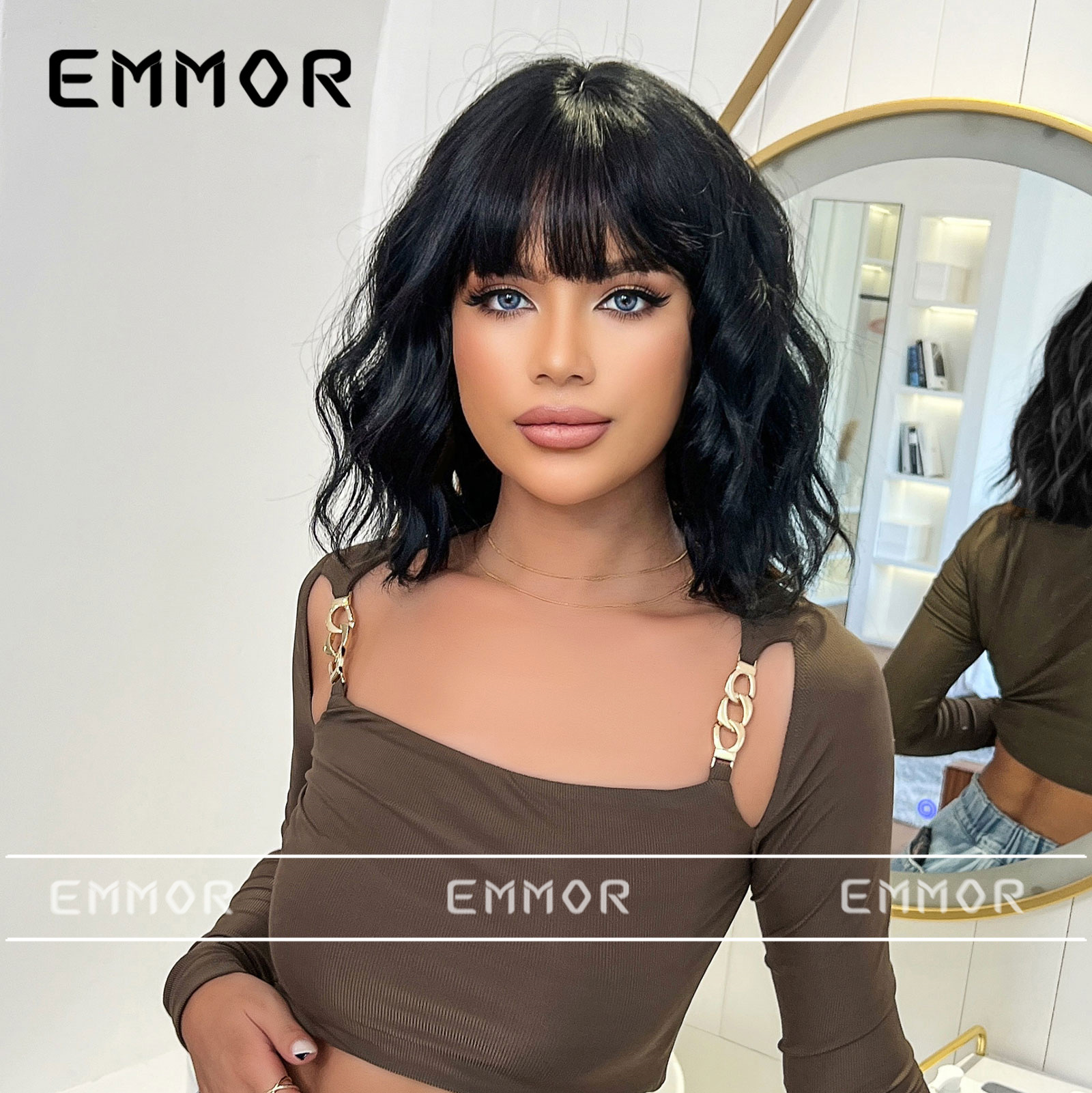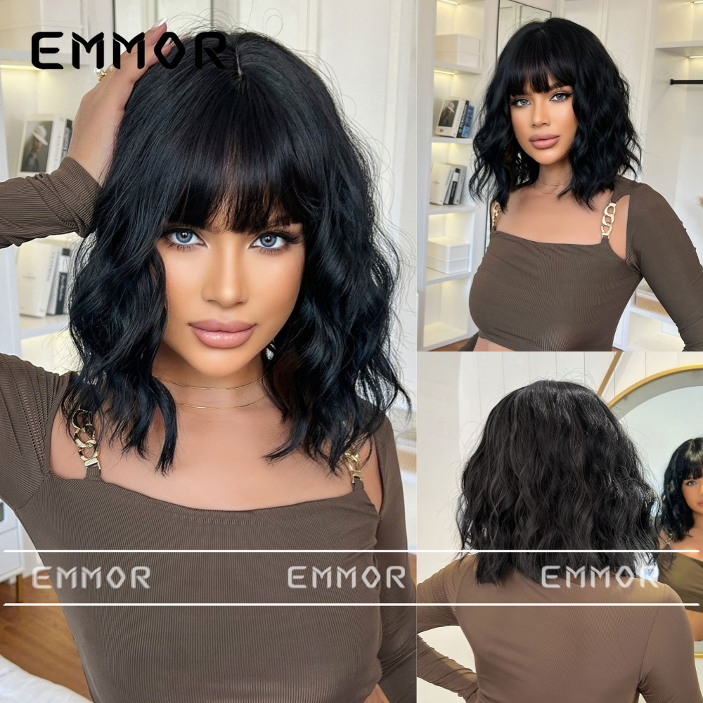 | peinado de peluca | Peluca bob de pelo corto y rizado con flequillo |