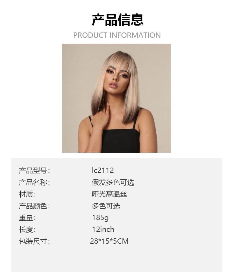 Peluca de mujer nueva celebridad en línea clavícula Pelo Corto pelo liso degradado cuero cabelludo artificial dorado cabello natural de longitud media cubierta de la cabeza completa