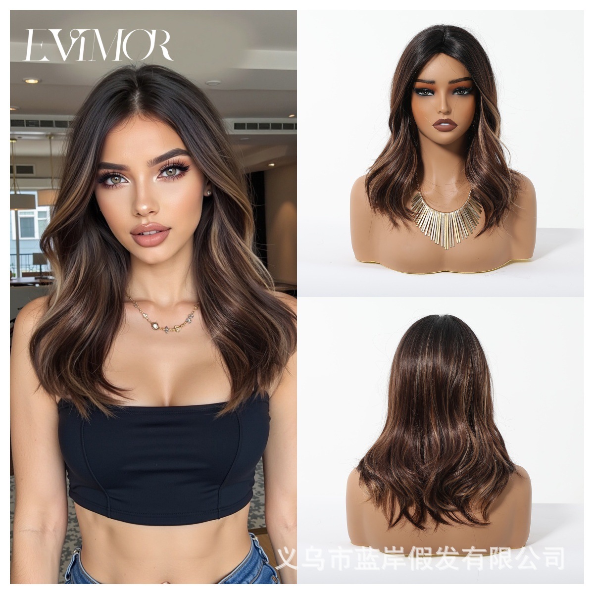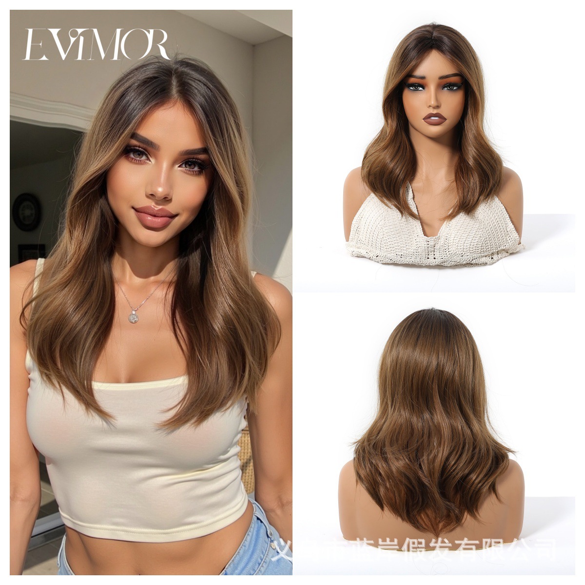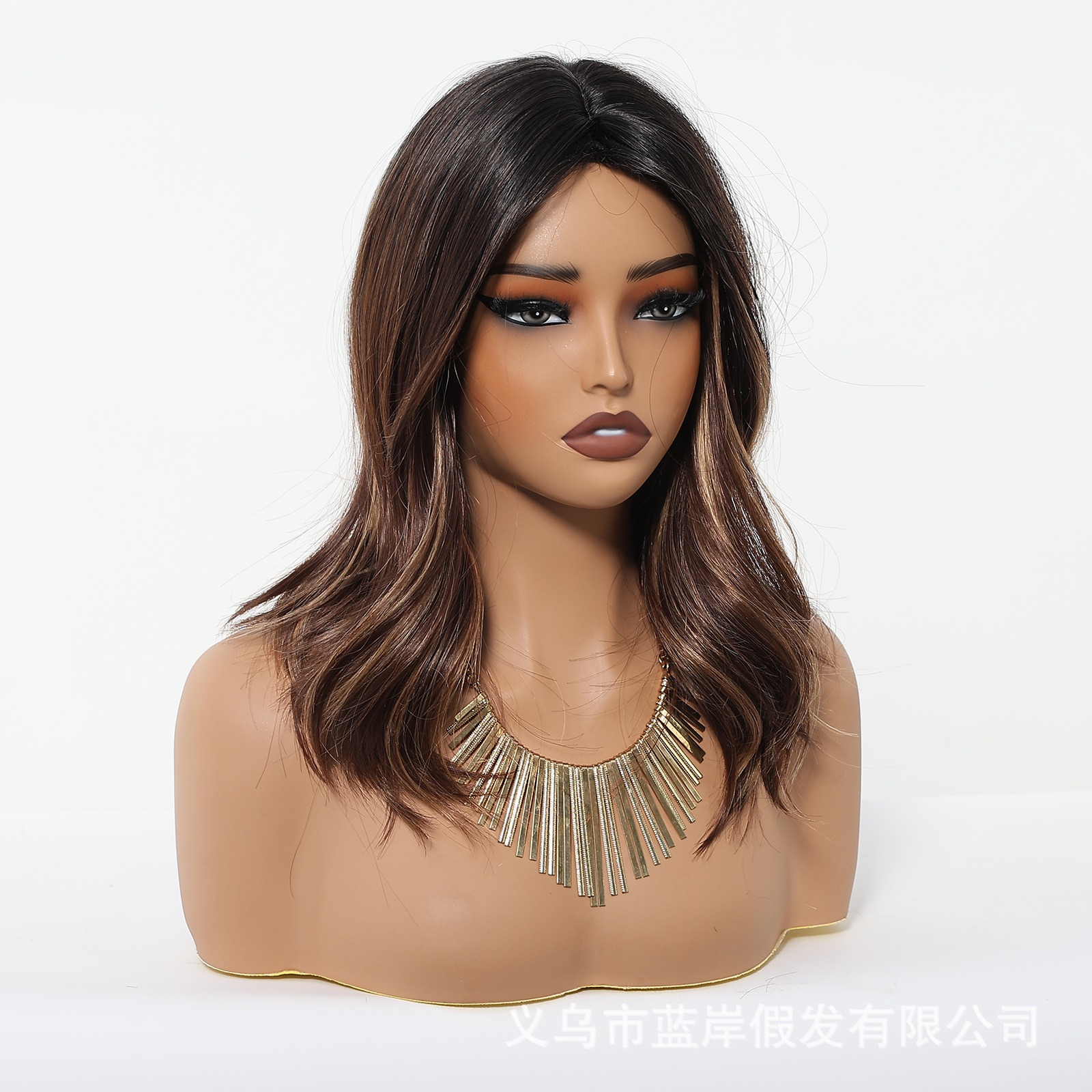 Moda europea y americana de ocho frases curvas corta fibra química peluca natural negro marrón caballo de Troya peluca de caballo