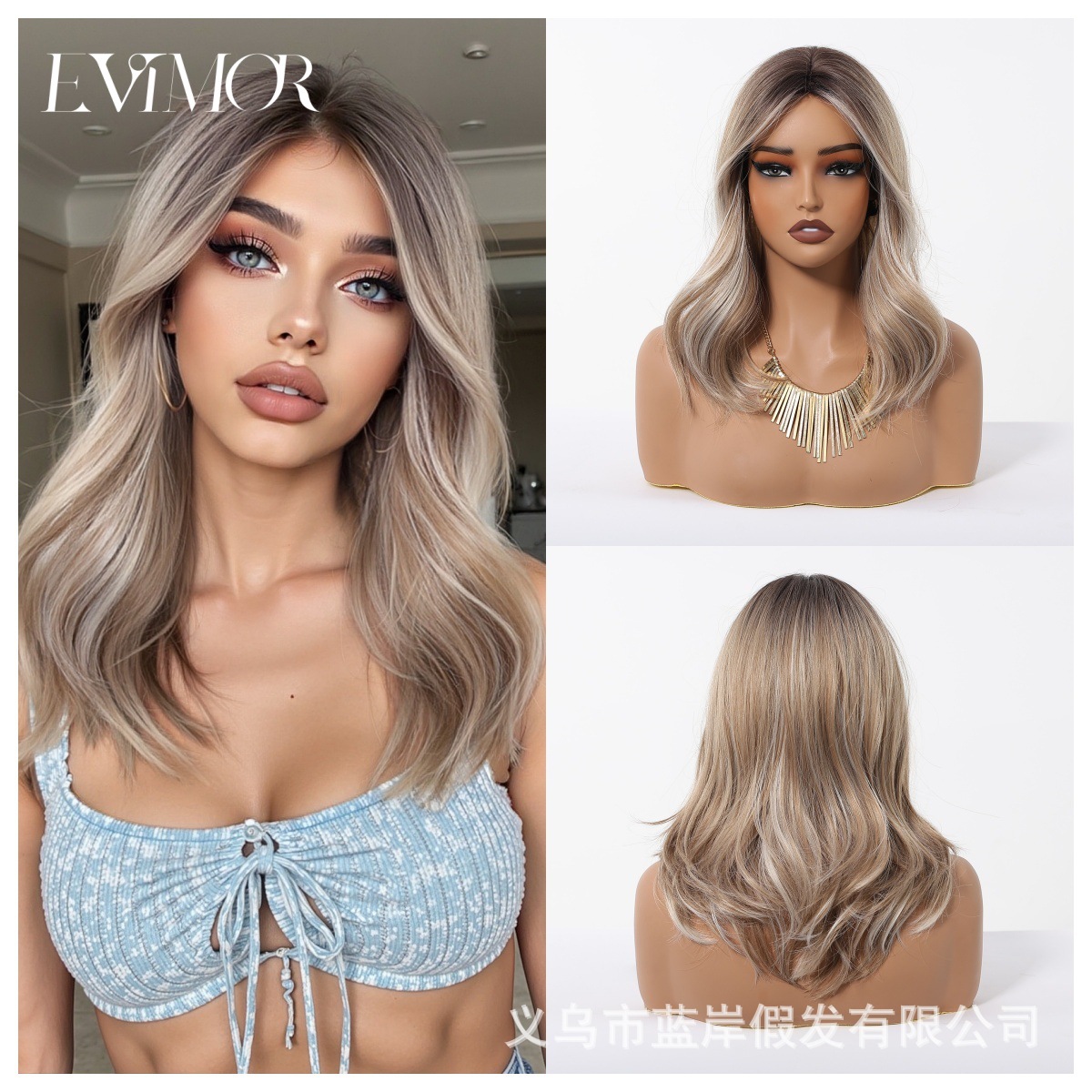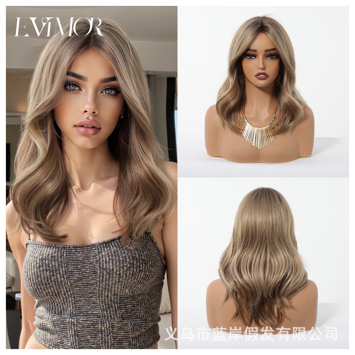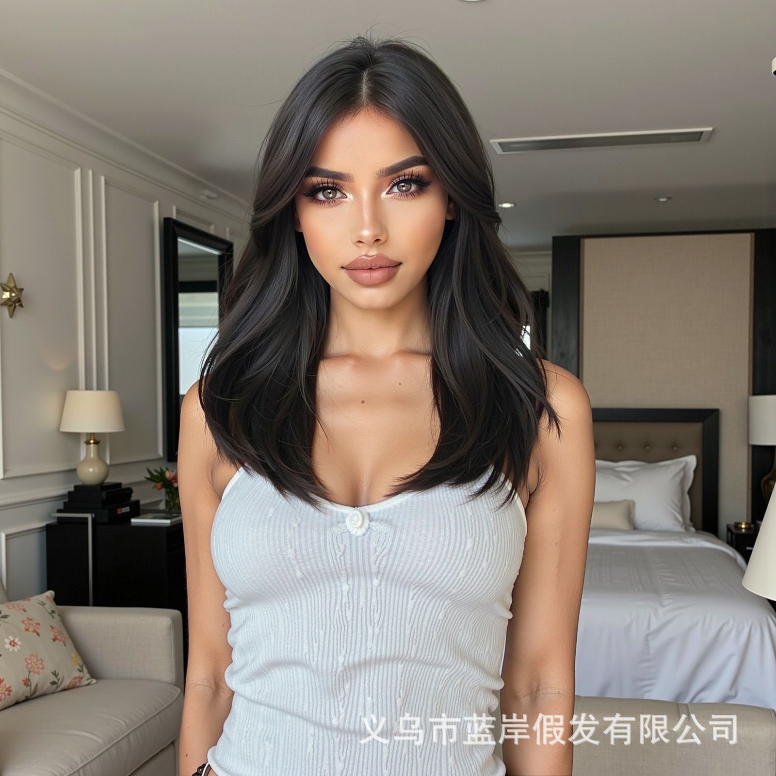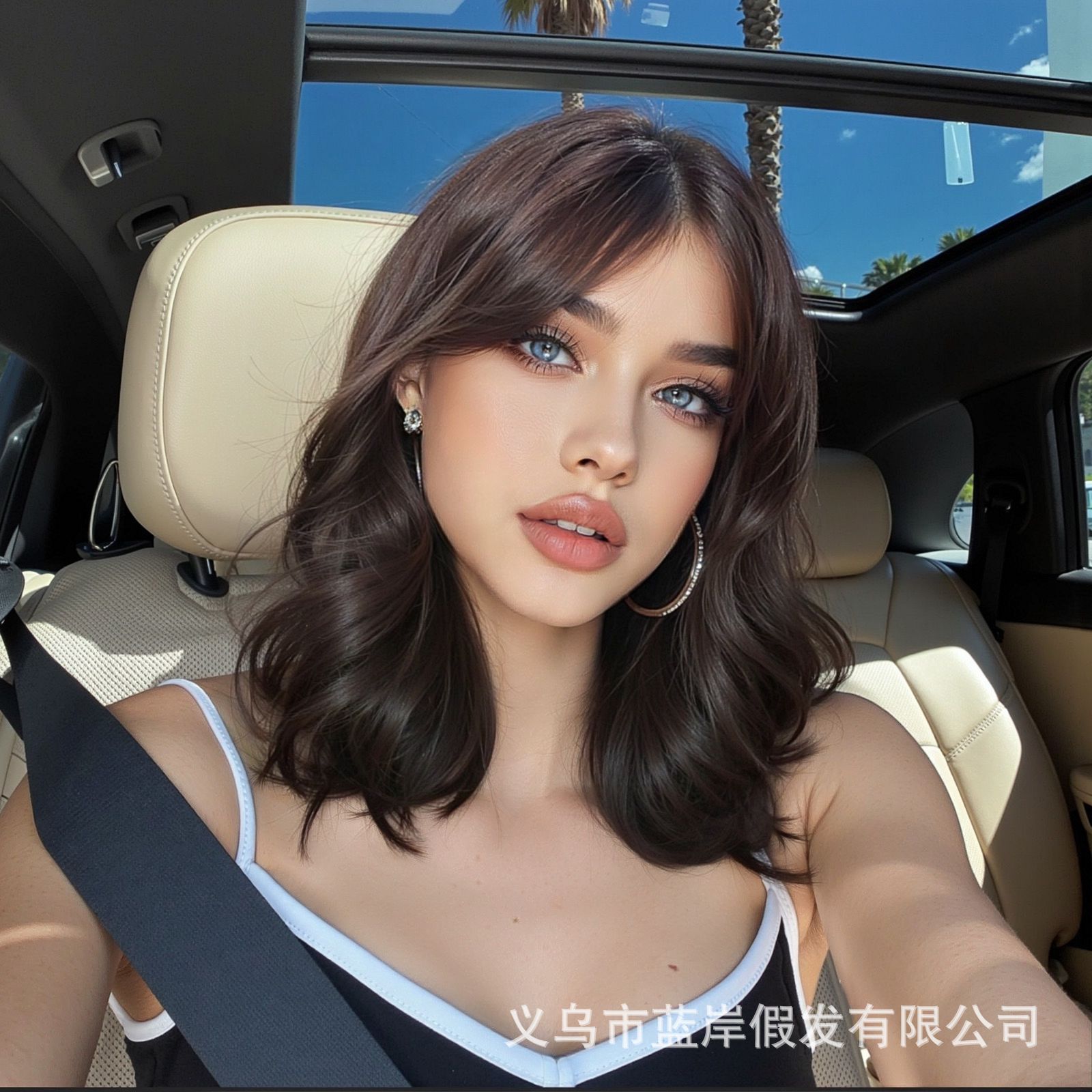 Moda europea y americana de ocho frases curvas corta fibra química peluca natural negro marrón caballo de Troya peluca de caballo