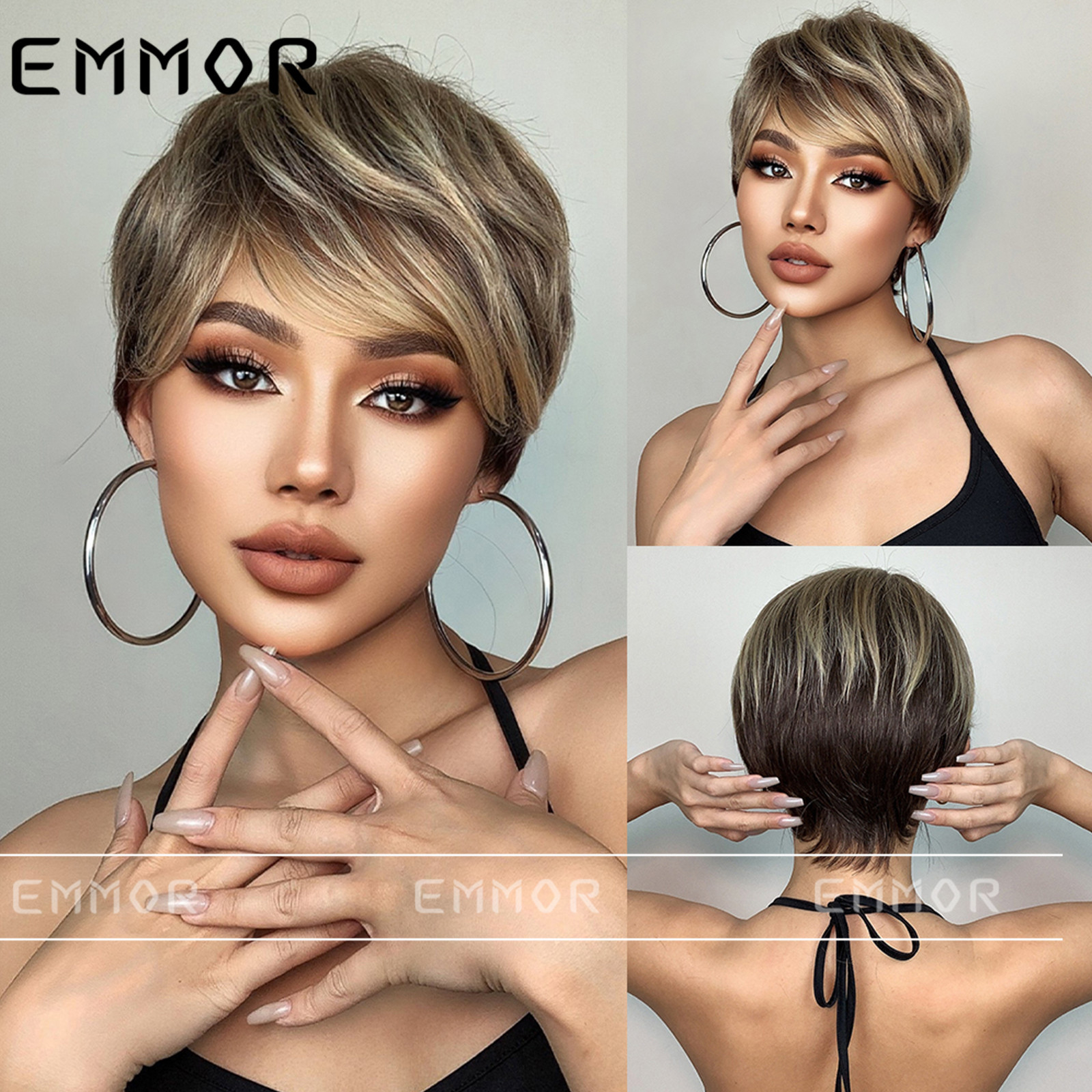 2023 nueva moda caliente verano pelo corto estilo europeo y americano peluca natural pelo corto de las mujeres Peluca de cabeza completa reductora de edad