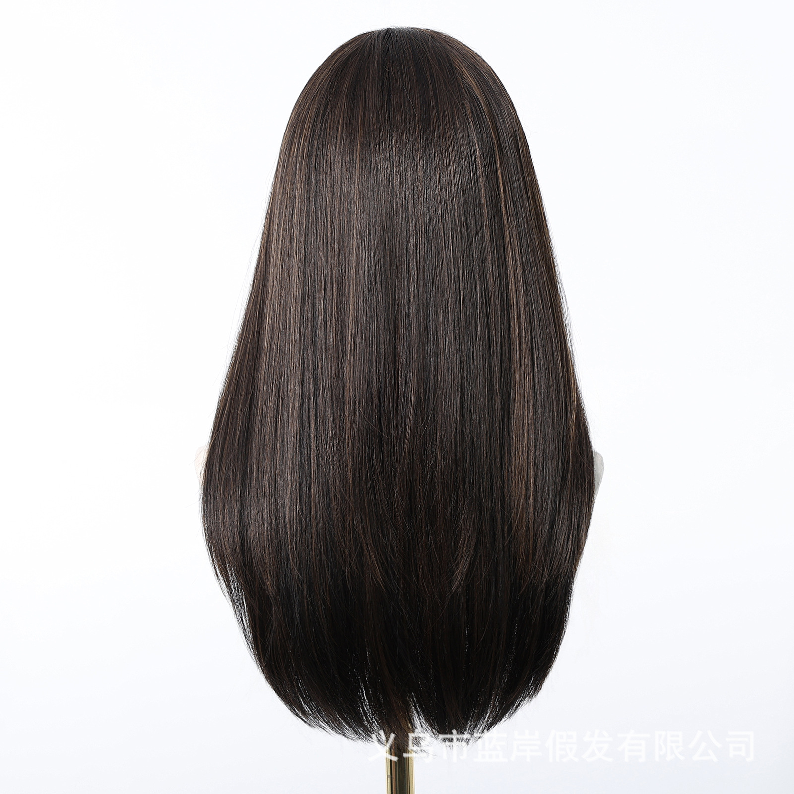Europa y América Qi flequillo capa de fibra química cubierta de cabello oro blanco Barbie viento largo cabello liso peluca mujer cubierta completa wigs
