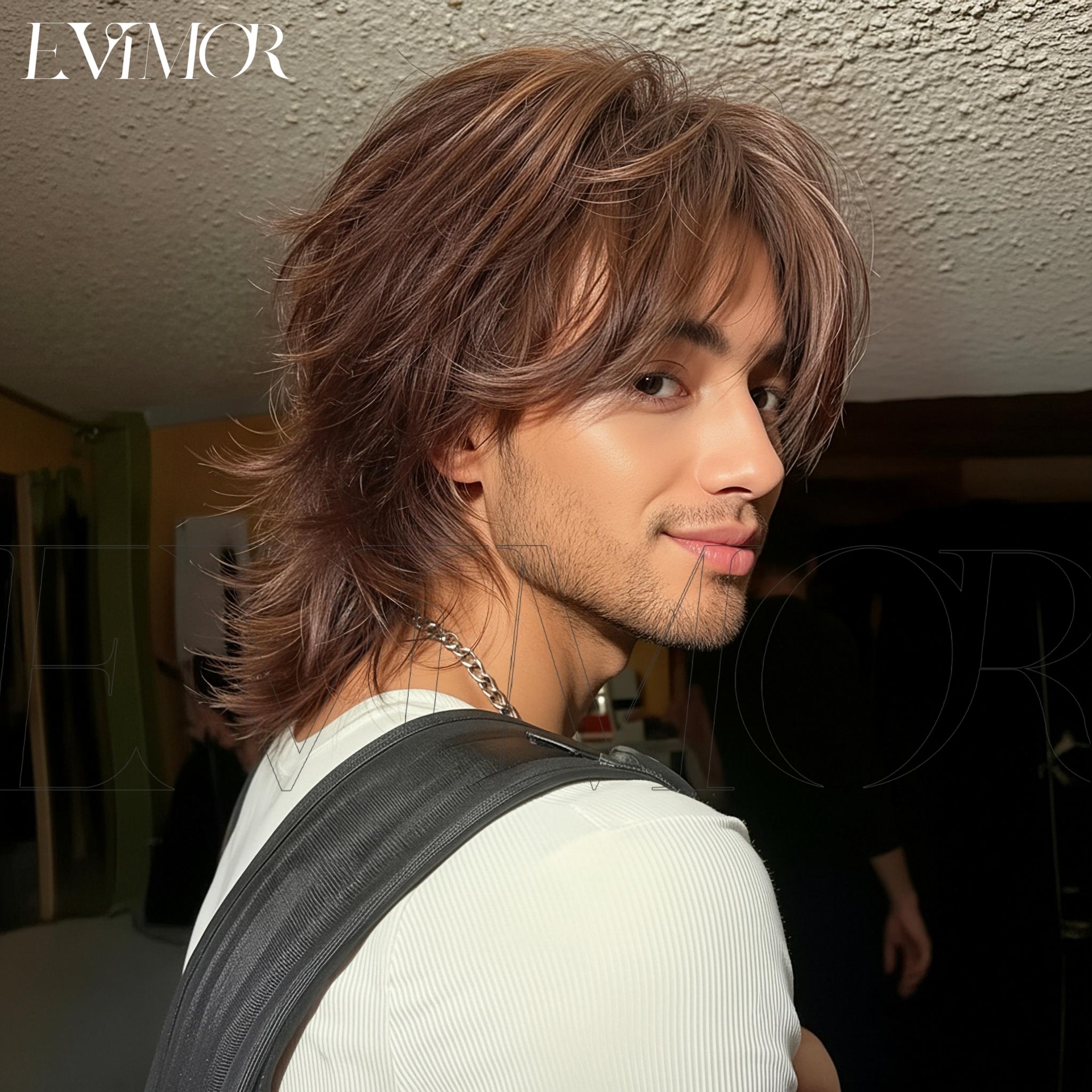 Hombres y mujeres parejas de alto nivel de cabello de cola de lobo toda la cabeza de tendencia europea y americana neutra corta cabeza de pez fibra química wigs