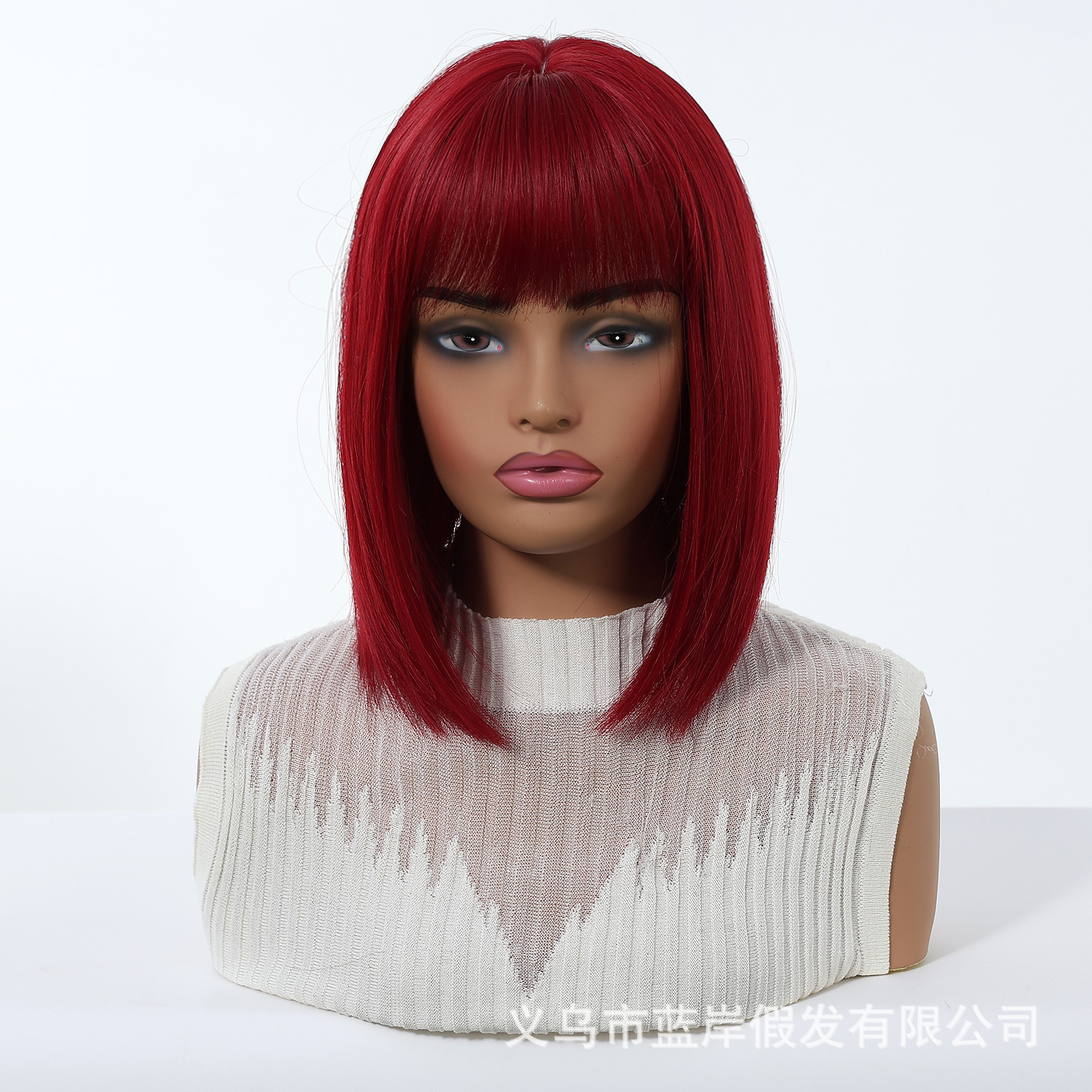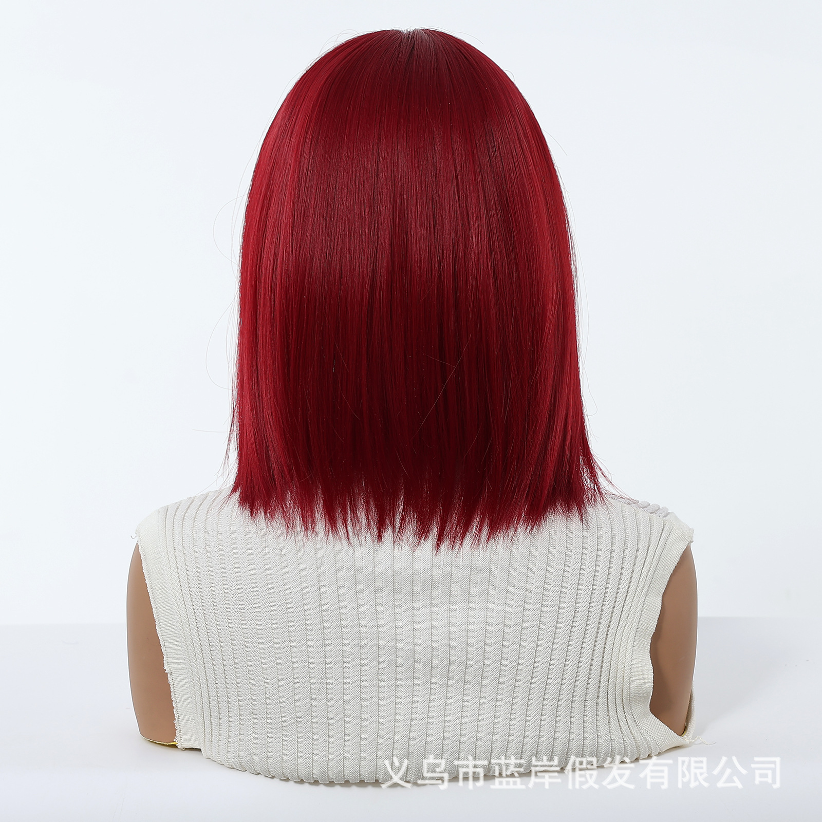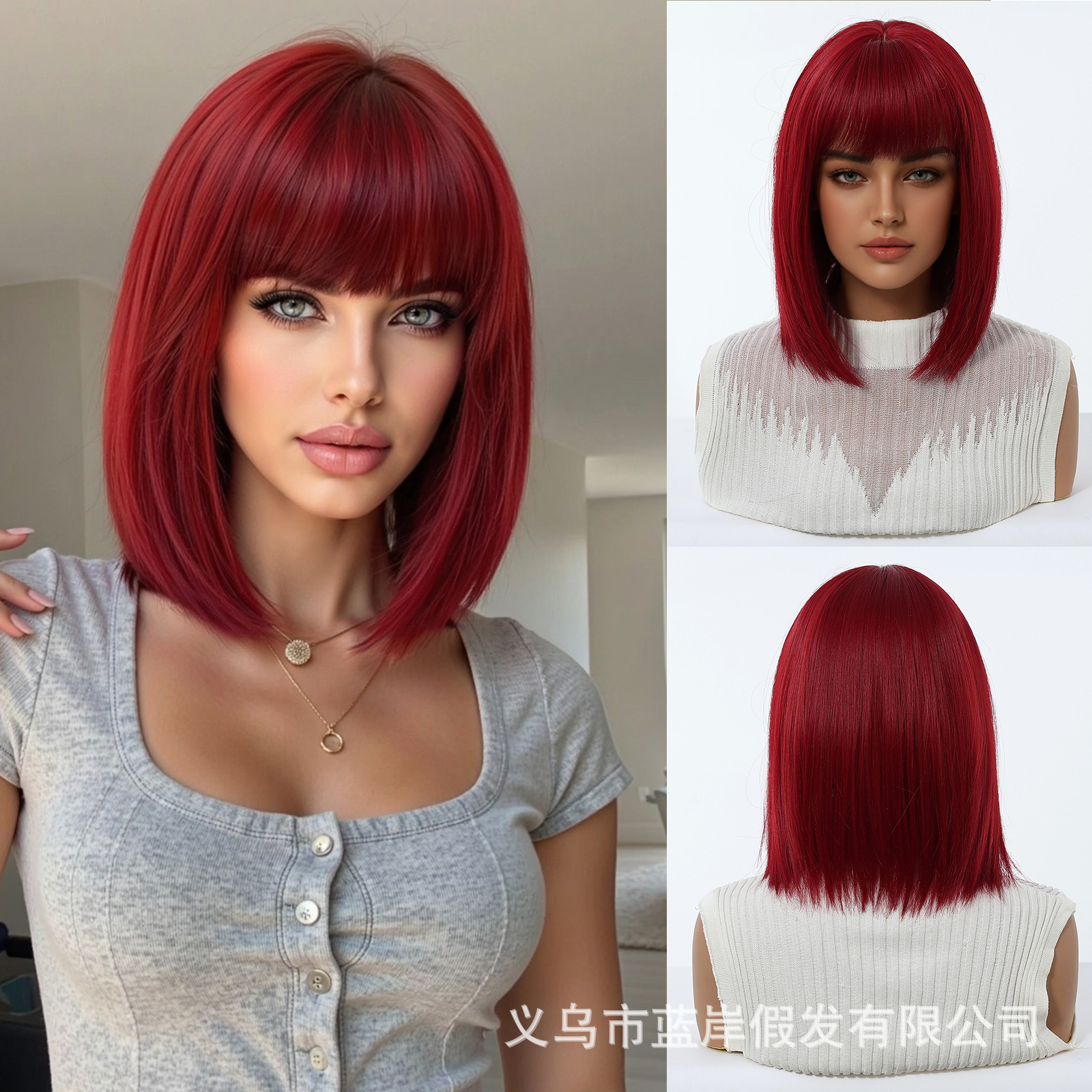 Nueva peluca europea y americana, cubierta de cabeza completa para mujer, red de verano, onda roja, cabeza de onda, clavícula corta, cabello liso, cabello de fibra química, wigs