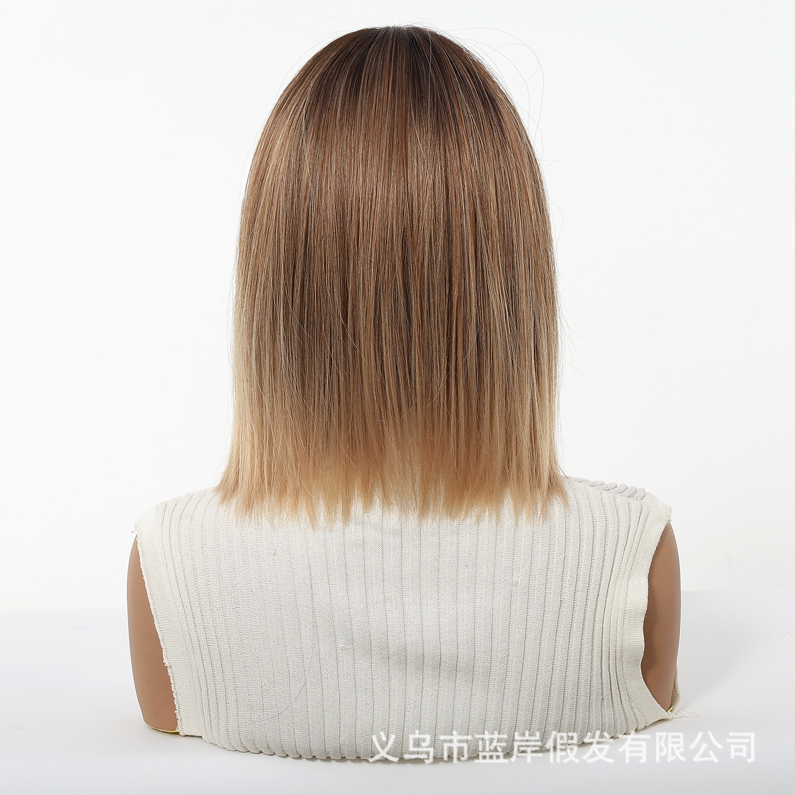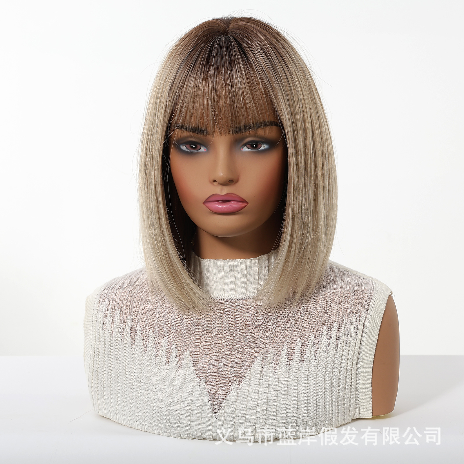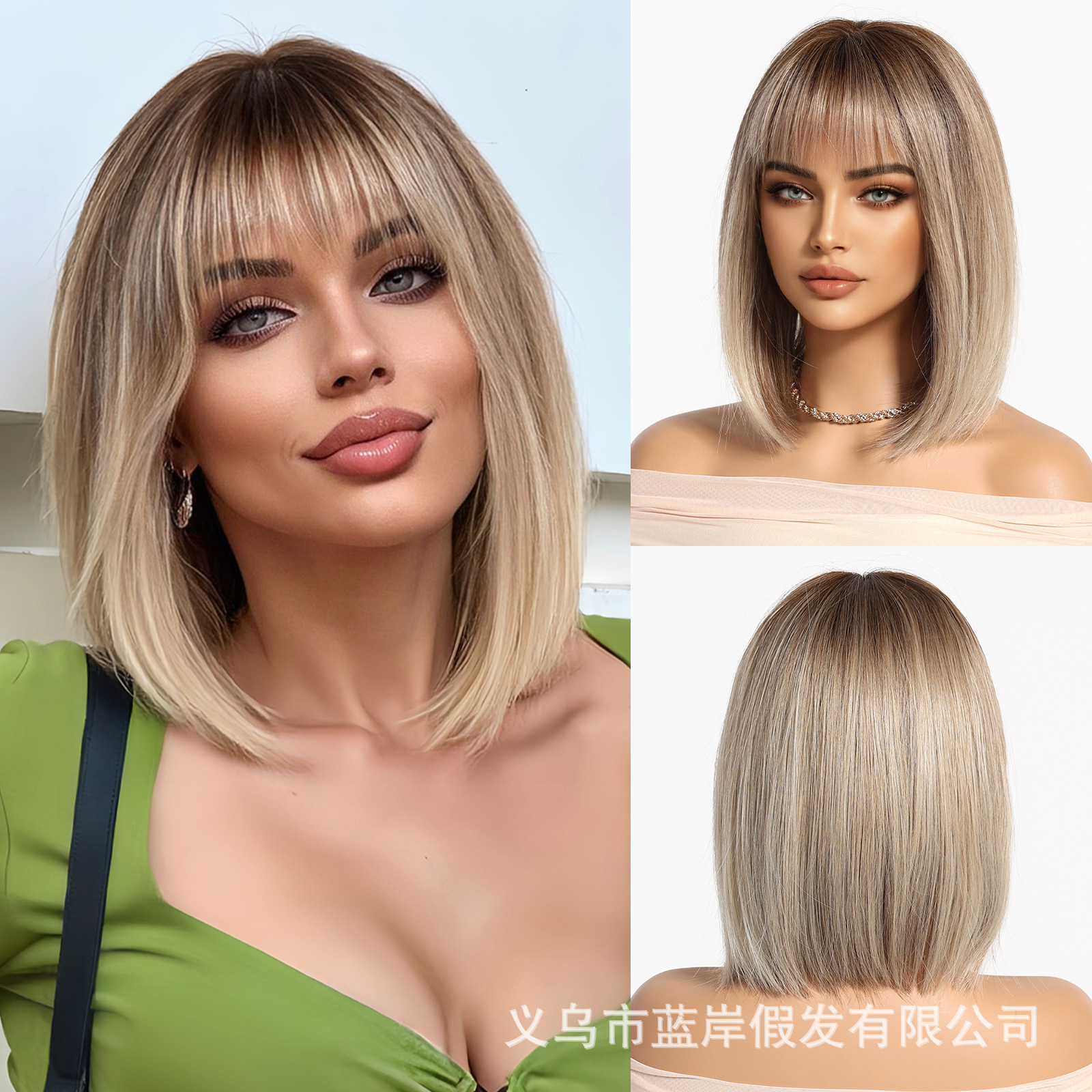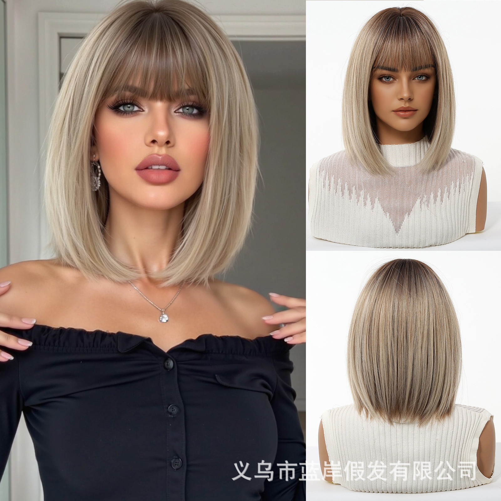 Nueva peluca europea y americana, cubierta de cabeza completa para mujer, red de verano, onda roja, cabeza de onda, clavícula corta, cabello liso, cabello de fibra química, wigs