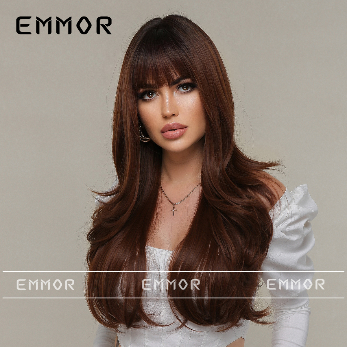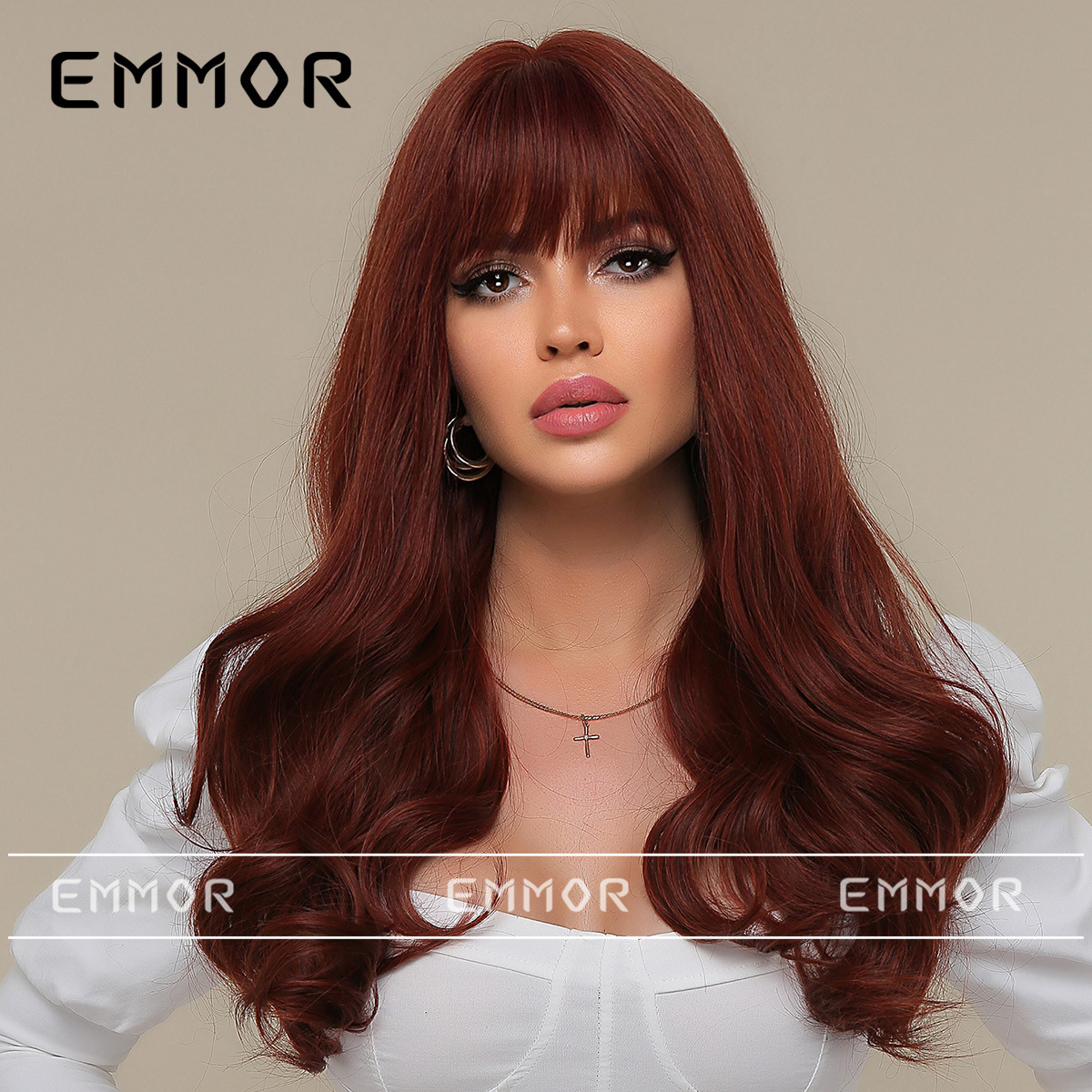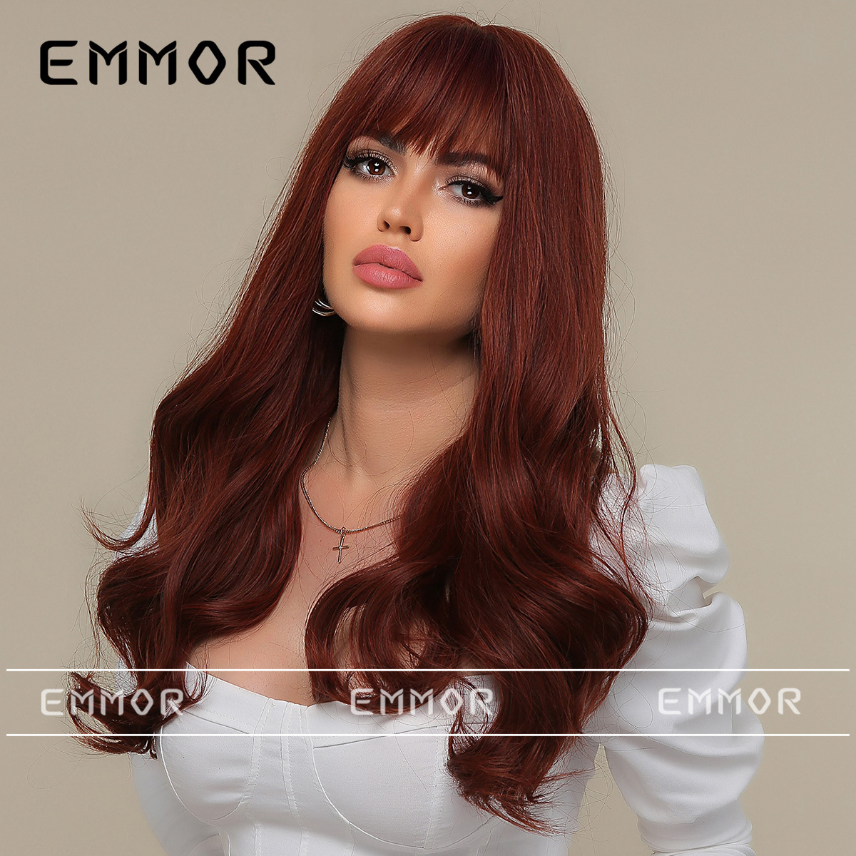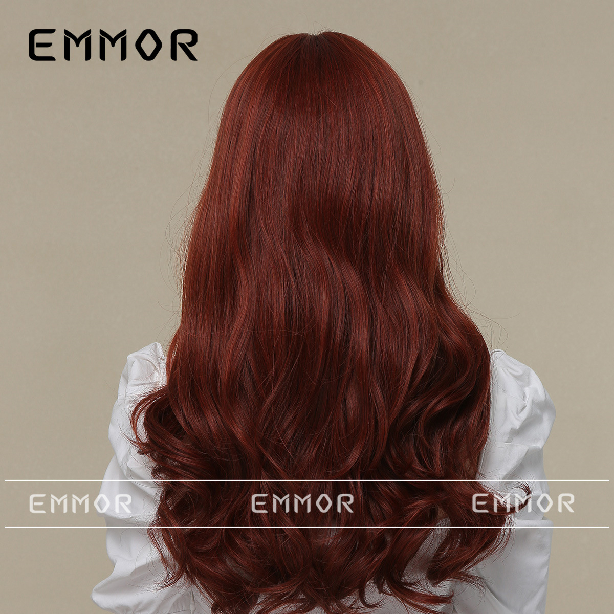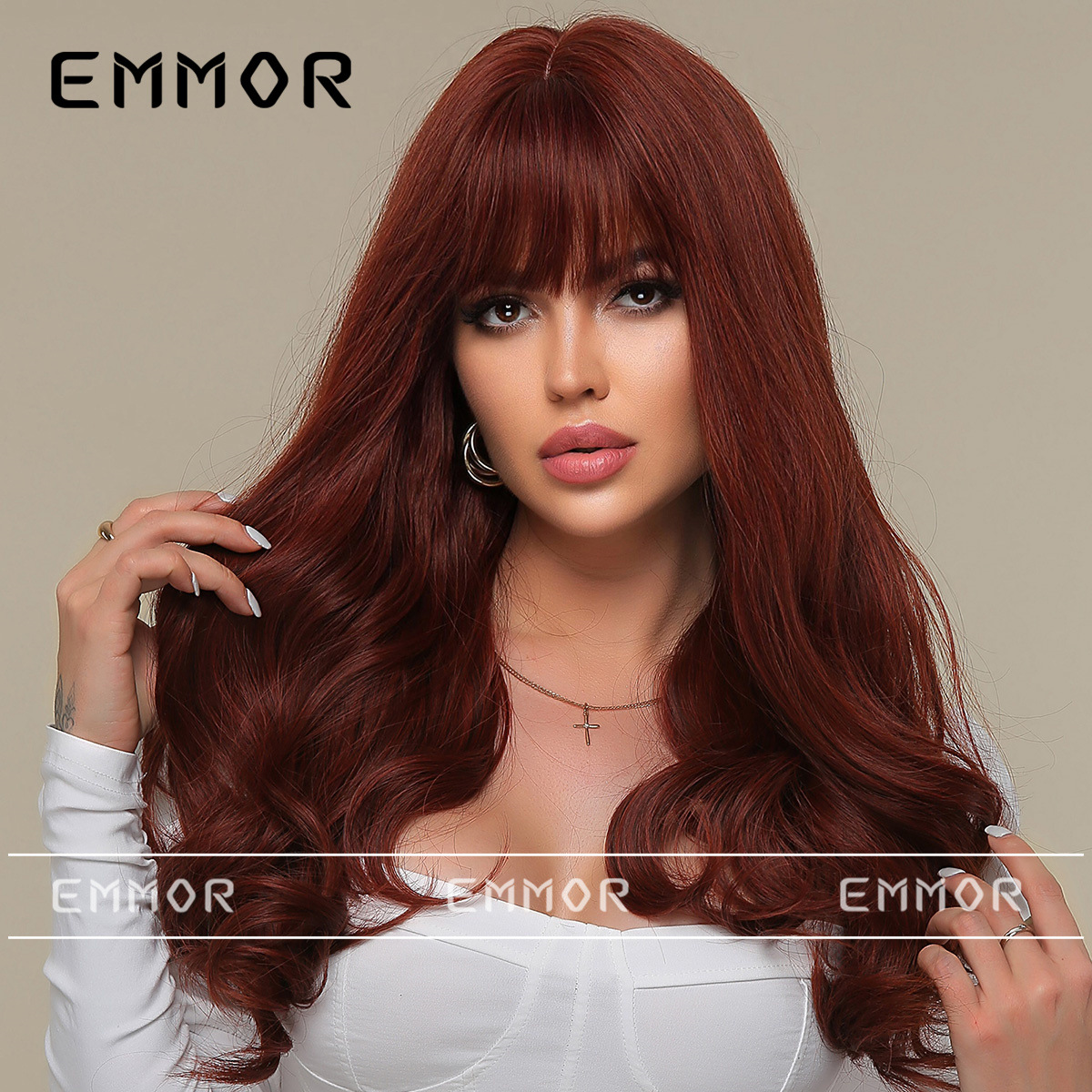 Nueva llegada europeo y americano Comercio exterior transfronterizo peluca femenina flequillo recto rojo marrón largo pelo rizado completo cabeza cubierta peluca