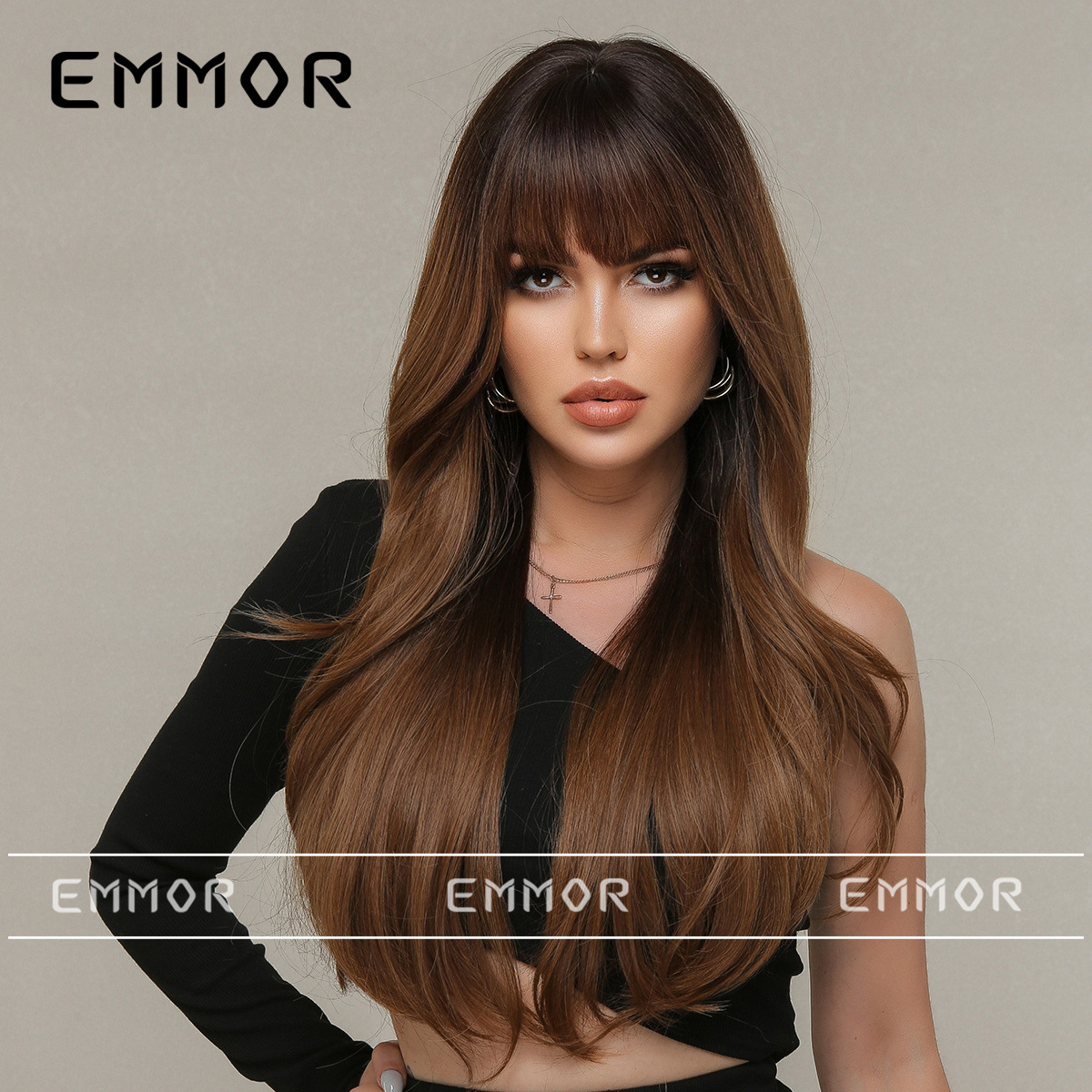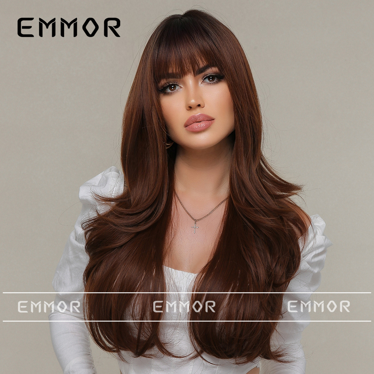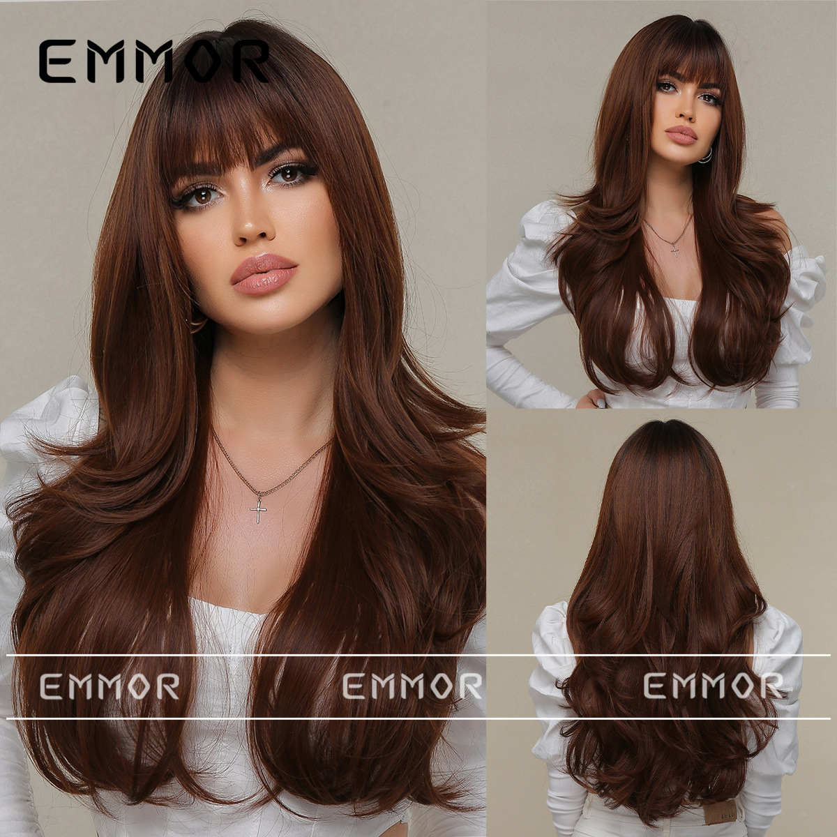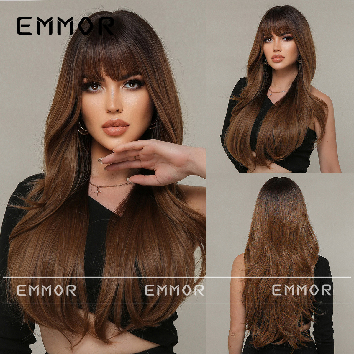 Nueva llegada europeo y americano Comercio exterior transfronterizo peluca femenina flequillo recto rojo marrón largo pelo rizado completo cabeza cubierta peluca