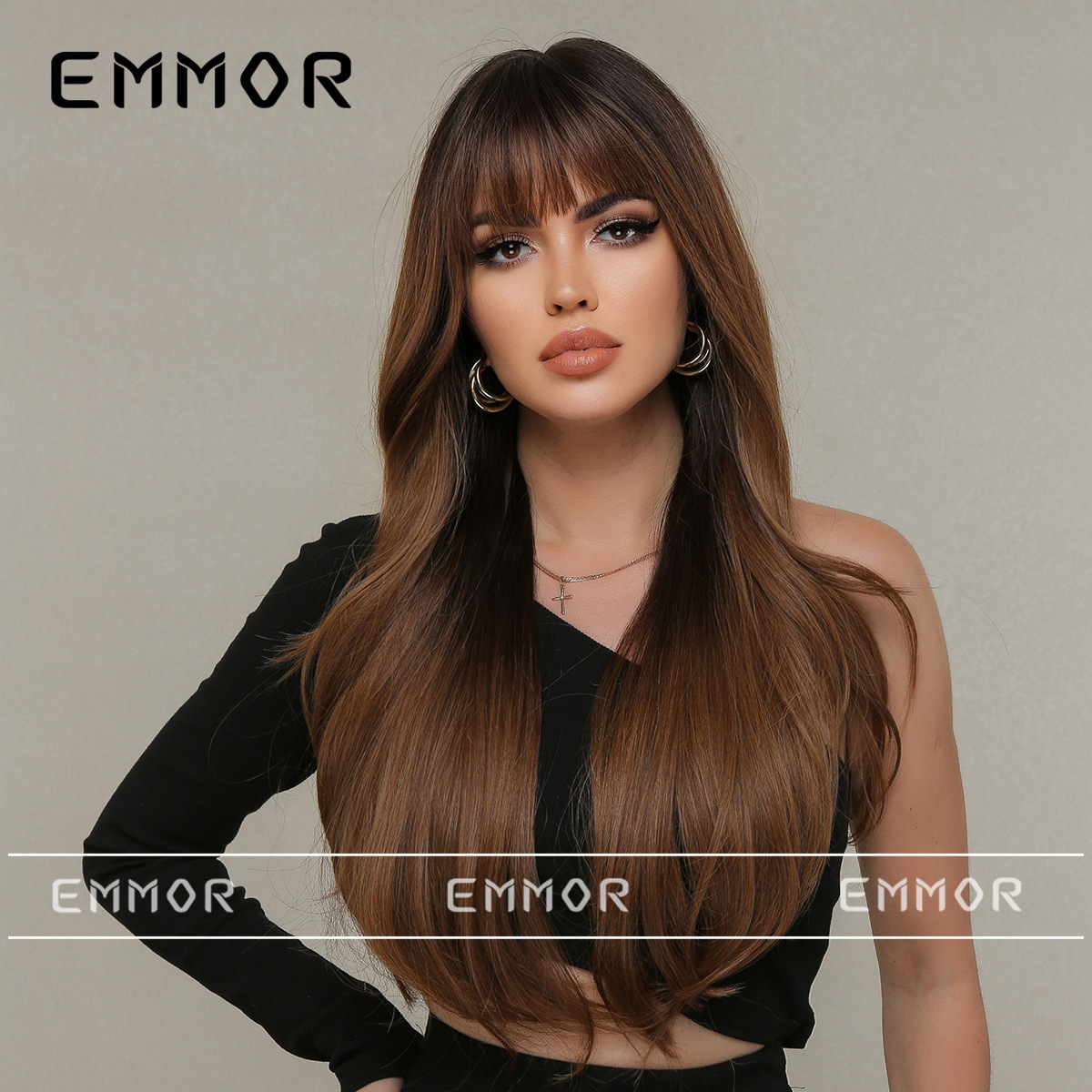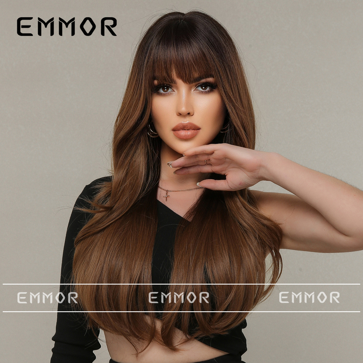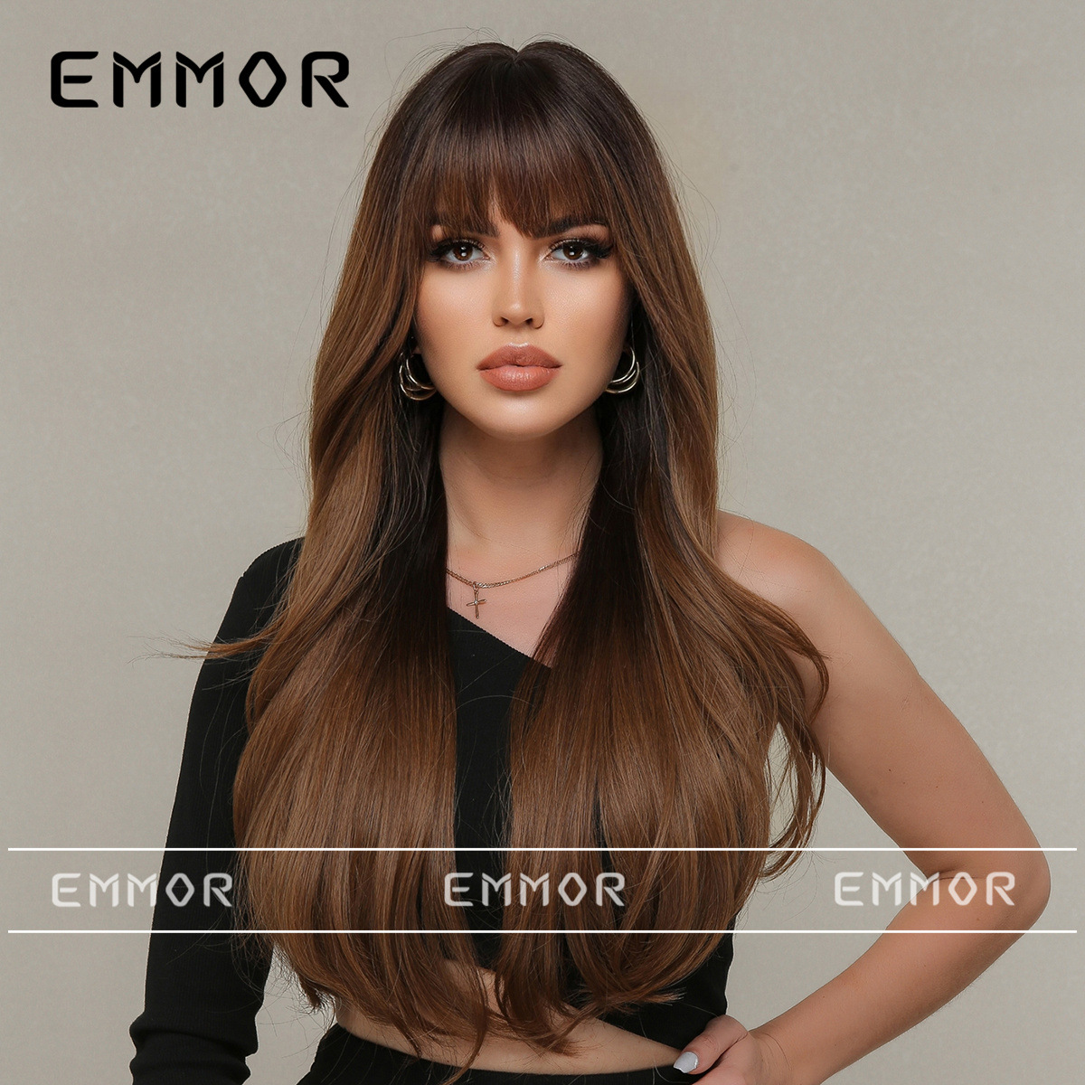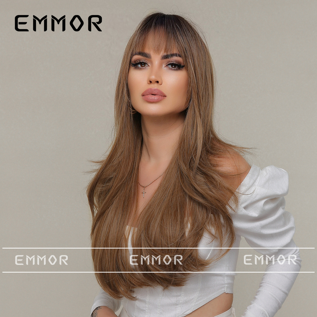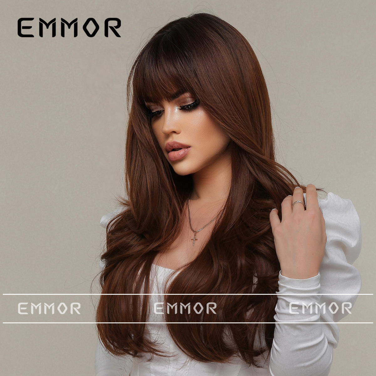 Nueva llegada europeo y americano Comercio exterior transfronterizo peluca femenina flequillo recto rojo marrón largo pelo rizado completo cabeza cubierta peluca
