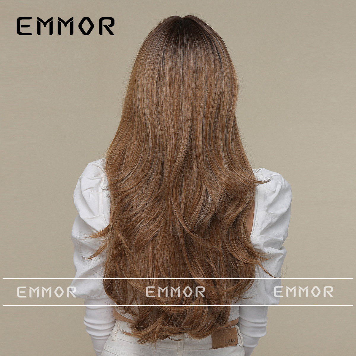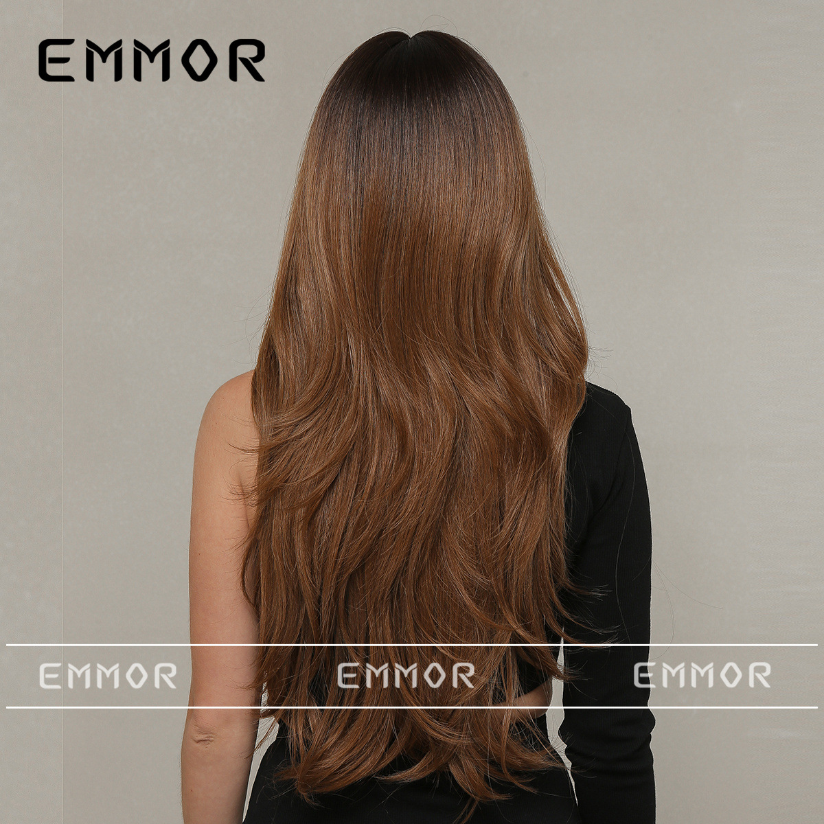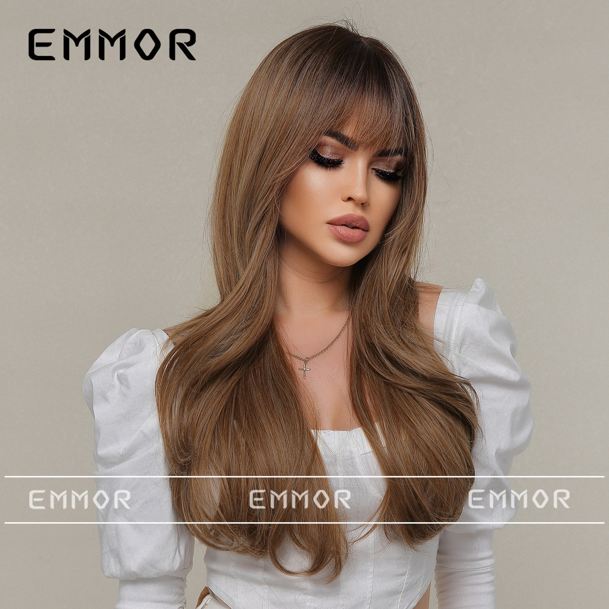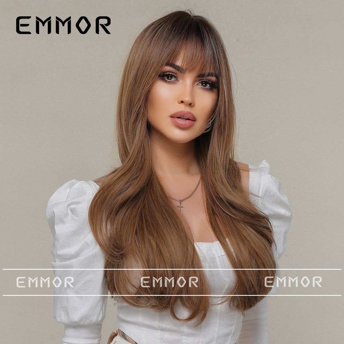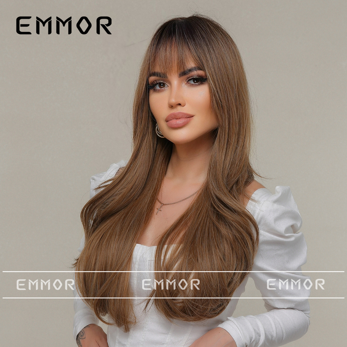 Nueva llegada europeo y americano Comercio exterior transfronterizo peluca femenina flequillo recto rojo marrón largo pelo rizado completo cabeza cubierta peluca