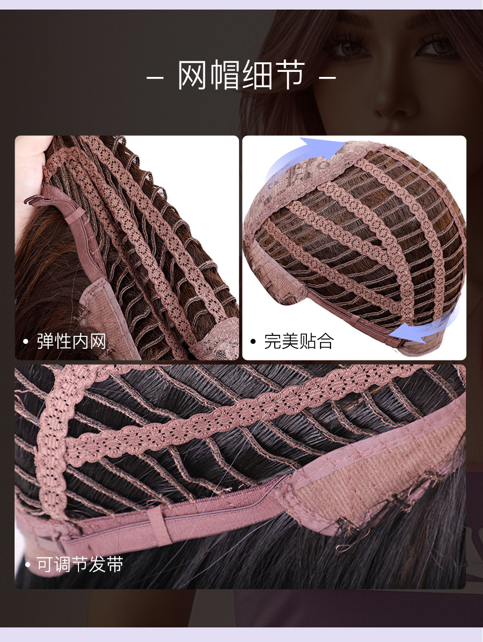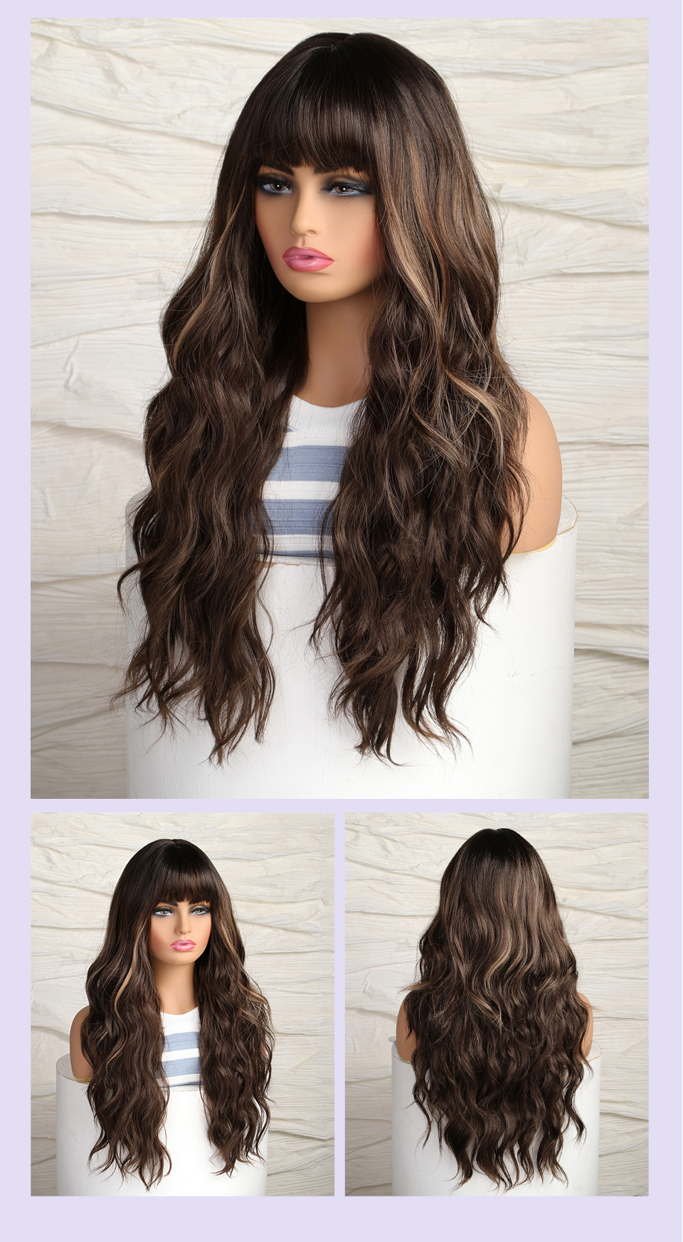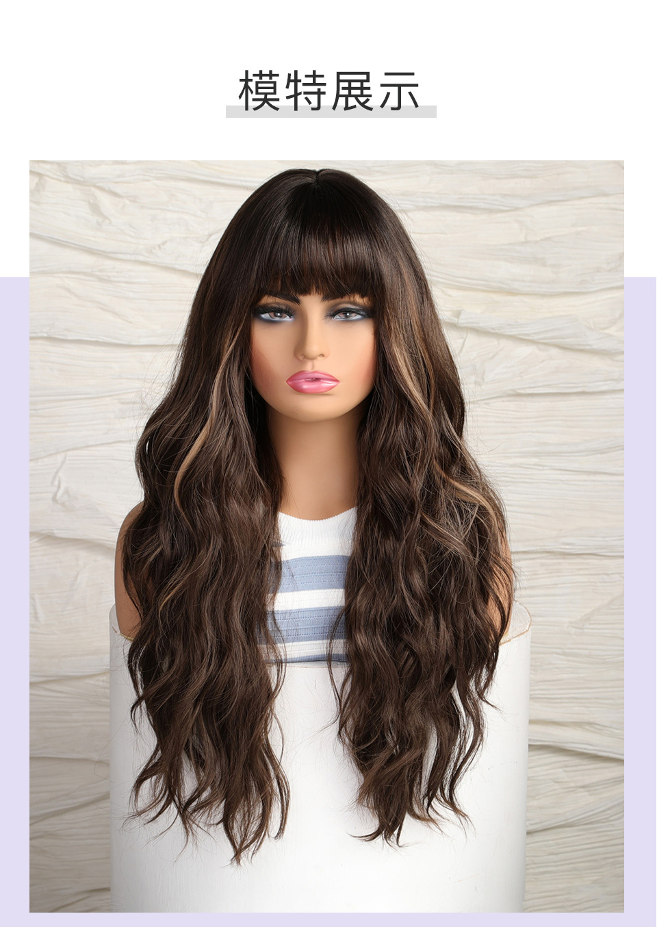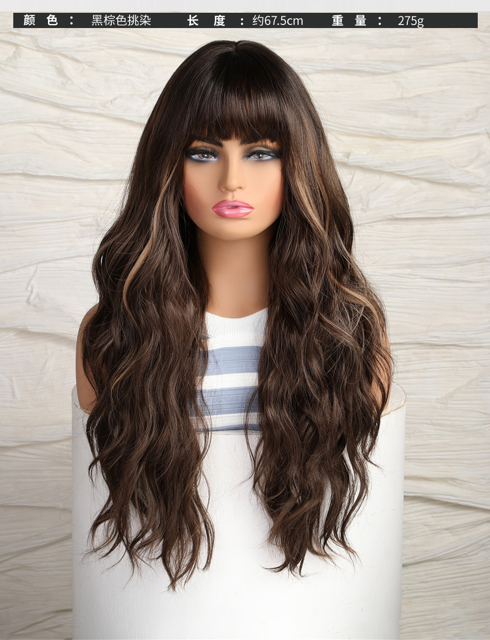 2024 nuevo comercio exterior resalte marrón recto Bangs onda grande Pelo Rizado largo europeo y americano peluca pelo completo tipo de pelo