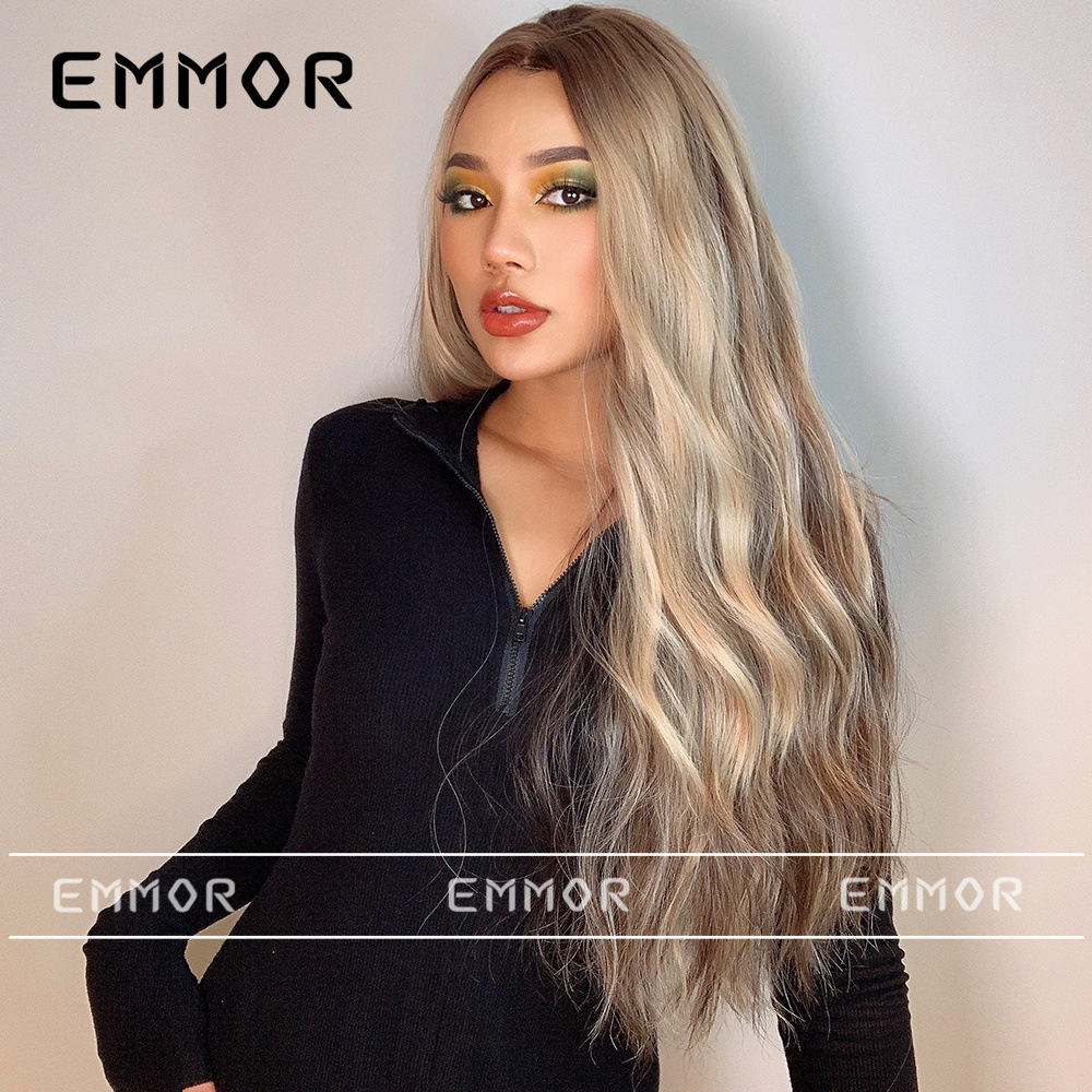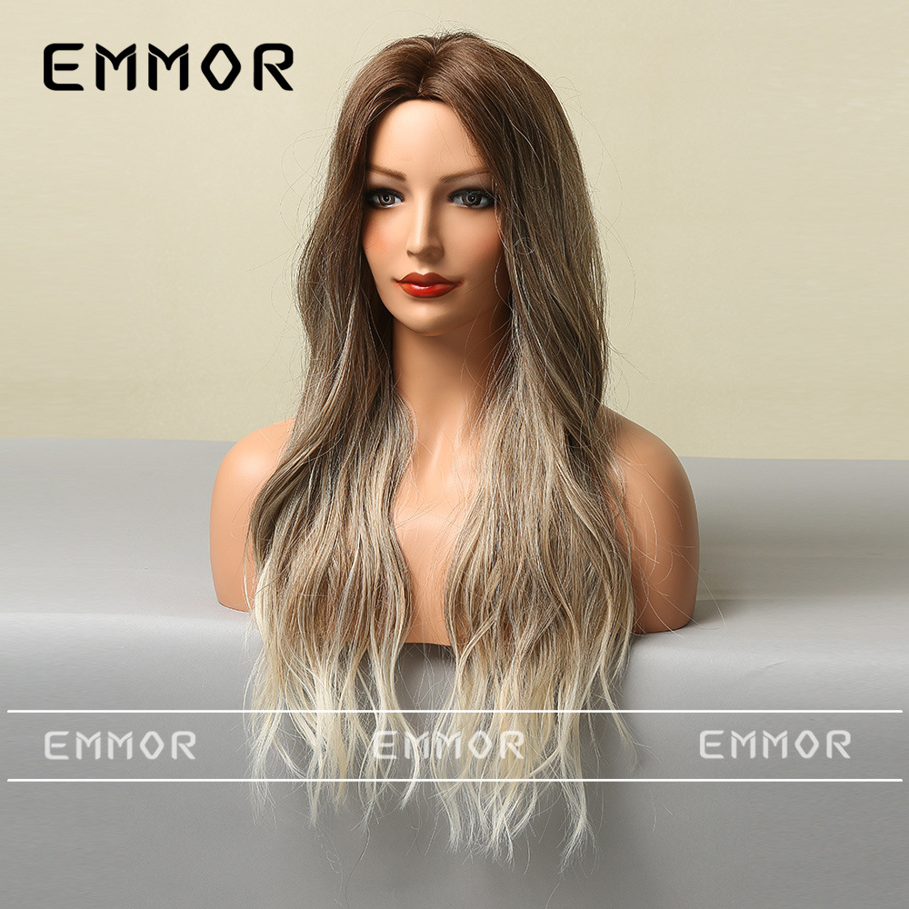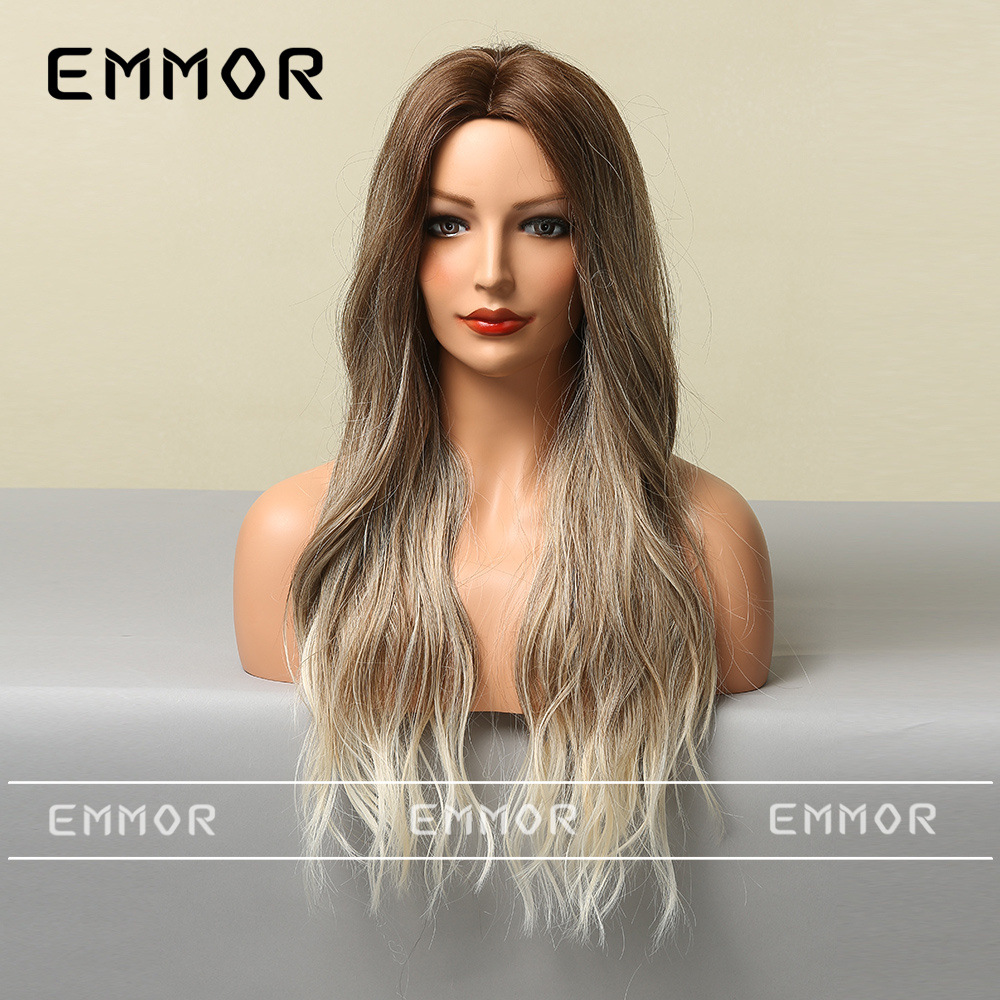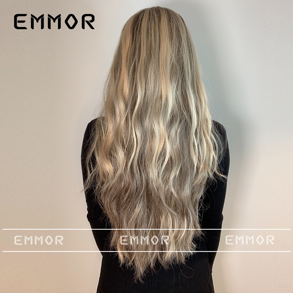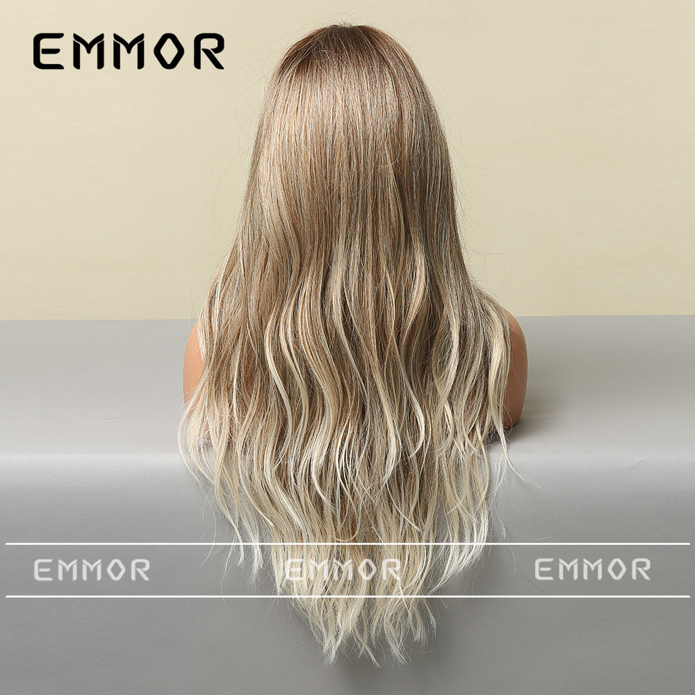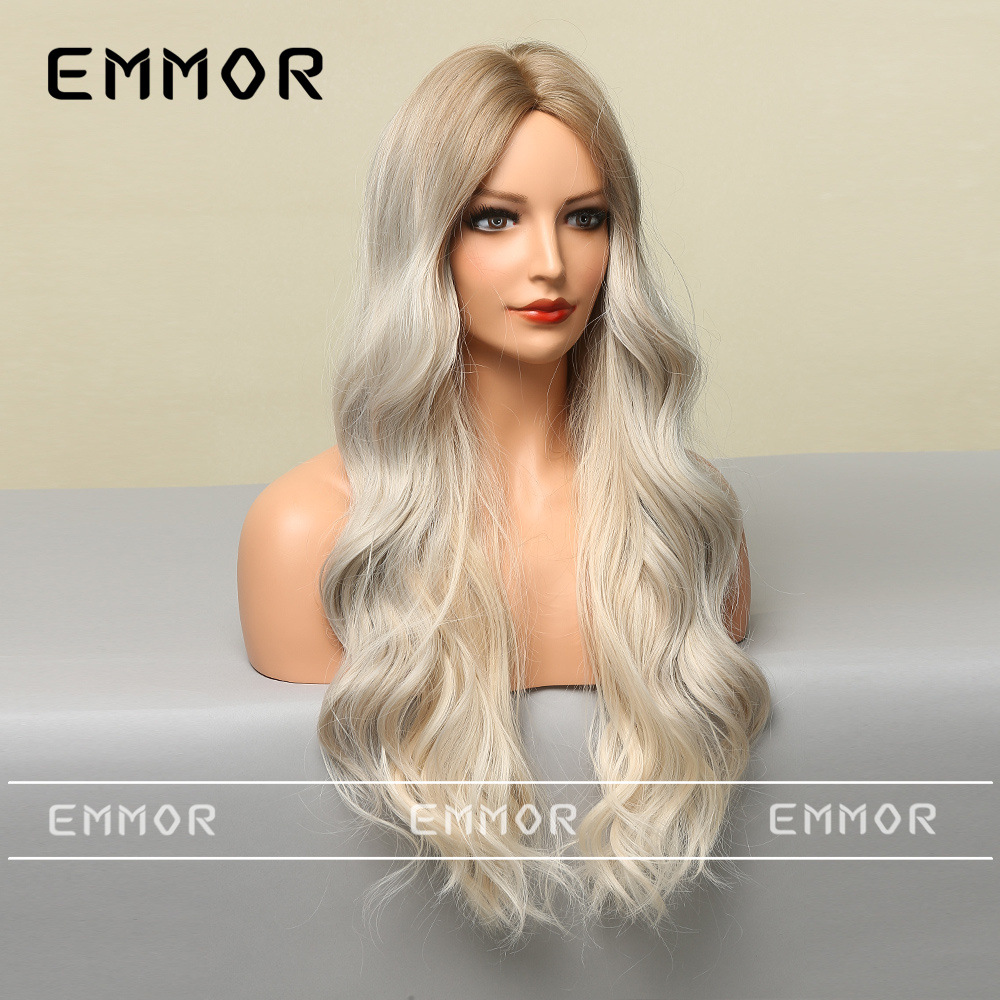 Peluca europea y americana de las mujeres Mediados de longitud larga Pelo Rizado cubierta completa cabeza de seda de alta temperatura luz y suave multicolor peluca natural cubierta completa de la cabeza