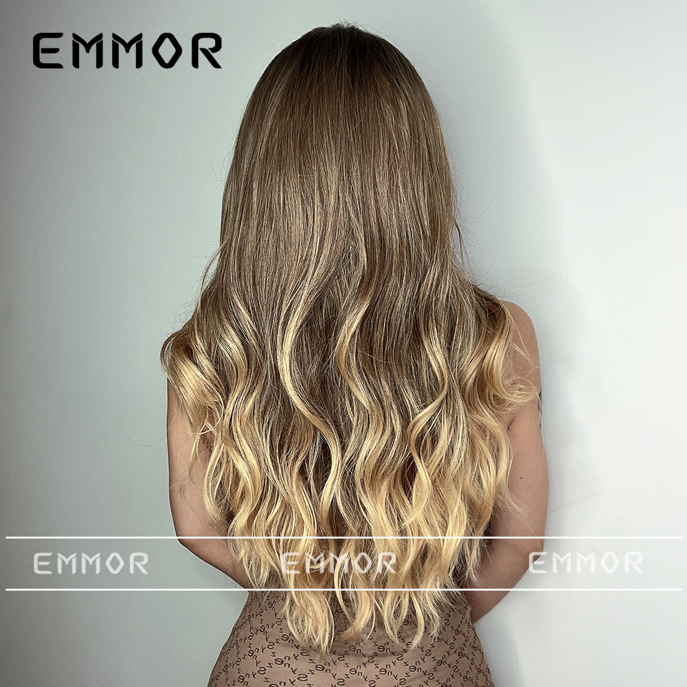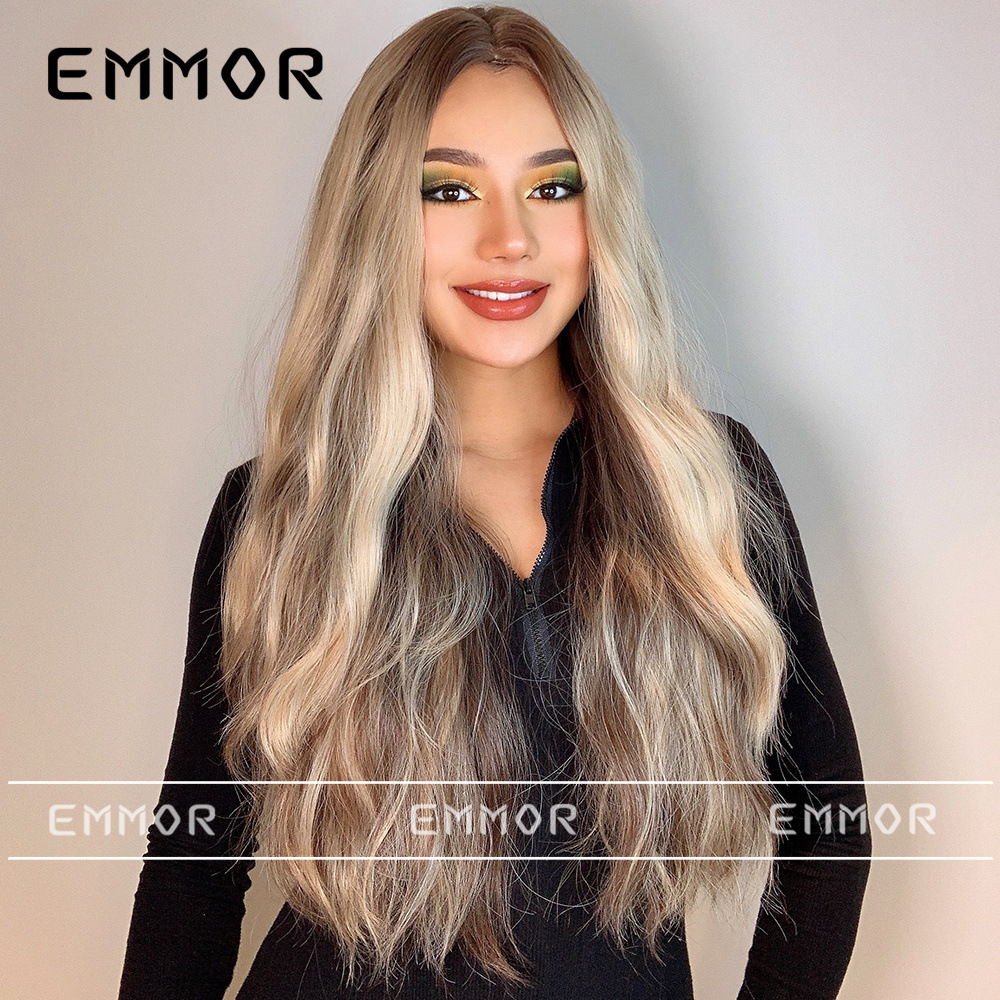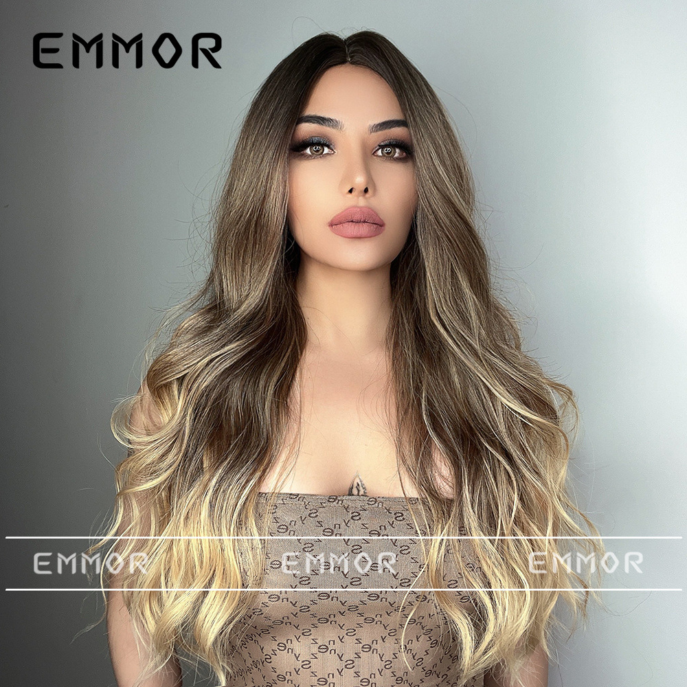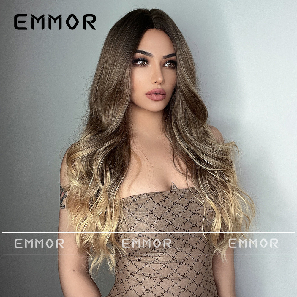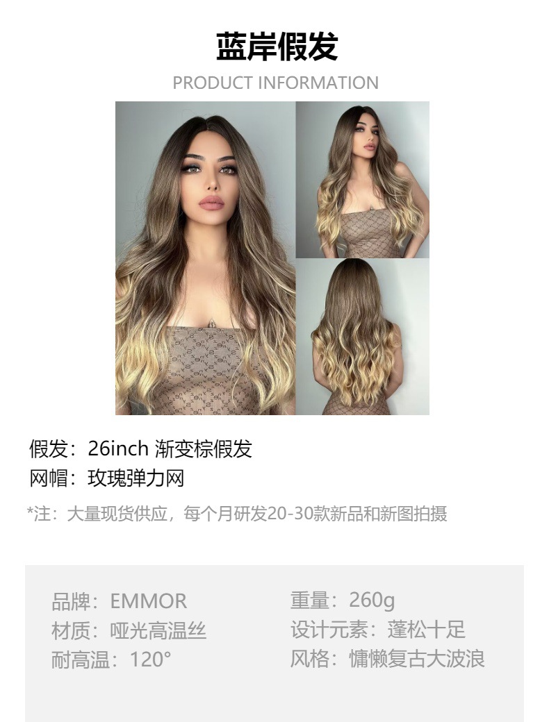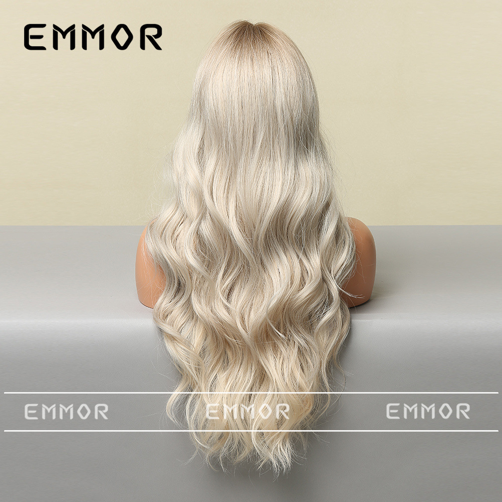 Peluca europea y americana de las mujeres Mediados de longitud larga Pelo Rizado cubierta completa cabeza de seda de alta temperatura luz y suave multicolor peluca natural cubierta completa de la cabeza