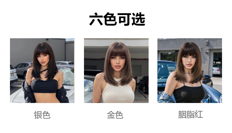 Peluca con casco completo, pelo liso corto, pelo de clavícula de alto nivel para mujer, verano nuevo estilo, color múltiple opcional, mate, seda de alta temperatura, wigs