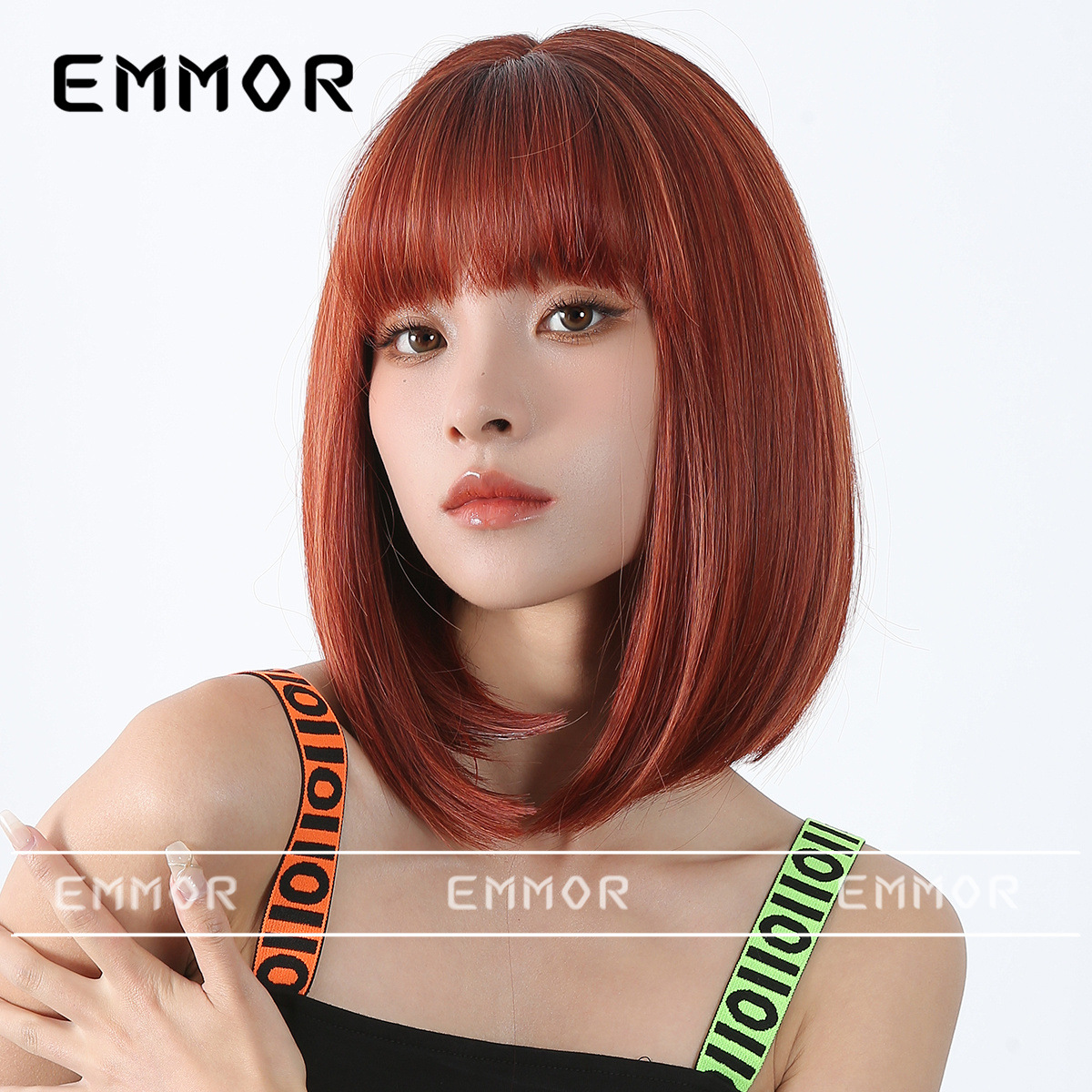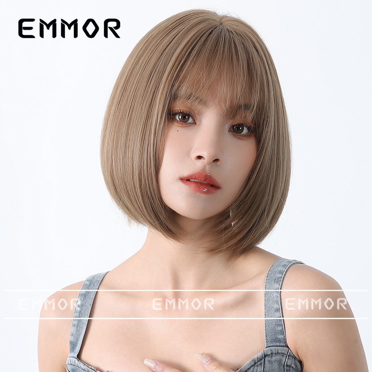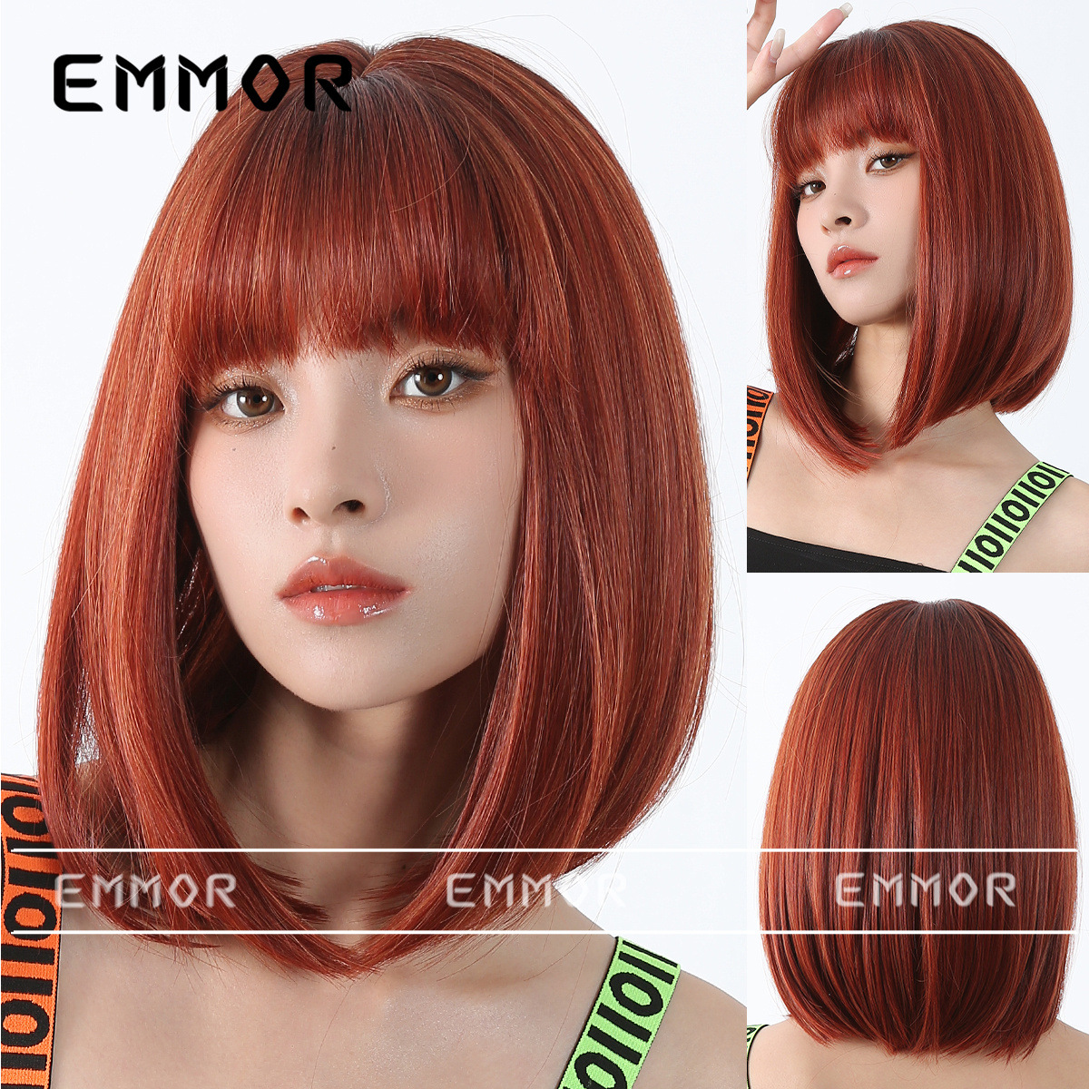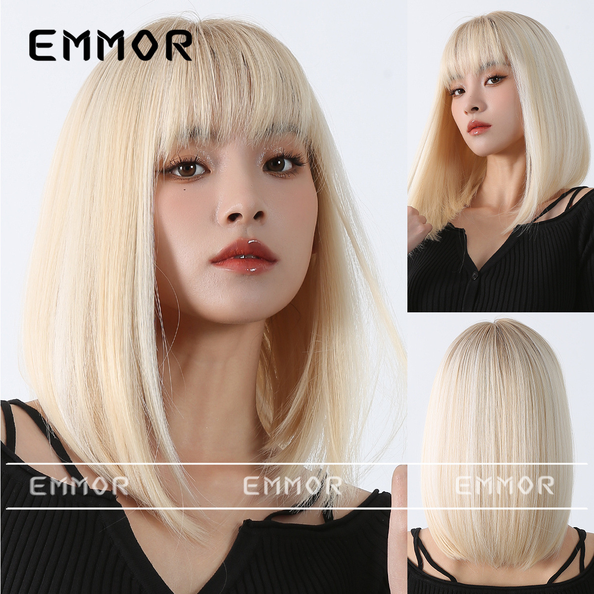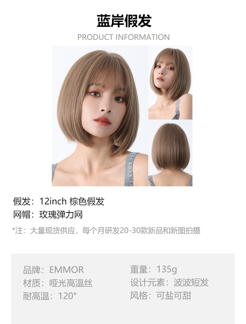 Peluca de color para mujer cabello corto verano Lolita Cabeza de onda diaria que reduce la edad Bangs recto mullido cubierta de cabeza completa natural