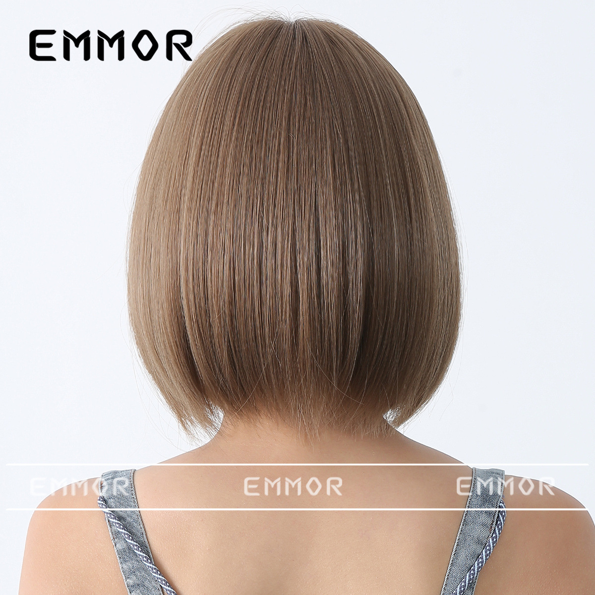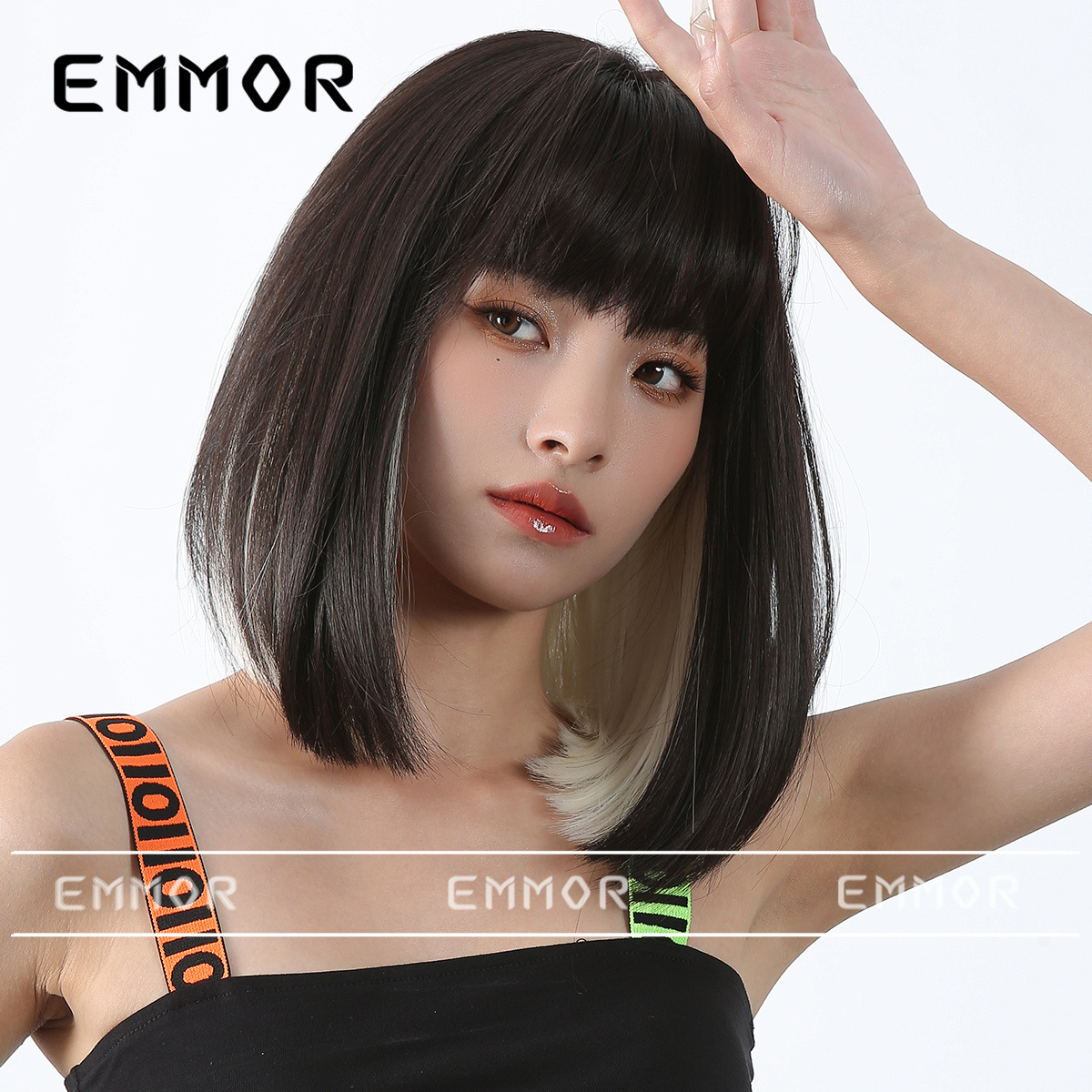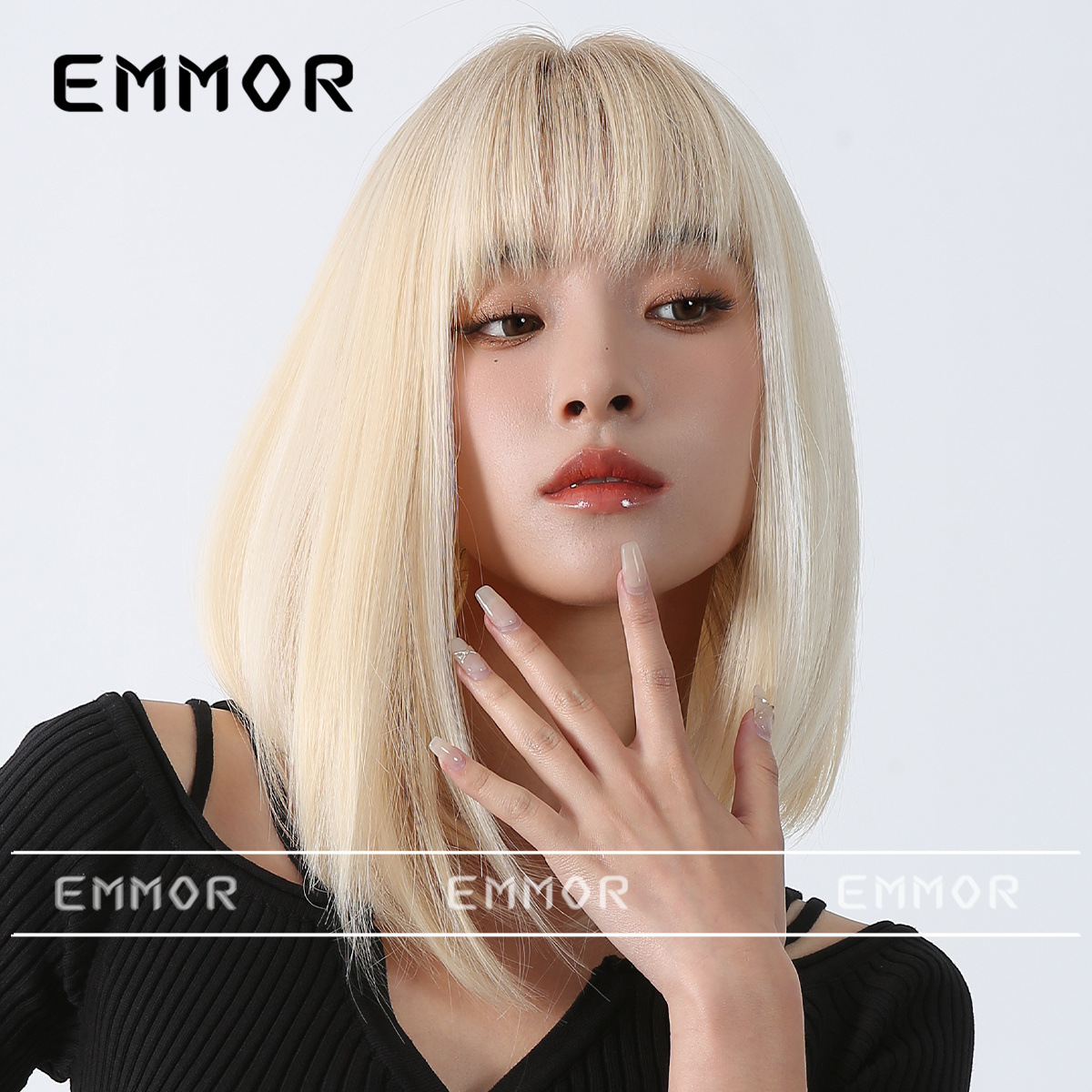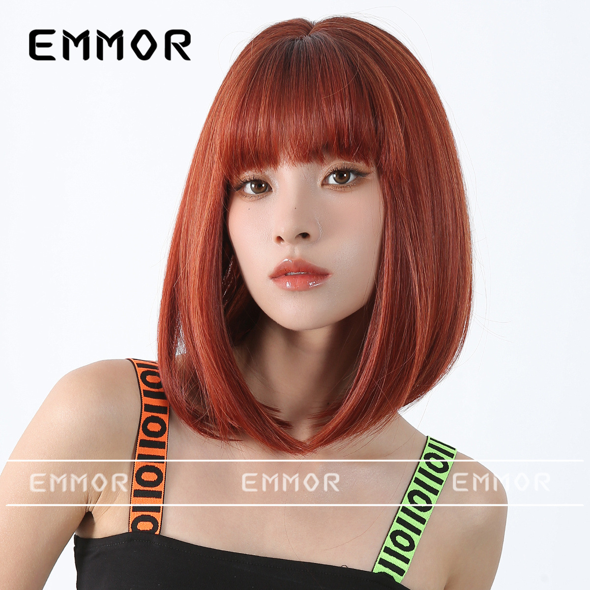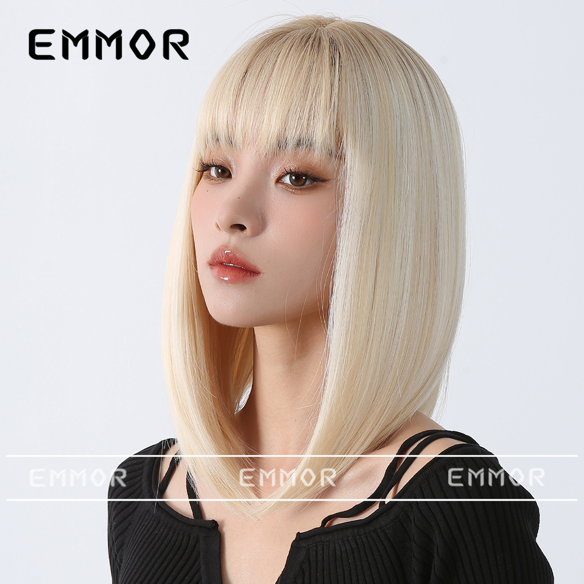 Peluca de color para mujer cabello corto verano Lolita Cabeza de onda diaria que reduce la edad Bangs recto mullido cubierta de cabeza completa natural