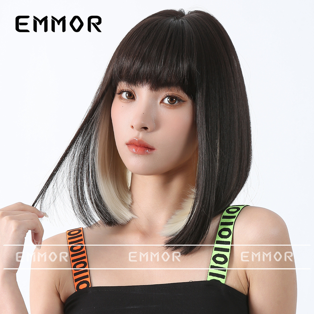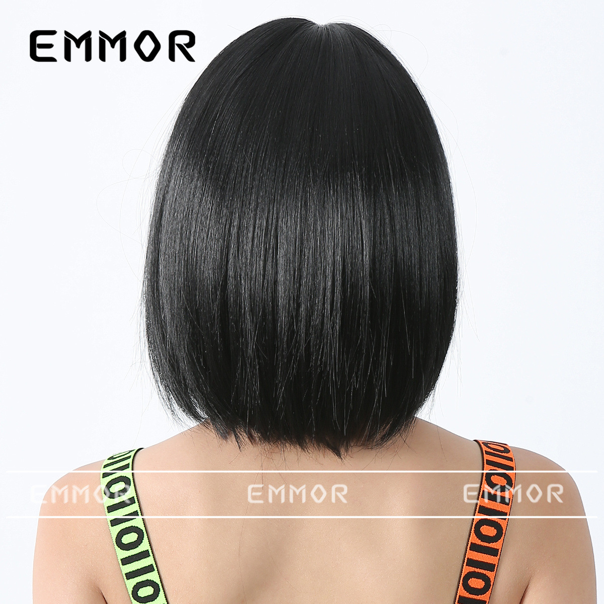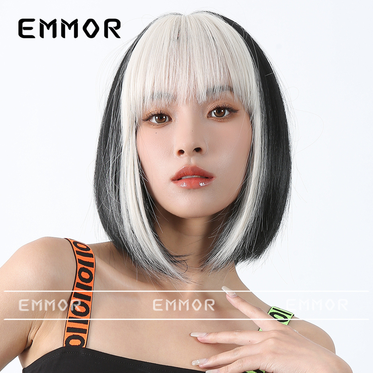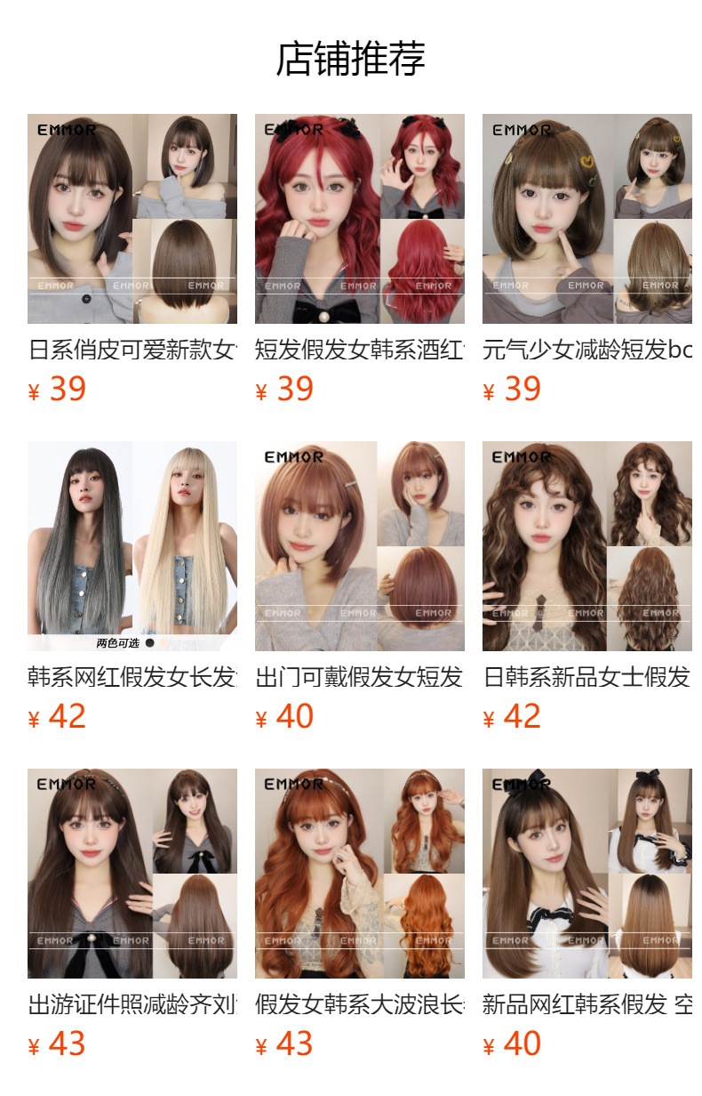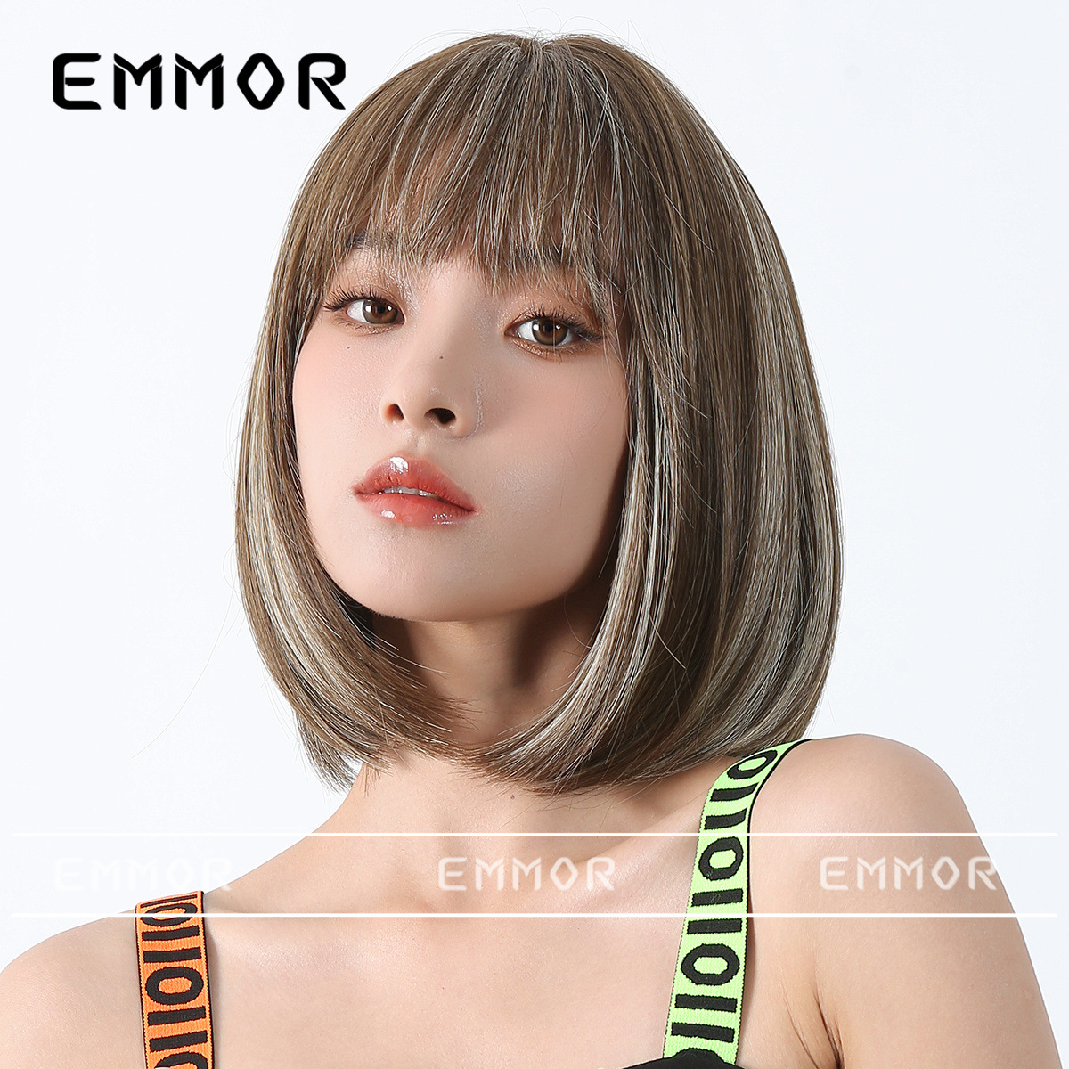 Peluca de color para mujer cabello corto verano Lolita Cabeza de onda diaria que reduce la edad Bangs recto mullido cubierta de cabeza completa natural
