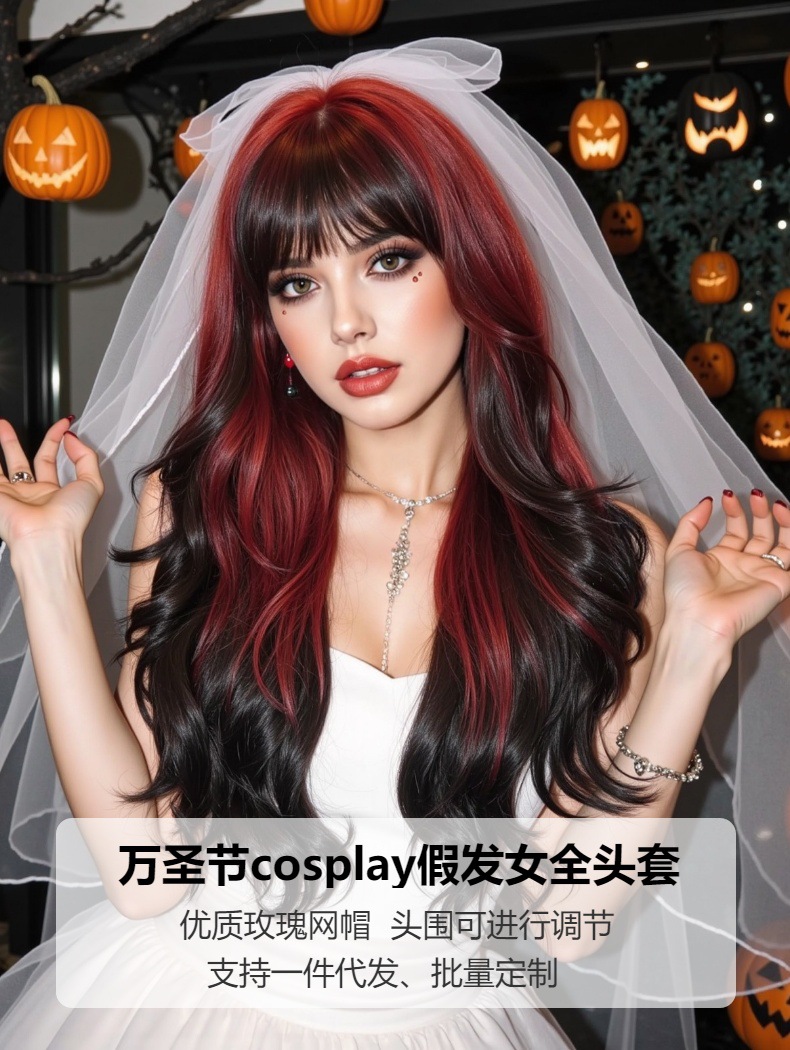 Perucas transfronterizas de comercio exterior para mujeres cubierta de cabeza de Navidad Halloween trajes de cosplay ondas gigantescas pelucas