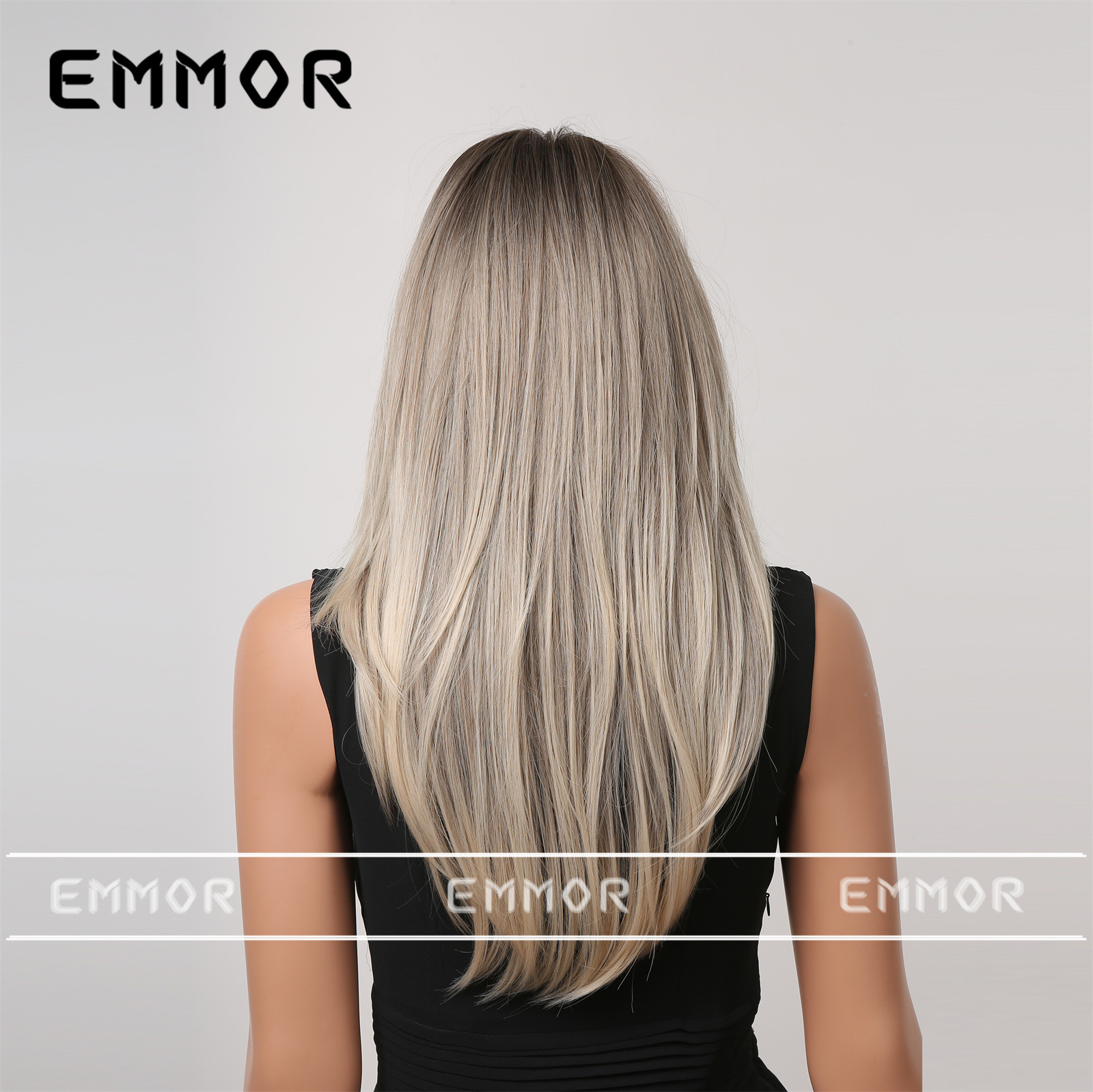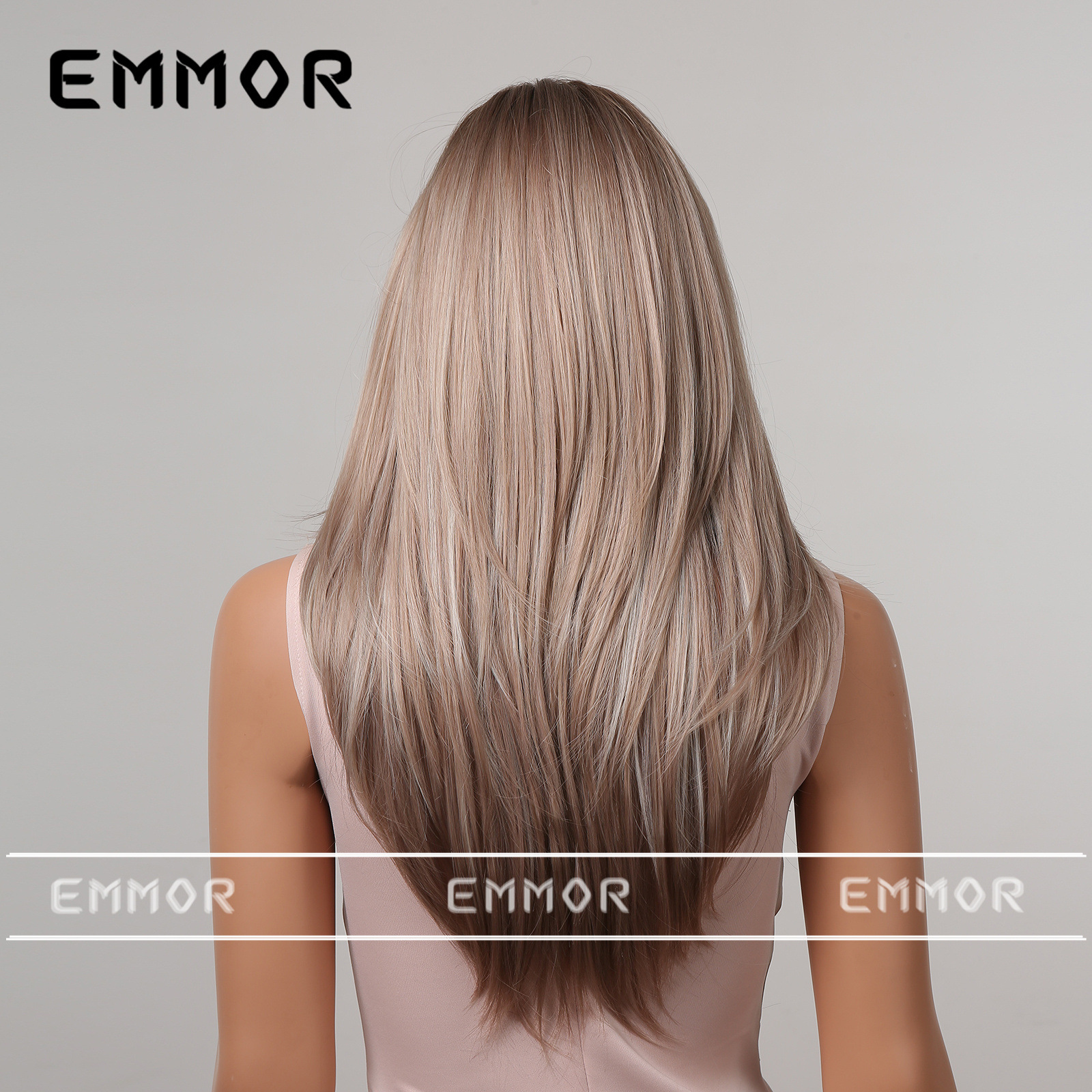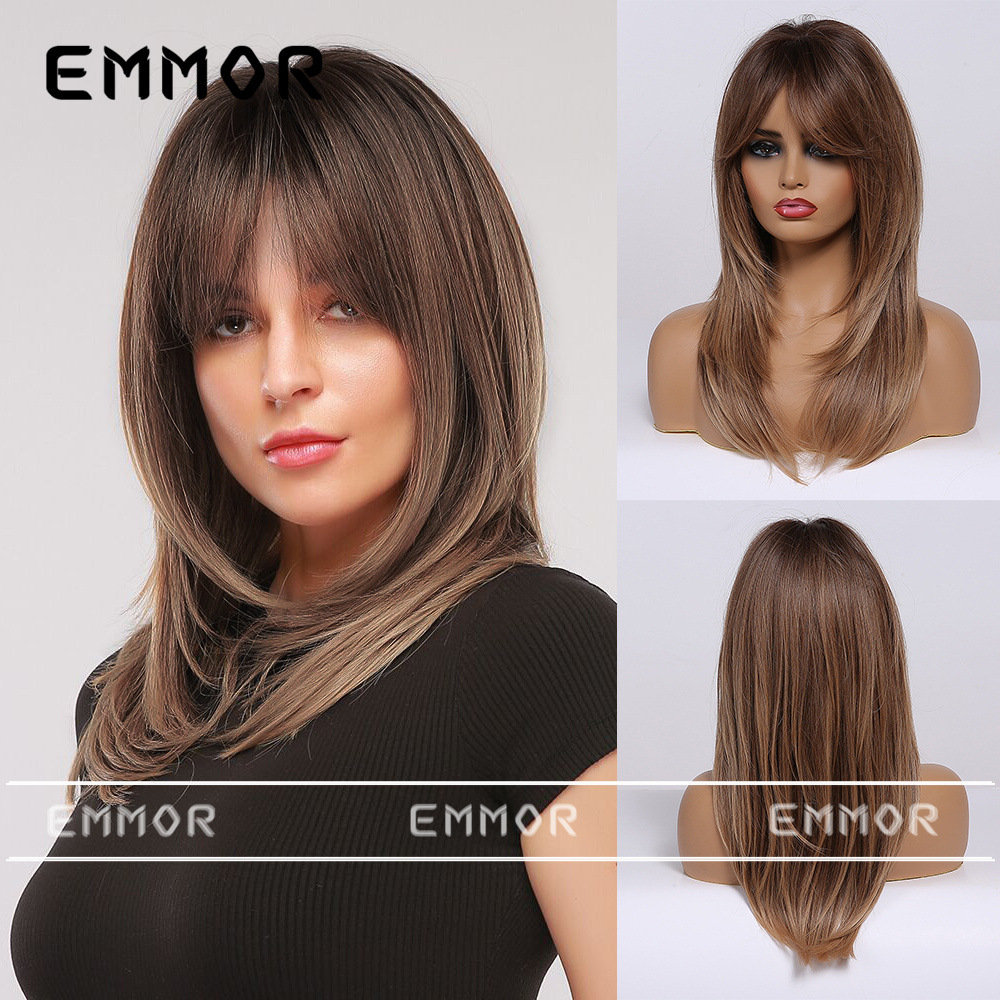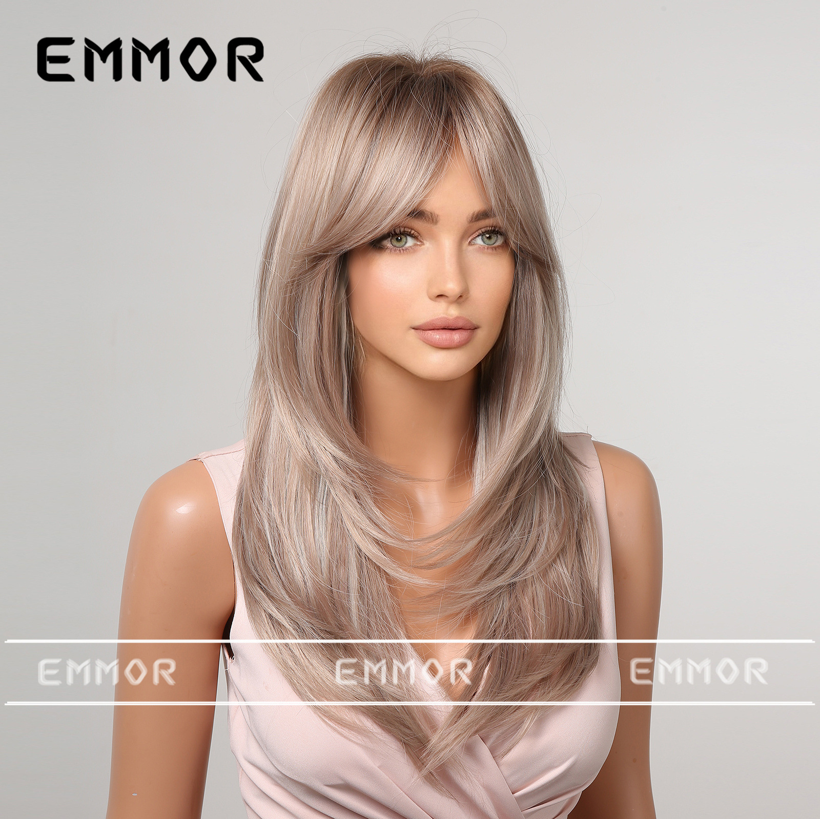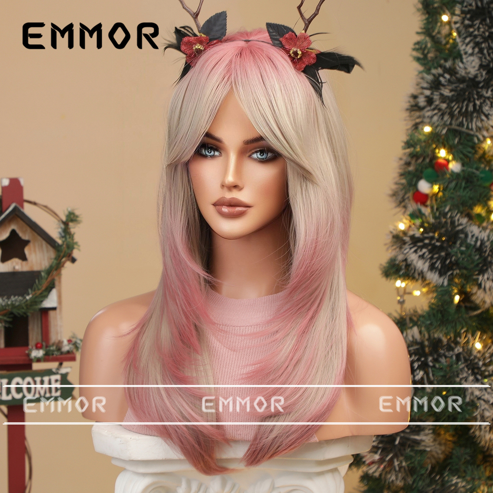 Peluca de mujer europea y americana Emmor flequillo de ocho caracteres Gradiente dorado pelo de longitud media cola peluca rizada multicolor opcional